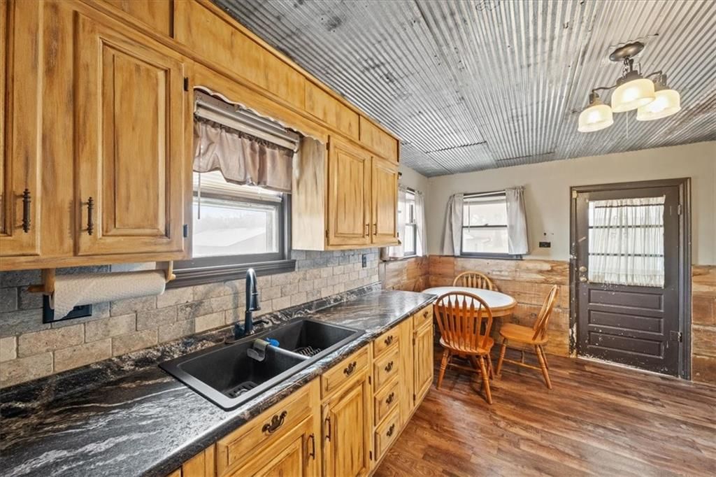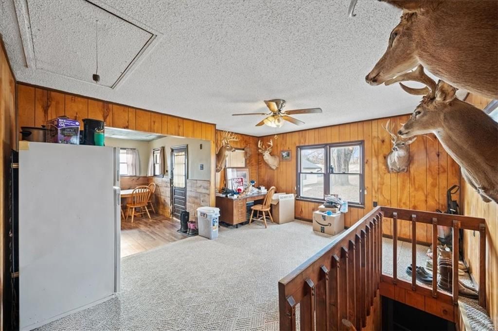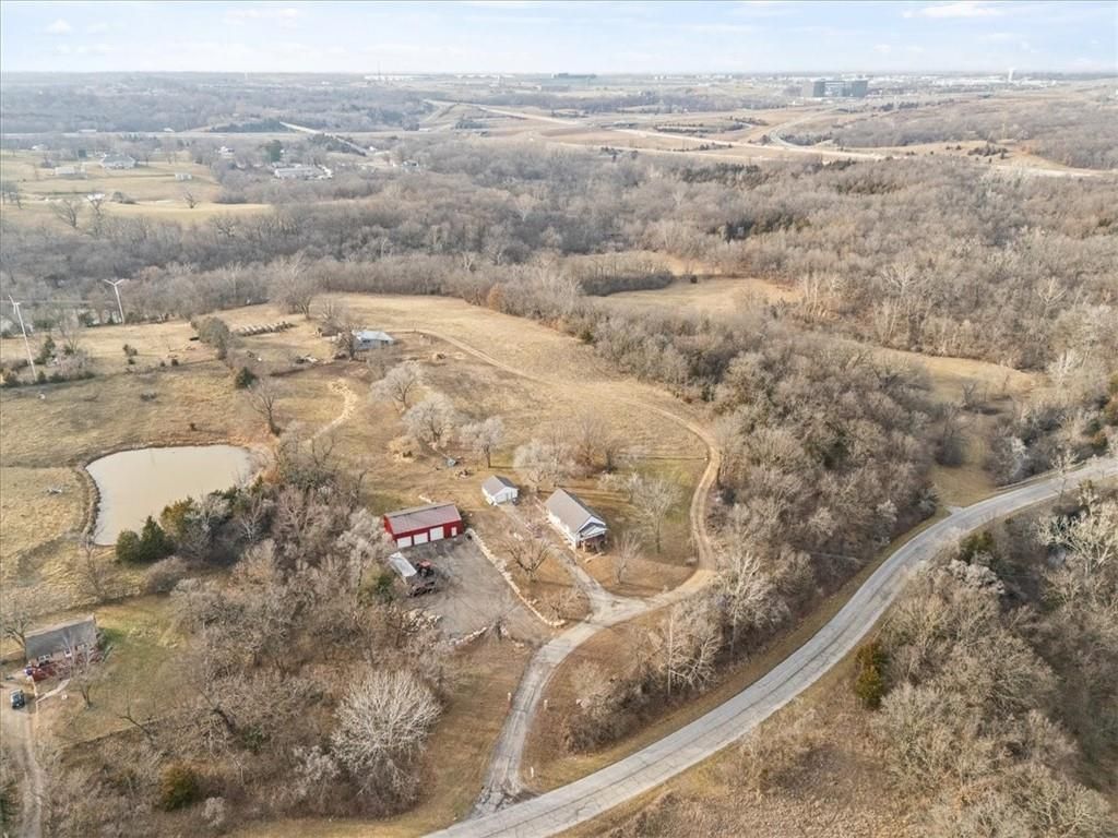 Charming Ranch Farmhouse on Nearly 20 Acres with Creek, Shop & Prime Location The nearly 20 acres offer a beautiful quiet setting with abundant of natural scenery. The land also provides excellent opportunities for turkey and deer hunting. Really nice ranch-style farmhouse offering 2 bedrooms and 1 full bath, perfectly situated on 19.87 rolling acres. The home features include newly updated cabinets and laminate flooring in the kitchen and family room, while the office room is carpeted with stairs to the basement. The land is a standout feature - Turkey Creek runs through the property, providing scenic views and natural beauty. The acreage is fully fenced and ideal for outdoor enthusiasts, with excellent opportunities for turkey and deer hunting. A large shop located next to the home offers endless possibilities for storage, a workshop, equipment, or future projects. Enjoy the best of country living with easy highway access, and The Legends shopping, dining, and entertainment area just a 5-minute drive away. Added bonus: this beautiful property's value has been positively impacted by the recent announcement of the Kansas City Chiefs' new stadium planned for Wyandotte County, expected to be just a short 1-2 minute drive from the home. Whether you're seeking a peaceful country retreat, recreational property, or a small farm setup, this property delivers space, privacy, convenience, and long-term potential.