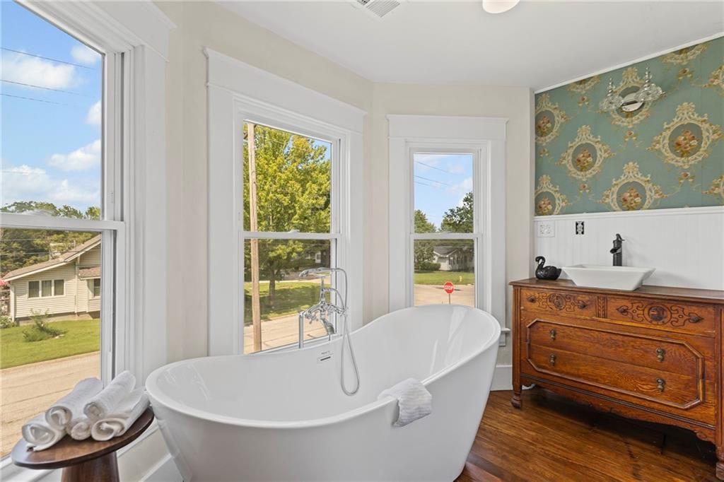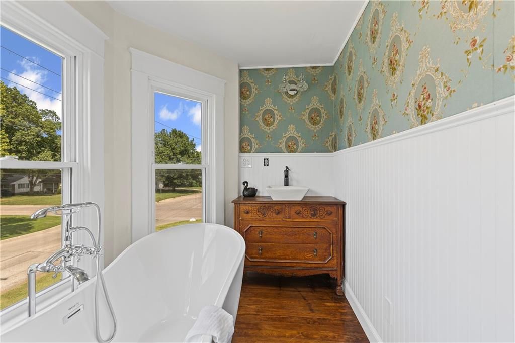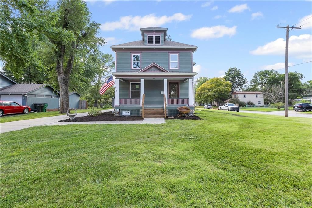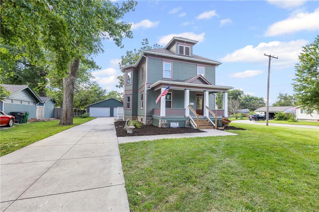 Come checkout this fully renovated 1915 American Foursquare in South Ottawa. This home features 5 bedrooms, 3.5 baths, theater and playroom in the basement, dual laundry hook-ups, original hardwood floors throughout, a four car garage on a large corner lot! With an expansive primary suite, original pocket doors, updated kitchen, and partially finished basement. Located near schools, shopping, and a short drive to I-35 for commuting. You won't want to miss this one!