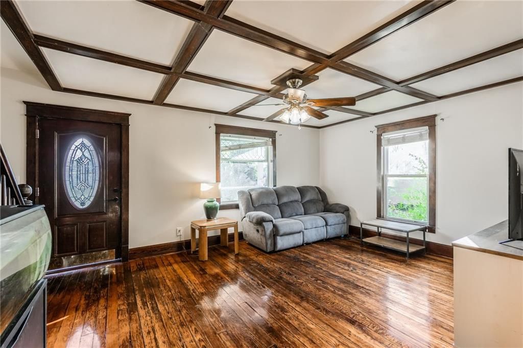 This beautifully preserved 3-bedroom, 2-bath home pairs timeless craftsmanship with thoughtful updates. Original woodwork, coffered ceilings, and gleaming hardwood floors make a lasting first impression the moment you walk through the door. The expansive kitchen is truly the heart of the home, boasting granite countertops, a gas cooktop, abundant cabinetry, and a breakfast bar that's perfect for casual dining. A charming clawfoot tub adds character to the bathroom, while built-ins and generous closets provide exceptional storage throughout. The spacious bedrooms, including a primary suite with attached sitting room, offer plenty of room to relax and unwind. Blending historic detail with modern convenience, this home is move-in ready for its next owner to love. AVAILABLE FOR USDA, FHA, VA, AND CONVENTIONAL LOAN PROGRAMS