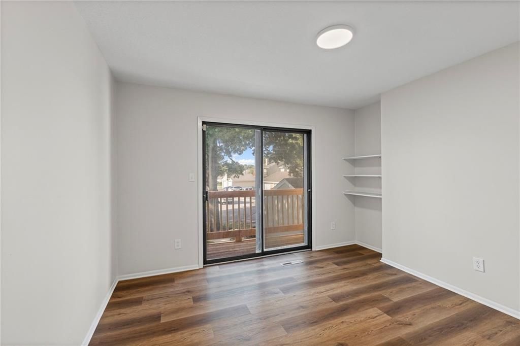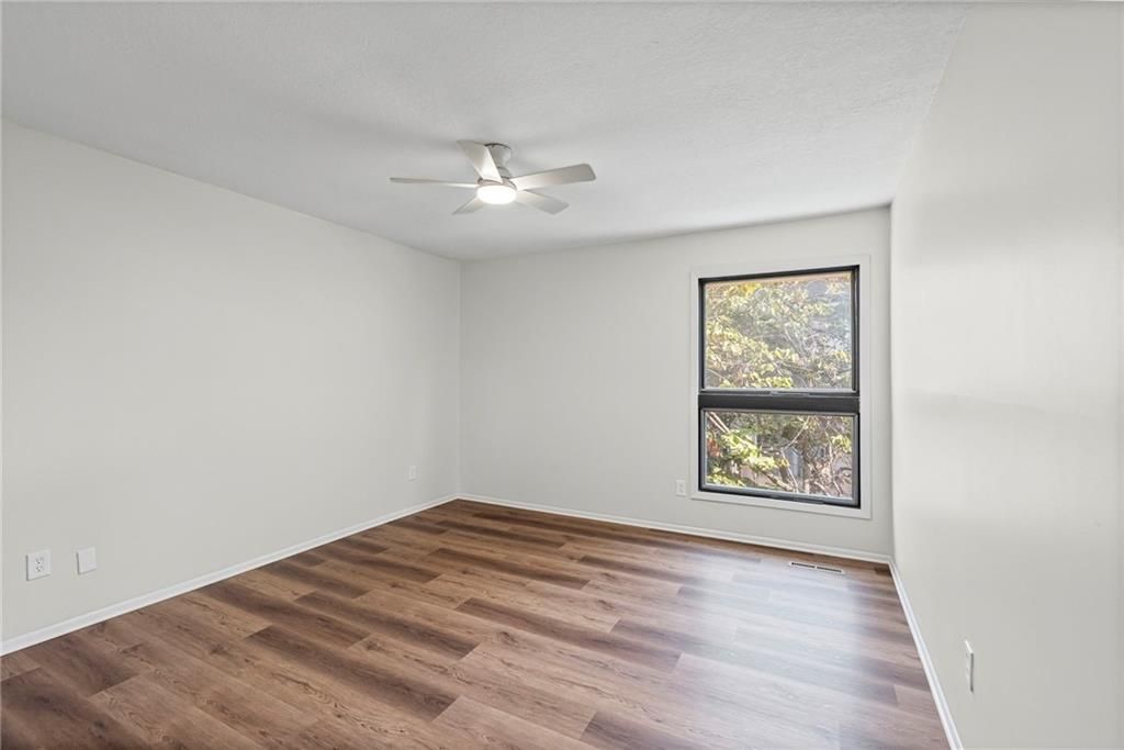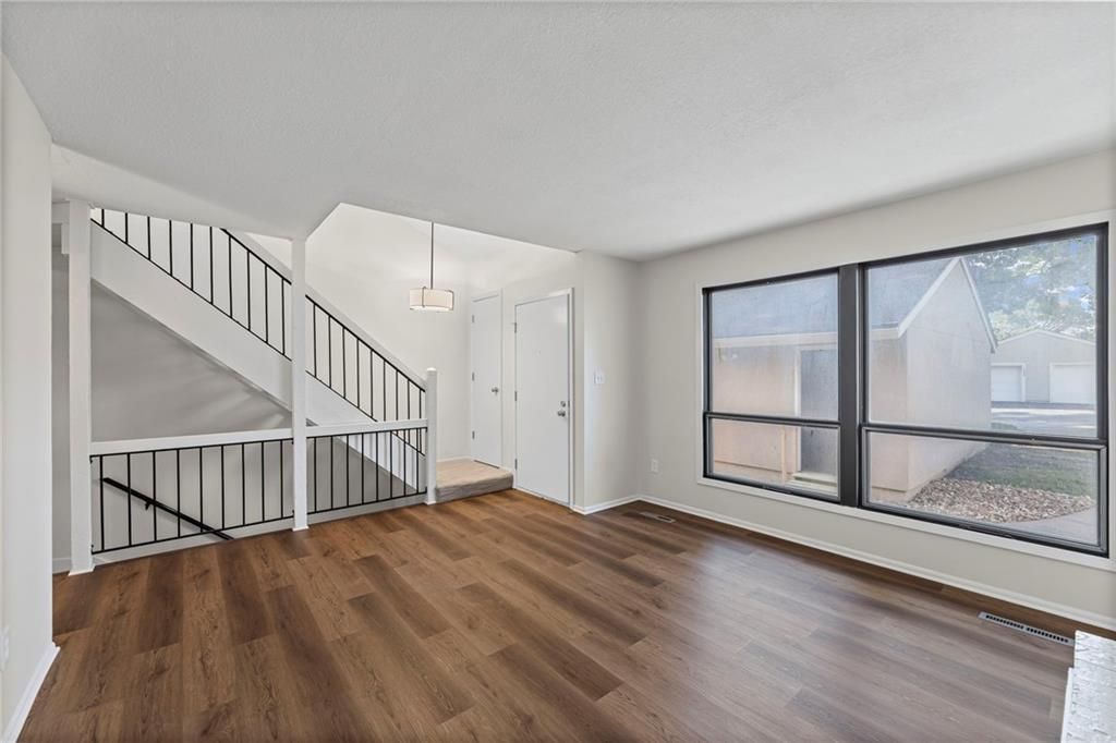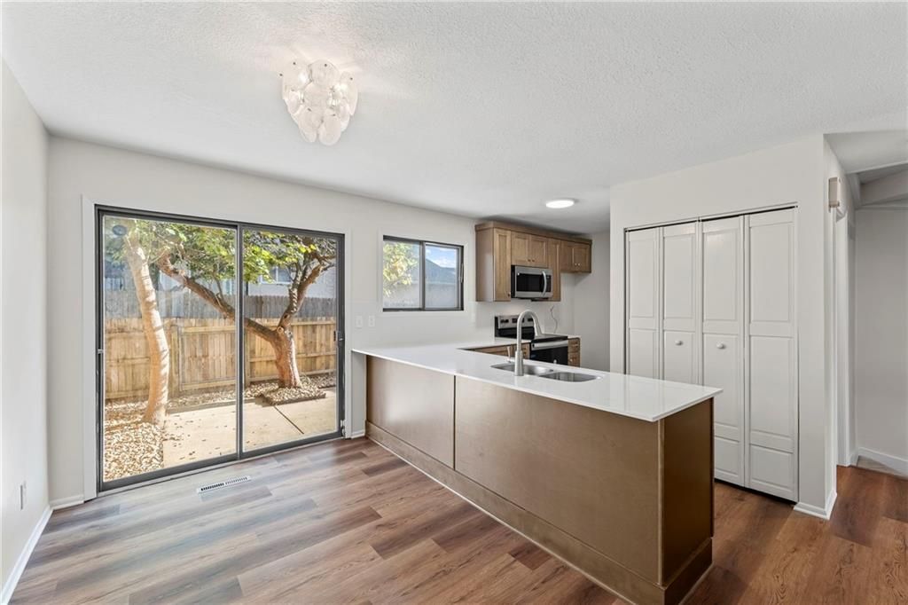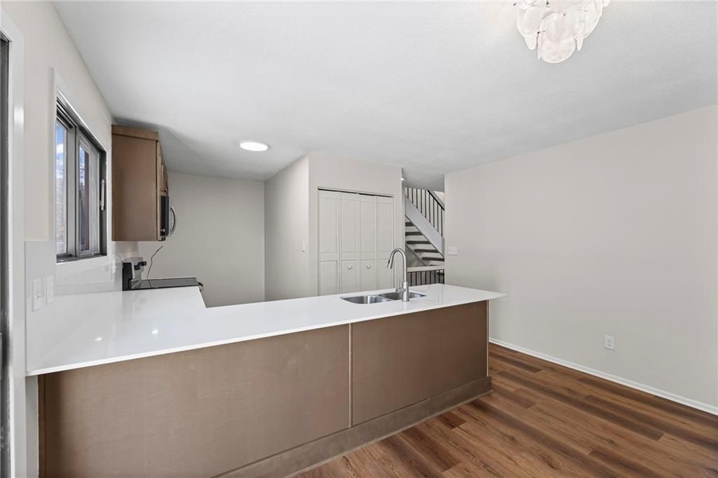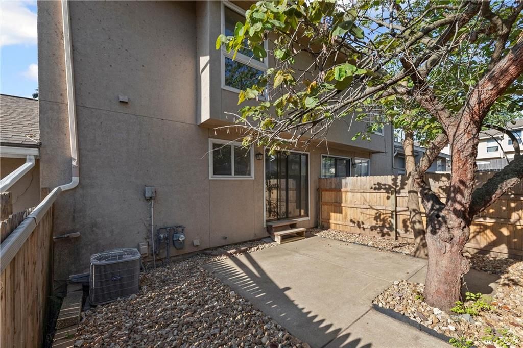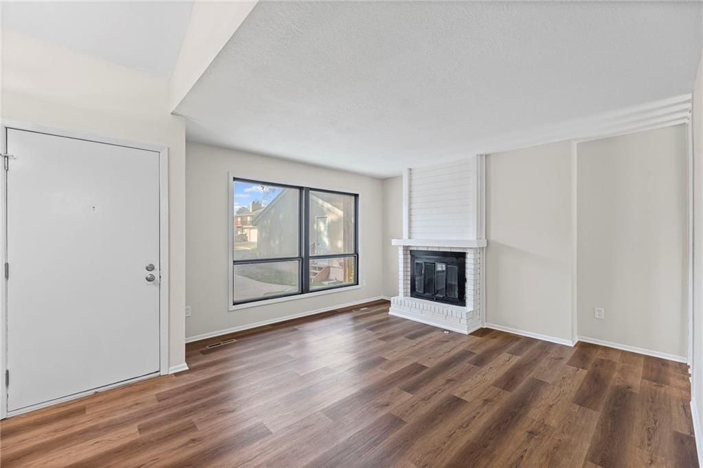 This home has been completely updated with neutral vinyl plank floors throughout, brand new kitchen cabinets with quartz countertops, new stainless steel kitchen appliances, updated bathrooms and a brand new roof! When you enter, you're greeted by an inviting living room with a fireplace and easy access to the main level half bath. Just past the living room you'll find the completely updated kitchen with new quartz countertops, brand new cabinets, a reach in pantry, and plenty of room for bar stools and a dining room or even a home office. Walk out to your private, fenced patio area. Up the stairs, you'll find two nice sized bedrooms with vinyl plank floors (one with a balcony) and a renovated bathroom. The lower level offers even more space if you need it for a recreation room and laundry access. Seller will provide 1 year home warranty of buyer's choice. Come see why Quivira Falls is one of the most sought after maintenance provided communities in Johnson County with a community pool, walking trails, tennis/pickle ball court, clubhouse and easy access to anywhere in the metro!