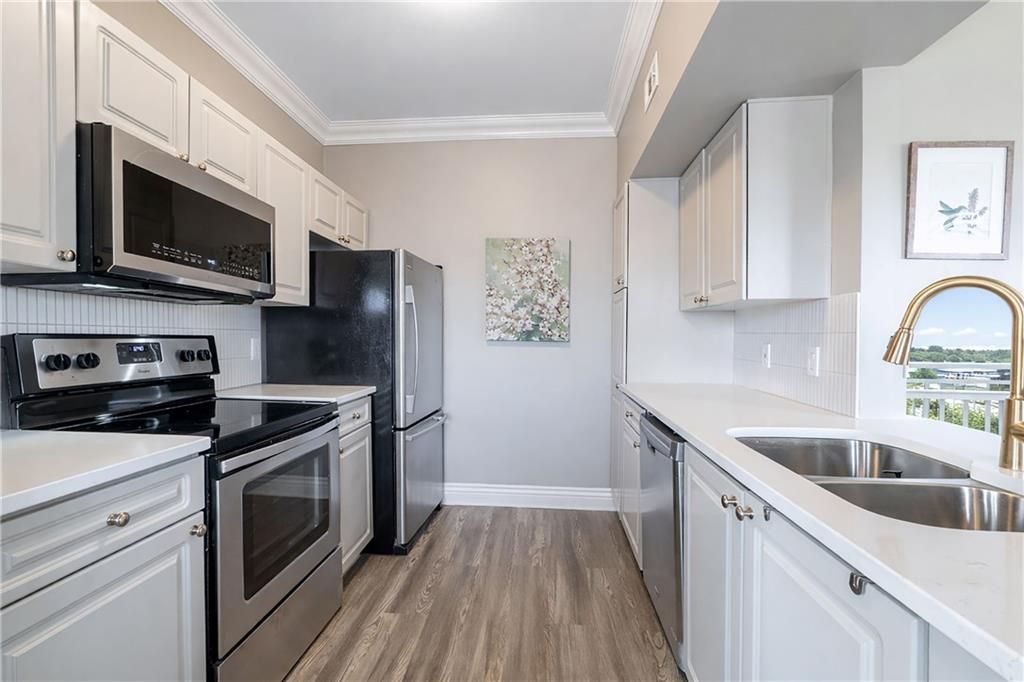 Welcome to this beautifully updated 2-bedroom, 2-bath condo in the highly desirable Tomahawk Creek community! This light-filled home features a fully renovated kitchen with stunning quartz countertops, modern finishes, and ample cabinetry -perfect for both everyday living and entertaining. Fresh paint and updated flooring throughout create a clean, contemporary feel, while large windows flood the space with natural light. The spacious primary suite offers comfort and privacy with its own en-suite bath. A second bedroom and full bath provide flexibility for guests, a home office, or additional living space. Enjoy the convenience of a 1-car garage and low-maintenance living in a prime location close to shopping, dining, parks, and trails. Move-in ready and meticulously updated - this one is a must-see!