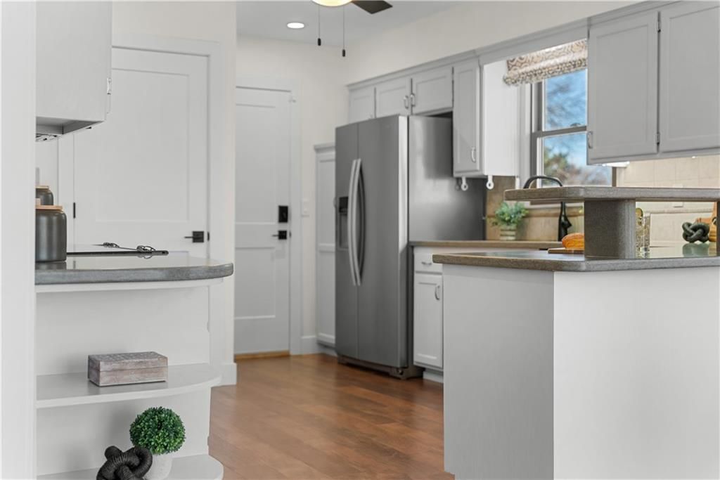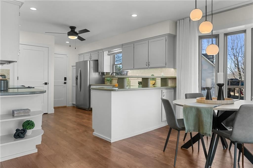 **OFFER DEADLINE, FEBRUARY 14, 2026 at 3 PM** This meticulously maintained true ranch offers thoughtful updates and a spacious setting on approximately half an acre. The property provides generous outdoor space and a sense of openness that sets it apart, all while being in close proximity to the growing downtown Shawnee area with its expanding dining, shopping, and community amenities. The main level features durable laminate flooring throughout and is filled with natural light, enhanced by sun tunnel skylights added in 2024. The living room is anchored by a cozy fireplace, creating a comfortable gathering space for everyday living. Recent interior updates, including new solid core doors and updated hardware on the main level, create a cohesive, refreshed feel. The kitchen offers ample counter space for everyday use and entertaining. The washer and dryer are conveniently located on the main level, allowing for true main-floor living if desired. The washer, dryer (1 year old), and refrigerator all remain with the home for added convenience. The finished lower level expands the living space with a full bedroom and full bathroom, ideal for guests or flexible living arrangements. Built-in cabinetry in the lower level adds functional storage and versatility, while a large unfinished storage area provides abundant space for organization or future use and walks out directly to the patio, creating easy access to the backyard. Additional highlights include HVAC replacement in 2019 and new James Hardie siding on the front fa ade in 2025, enhancing durability and curb appeal. This home has been consistently maintained, and a detailed list of updates is available upon request.