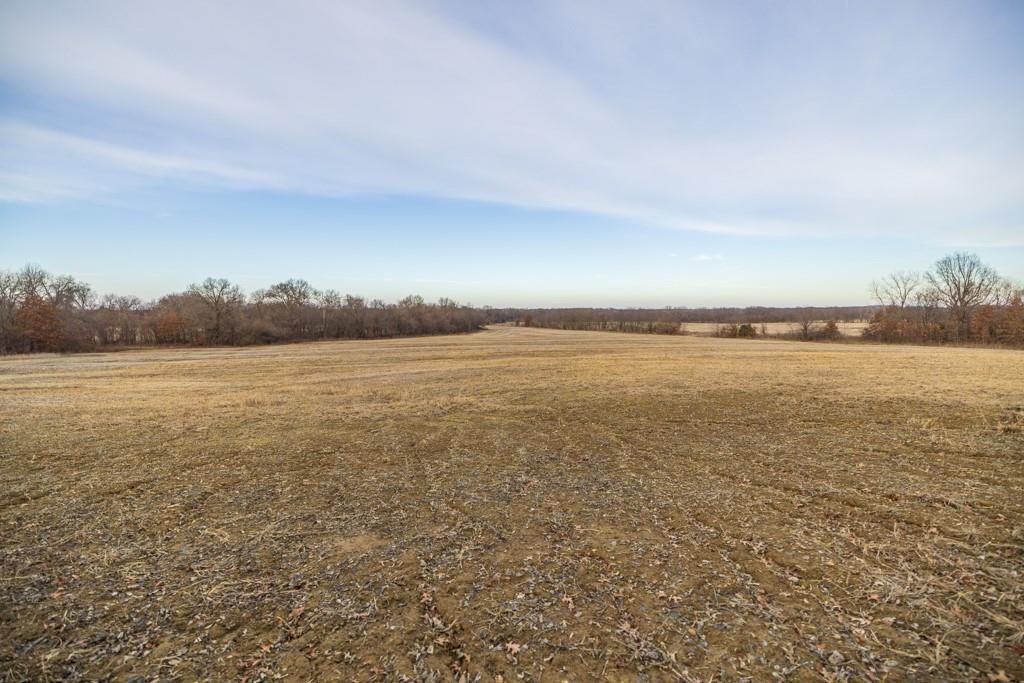 This highly productive 320 acre farm in Johnson County, Missouri offers an exceptional blend of income-producing farmland, quality pasture, strong recreational value, and a classic country homesite. Ideally located just 6 miles east of Garden City and only 1 mile east of ZZ Highway, the property provides excellent access while maintaining a private, scenic setting. Approximately 140 acres of tillable ground are currently in production, supported by silt loam and silty clay loam soils. An additional 94 acres of fully fenced pasture features two large ponds and an automatic waterer, making it well suited for cattle or diversified livestock operations. Three usable grain bins, a 36x54 outbuilding with oversized bay doors, and ample equipment storage enhance the farm's agricultural ability. The recreational appeal is equally impressive. Panther Creek winds through the north end of the farm, creating outstanding wildlife habitat. The timbered areas include marketable walnut and oak, dense cover, and abundant deer sign with well-worn trails, rubs, and scrapes - ideal for hunting and outdoor enjoyment. Overlooking the surrounding countryside is a well-positioned two-story farmhouse. The home includes three bedrooms and a loft upstairs, with a comfortable main level featuring living and dining areas, kitchen, sunroom, mudroom, one bedroom, and a full bathroom. Additional improvements include a detached two-car garage with concrete floor, utilities consisting of rural water, electric, and a drilled well, and a picturesque tree-lined driveway off SW 1225th Road.