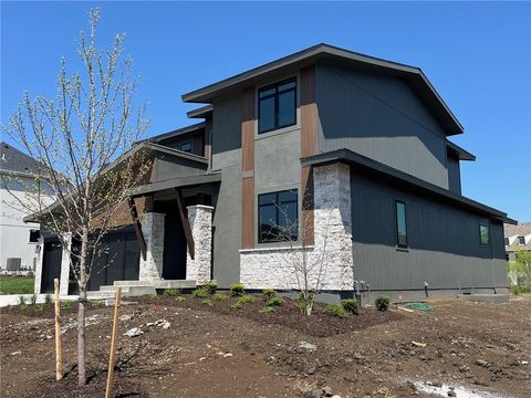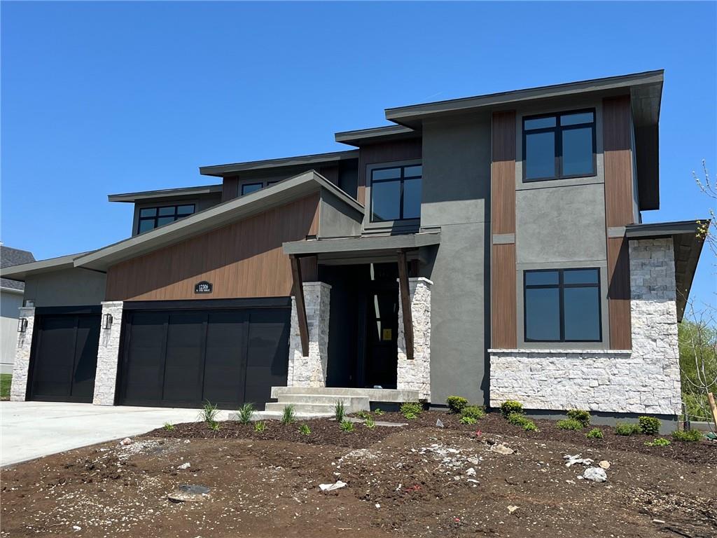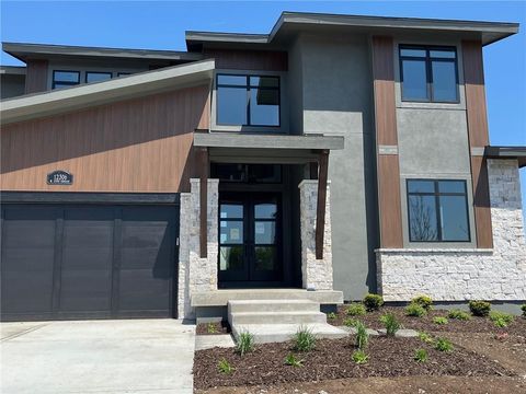 The Roosevelt EX by BICKIMER HOMES backing to a green space and walking trail. Ready in 30 days! Located on Lot 142, this new 1.5 Story story is an expanded version of the popular Roosevelt with an added upstairs bedroom and reconfigured main level laundry and closet. The best part is the brand new modern mountain exterior as featured in Colorado with sleek angles and real stone trim. Interior features includes a curved open staircase, unique back pantry/mudroom hallway with door to the back yard just as you enter from the garage, main level second bedroom or office, spacious kitchen with large island, grand two story great room with amazing windows, atrium style dinning room with large windows, main level primary bedroom, upstairs loft and 3 more bedrooms. Finished basement is not included in the price but is optional and can be added. You pick the layout! Beautiful level lot with semi private view of native grasses and neighborhood trail. Covered patio to enjoy your back yard BBQ's and events with ease from the main level. *This home is under construction and photos are from a model home* Century Farms has a new club house with fitness center and reading loft, pool with slide and fire-pit, pickle-ball courts, kids play area and community garden. Come join the fun in Century Farms, a unique one of a kind upscale community in Overland Park. Located close to Heritage park, and 159th Street brand new shopping area and easy access to Highway 69 with new 167th street onramp. BLUE VALLEY SCHOOLS.