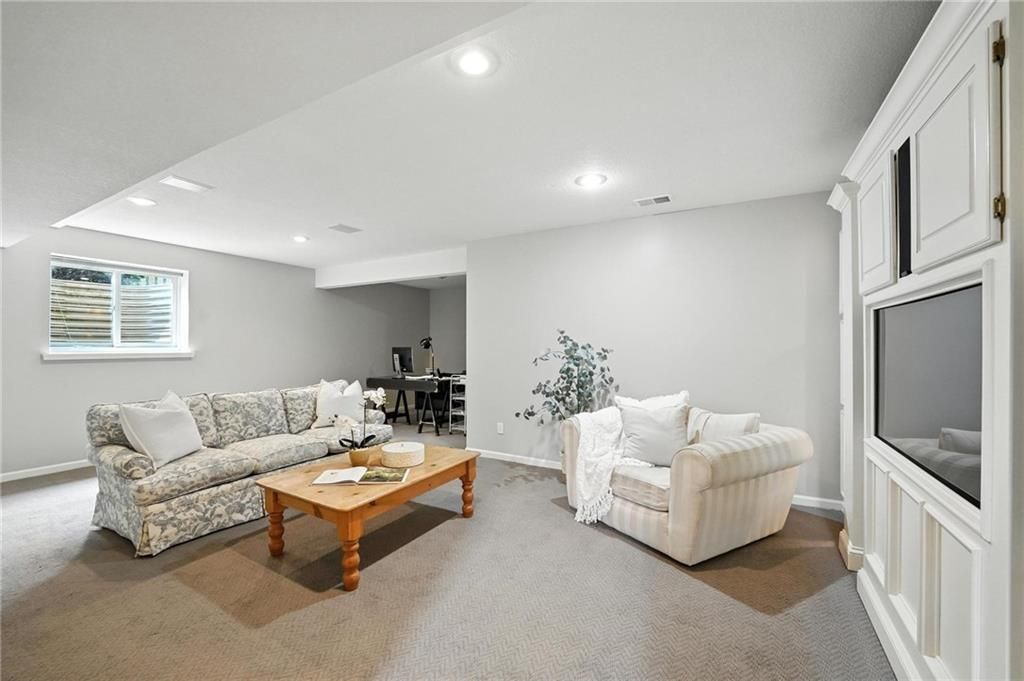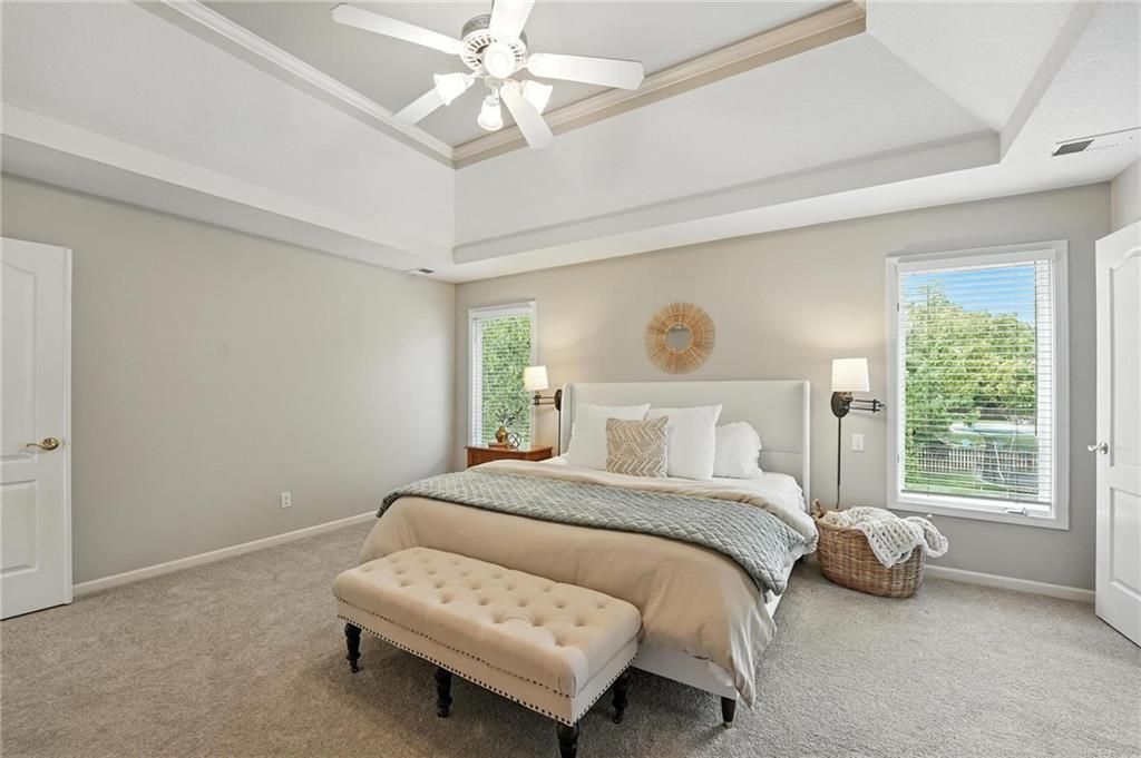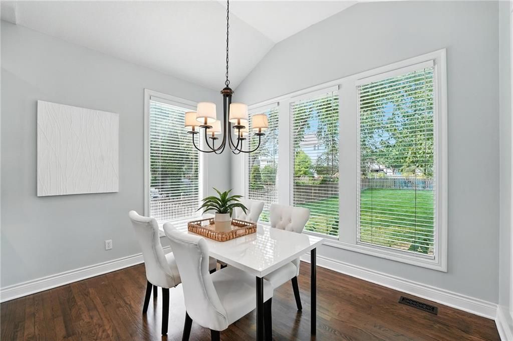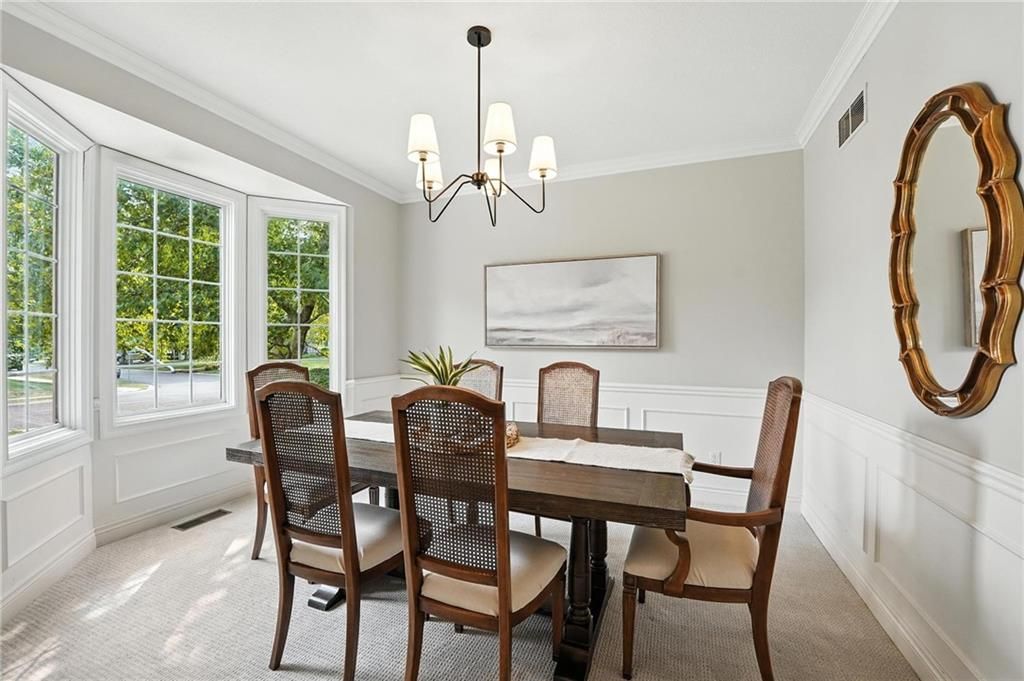 Are you ready to fall in love... just in time for Valentines Day? Welcome to this beautifully refreshed two-story home tucked inside the highly desirable Nottingham by the Green community. Step into a light-filled entry that highlights newly refinished hardwood floors, fresh carpet, and an easy, open layout designed for both comfortable living and effortless entertaining. The main floor features a formal dining room, a chef's kitchen with an eat-in area, a cozy hearth room, and a generous family room perfect for gathering. Just off the kitchen, the generous paver patio invites outdoor dining, summer grilling, and relaxed evenings with friends. Upstairs, the spacious primary suite offers a true retreat, accompanied by three additional bedrooms and two full baths. The finished lower level expands your living space with a rec room, built-in entertainment center, and abundant storage. Enjoy an unbeatable neighborhood lifestyle with resort-style amenities including a pool with water slide and diving board, tennis and pickle ball courts, and a picturesque golf course setting - plus convenient access to shopping, dining, and top-rated Olathe schools. Be prepared to fall head over heels for this beautiful home!