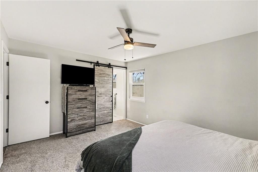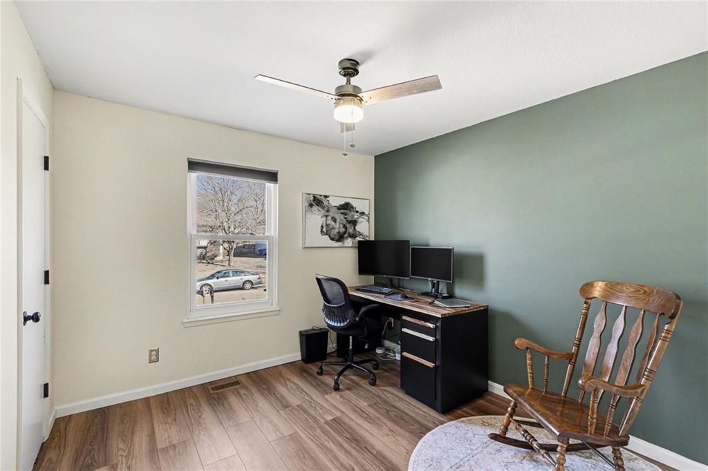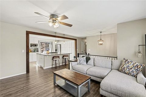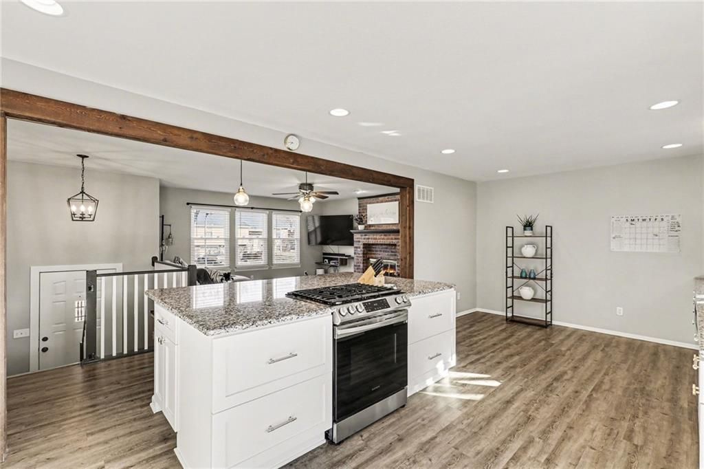 Updated move in ready home with So much to love about this Open Airy floor plan. Kitchen with HUGE quartz island has bright white cabinets galore including a full wall pantry! Newer stainless appliances too! 3 bedrooms, 3 full baths, and nearly 1800 sq ft of beautifully maintained living space - plus a newly renovated rec room and full bath in finished lower level. New carpet and vinyl plank flooring throughout. The soaring ceilings in the family room highlight the fireplace and nicely done kitchen and dining area which offers easy access to the deck. Large primary suite with updated onsuite bath. Two secondary bedrooms one with new carpet and the other with vinyl plank have easy access to updated center hall second full bath. NEW HVAC & water heater.Enjoy outdoor living on the deck and patio overlooking the fenced yard. You won't want to miss this wonderful home in Lenexa! Conveniently located to shopping, restaurants and schools. Treat Yourself!