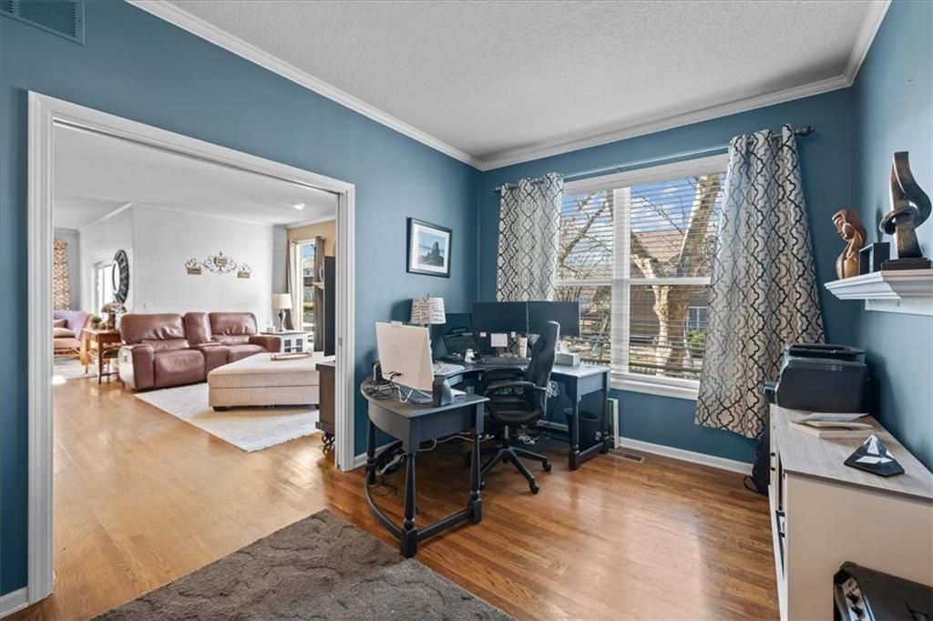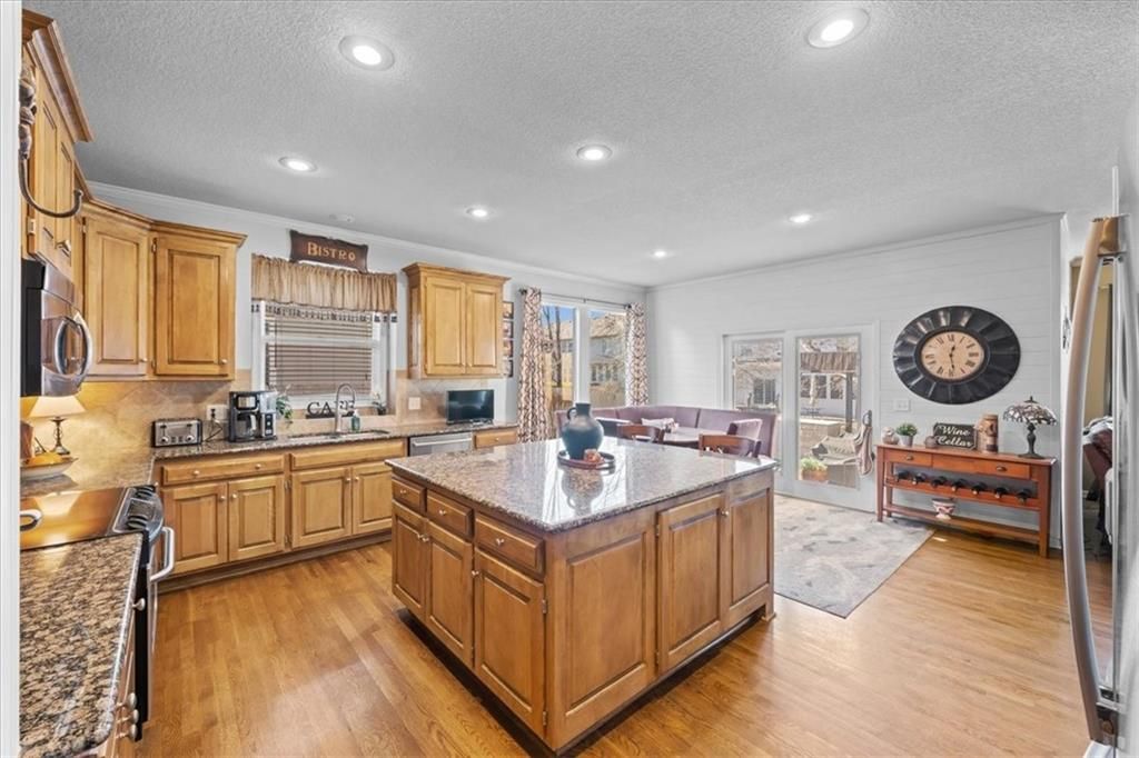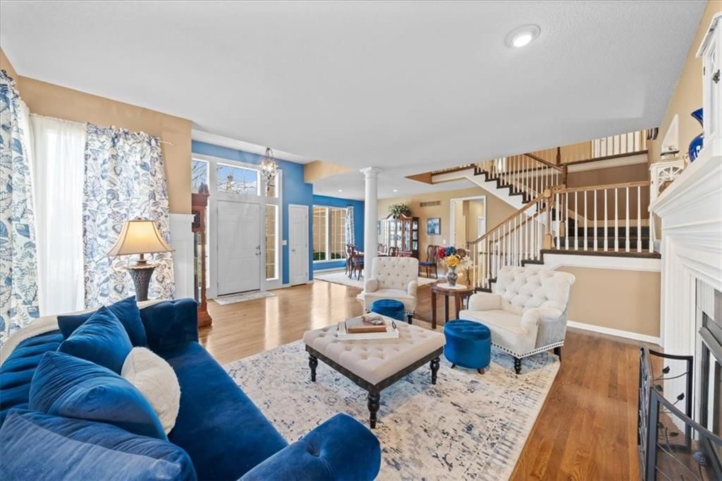 Welcome to Linden! This Dan Smith Spring Tour award-winning home is priced to move and perfectly located in the sought-after Hampton Place neighborhood. Just around the corner from Sunrise Point Elementary, you'll enjoy easy access to a playground with soccer and baseball fields, a basketball court, and walking trails. Ironhorse Golf Course is less than five minutes away, and the new shops and dining at Bluhawk make this an ideal location. Hampton Place residents also enjoy a large neighborhood pool with lifeguards during the summer months. Inside, the expansive living space seems endless, featuring a formal living room, dining room, family room, walk-in pantry, and an eat-in kitchen. Step outside to the 20x20 patio with pergola - perfect for entertaining or relaxing evenings outdoors. This home offers 4 bedrooms and 4.5 bathrooms, along with recently updated HVAC including an energy-efficient furnace and AC. Three gas fireplaces add warmth and charm throughout. A dedicated office with pocket French doors, built-in bookshelves, and its own fireplace creates the perfect work-from-home retreat. The chef's kitchen impresses with a 5x6 granite center island, double ovens, and a warming drawer. The primary suite is a true retreat, complete with a fireplace, built-in TV nooks, sitting area, spa tub, double vanities, and a spacious walk-in closet. Bedroom two includes a private ensuite, while bedrooms three and four share a Jack-and-Jill bath with a shower/tub combination. The finished walk-up basement is filled with natural light and offers a full bath, workout room, family room, bar, and gaming area - plus ample storage space. Don't miss this incredible opportunity to own a stunning home in an unbeatable location!