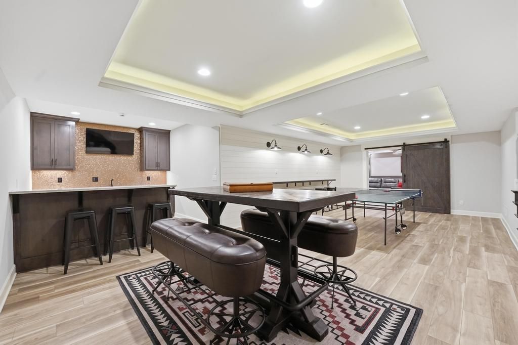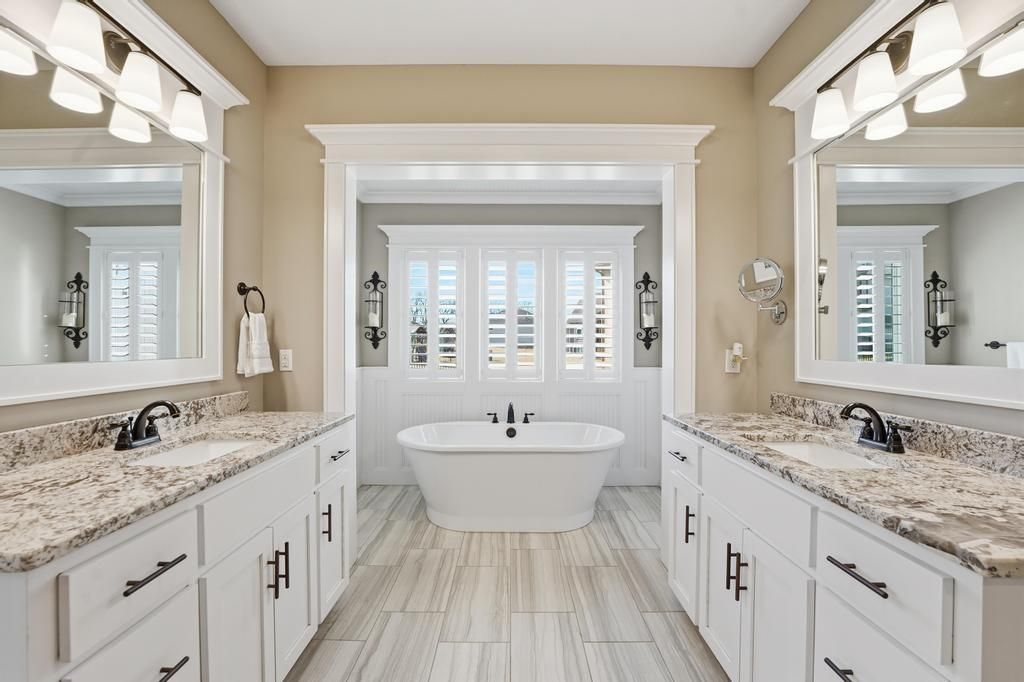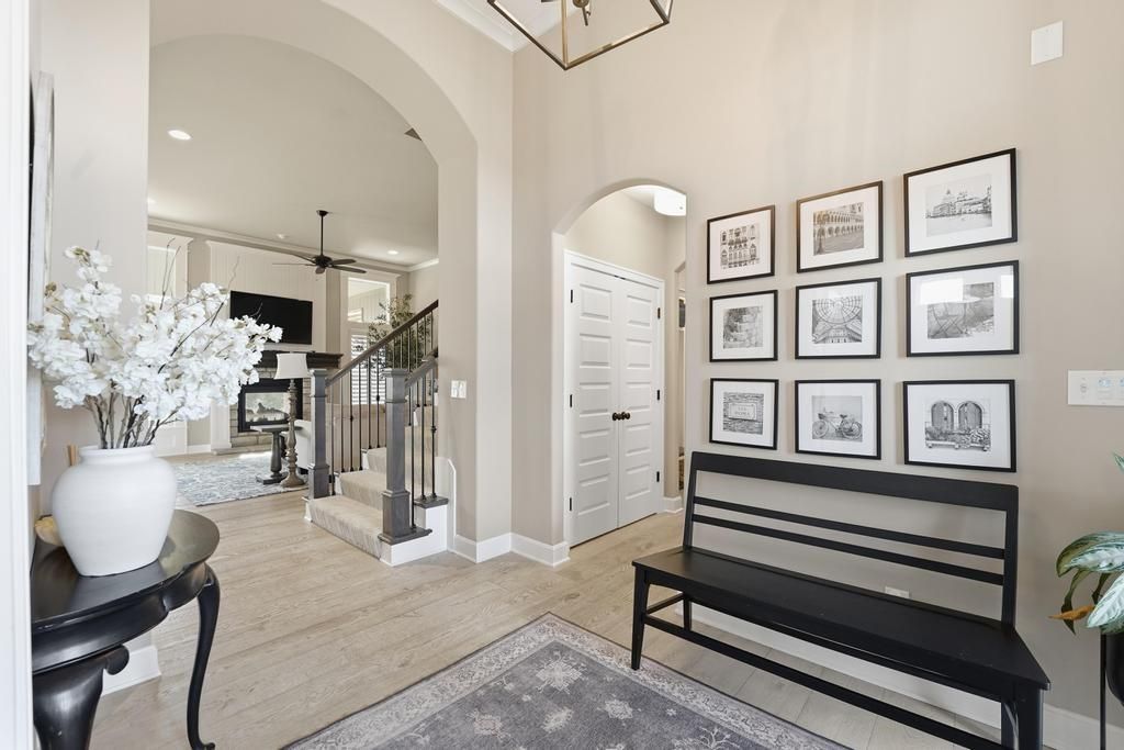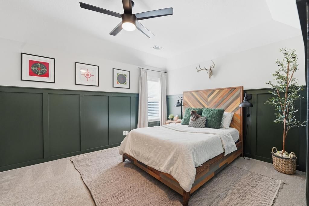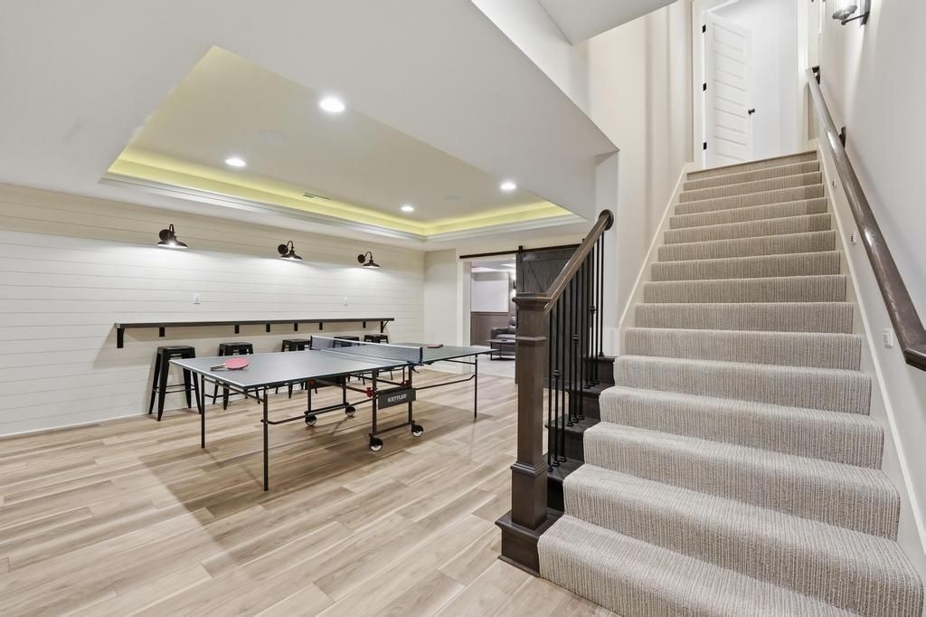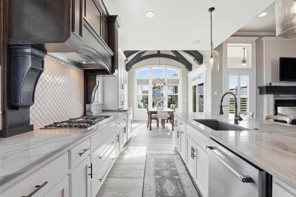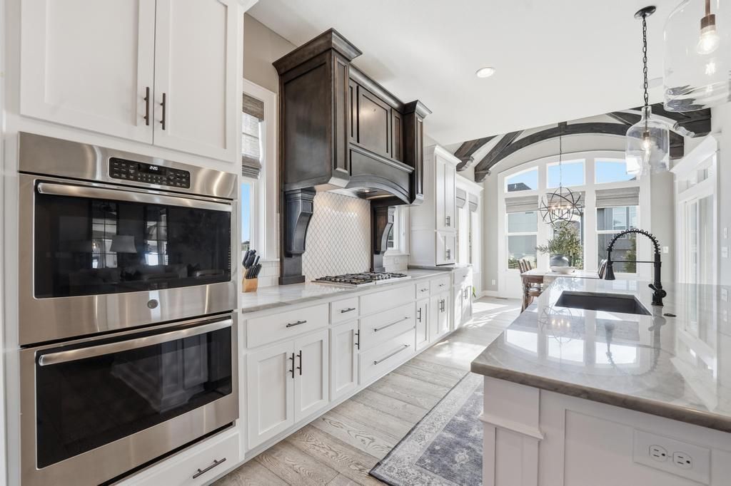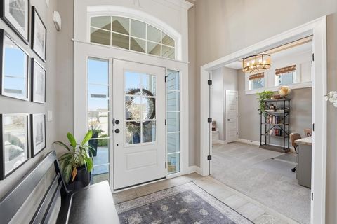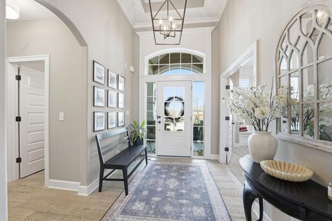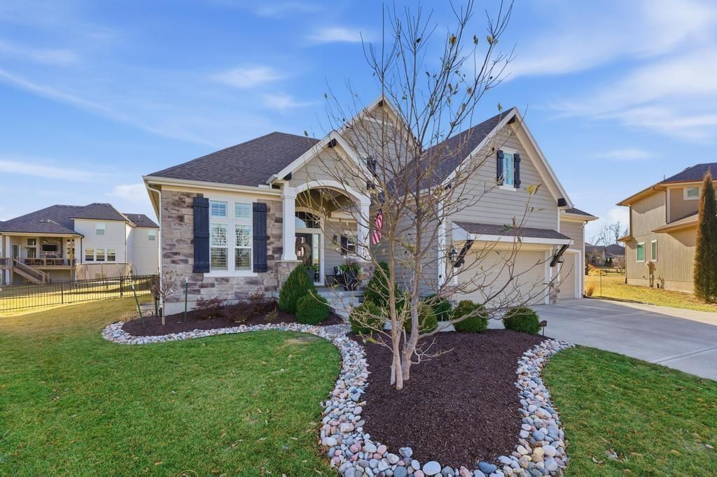 STUNNING 1.5 STORY IN STONEBRIDGE PARK!! TIGHTLY TUCKED IN THE BACK OF A PRIVATE CUL-DE-SAC! Timeless beauty meets everyday functionality in this exceptional home featuring two bedrooms on the main level. Inviting Great Room flows seamlessly into the Kitchen and Dining areas - perfect for both daily living and entertaining. Chef's kitchen impresses with a large center eat-in island, quartzite countertops, stainless steel appliances including a gas cooktop and double built-in ovens, plus a spacious walk-in butler's pantry. Step outside to the covered patio from the dining area or the Primary Suite - ideal for outdoor dining and relaxing evenings. Luxurious Primary Suite offers a true retreat with a spa-like en-suite showcasing a soaking tub, dual-headed walk-in shower, separate vanities and generous walk-in closet. An adjacent laundry room for added convenience. A second main-level bedroom, half bath and drop zone off the garage complete the main floor. Upstairs, find three spacious bedrooms--each with a private bath and walk-in closet! Finished basement is an entertainer's dream with a large game or family room featuring a wet bar with waterfall quartzite, media room and fourth full bath. A bonus room - easily a sixth bedroom - includes three built-in bunk beds. Plenty of unfinished space provides ample storage. Outdoors enjoy a game on the half basketball court in the fenced backyard! Fantastic location close to Heritage Park, dining, shopping and major highway access. WELCOME HOME!