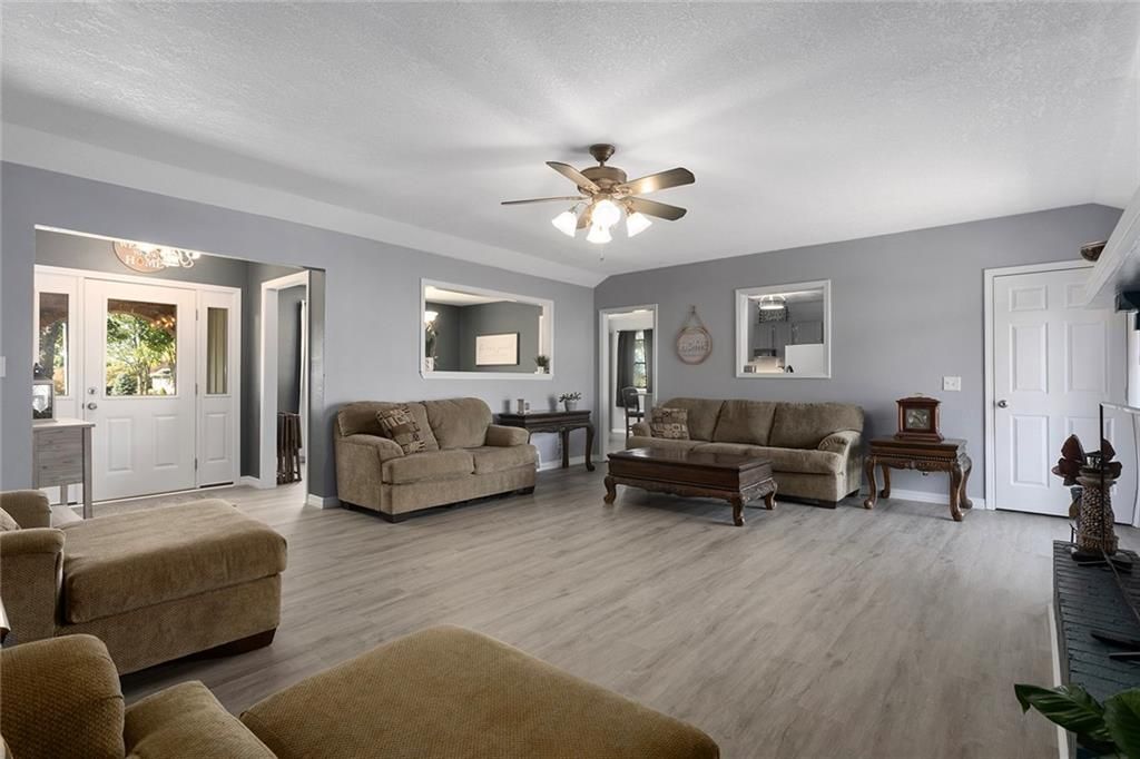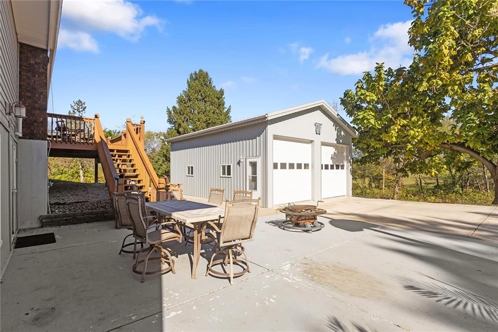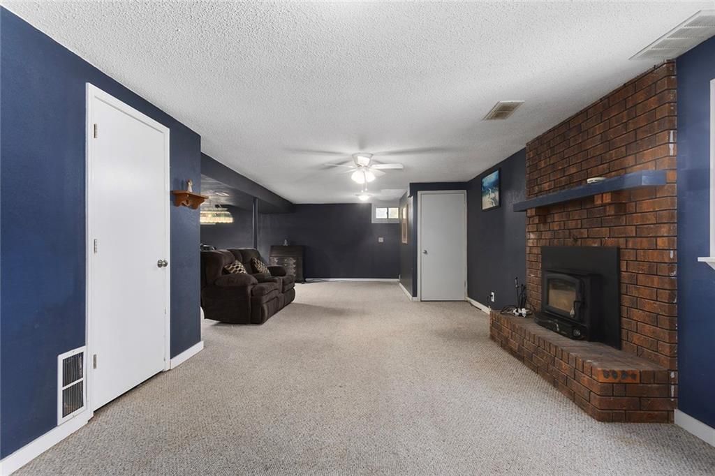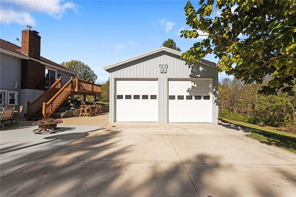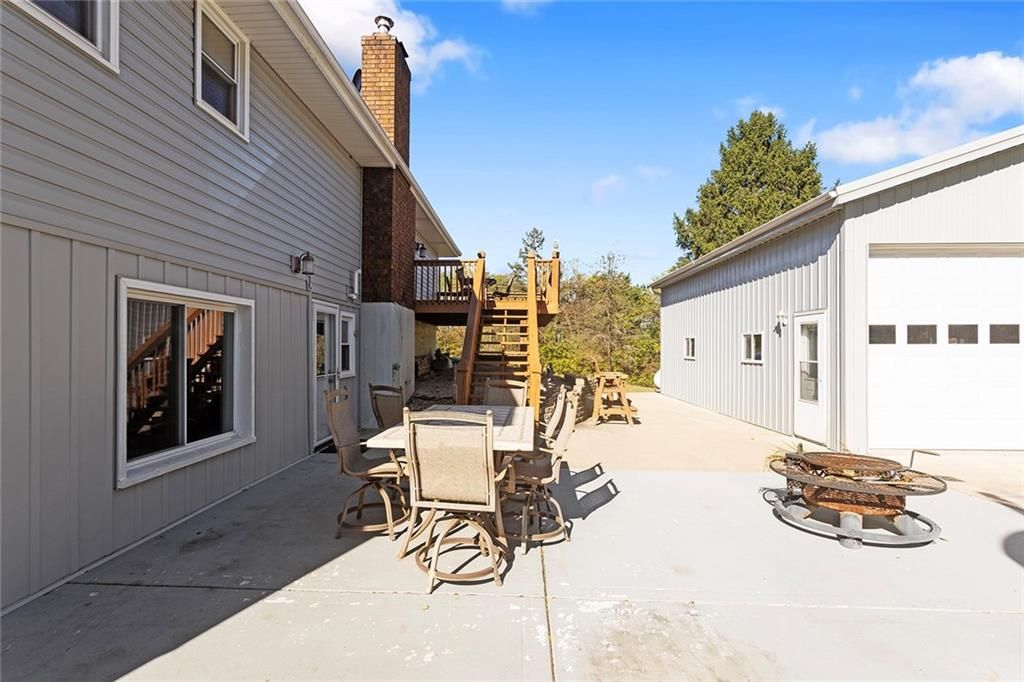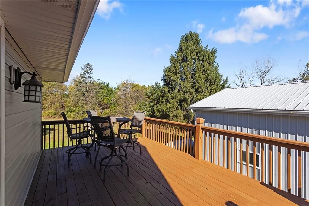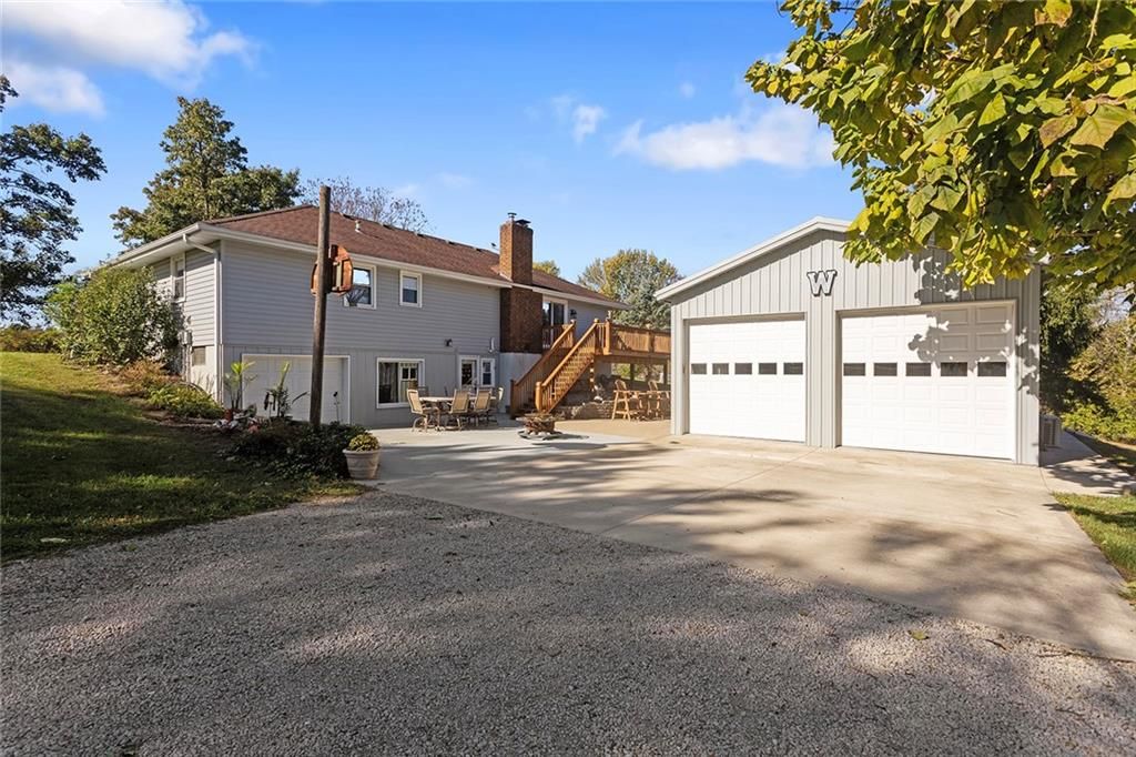 Situated on just over two acres, this 3 bedroom, 3 bathroom ranch style home is sure to wow you. Walk through the front door to a large living room with wood burning fireplace, vinyl plank flooring and access to the large deck. The formal dining room is right off the living room and looks into the living room. The kitchen features ample cabinet space, granite countertops, eat-in area and laundry, all appliances stay! The three bedrooms are on the main level with the primary bedroom featuring an en-suite bathroom. Downstairs you will find a large finished walkout basement. Features of the basement include a full bathroom, partially finished second kitchen, wood-burning fireplace within the extra large living space, single car garage and storage room. Property features a 30x24 metal outbuilding with 12-foot garage doors, mini split for comfort during harsh weather months and tons of electrical outlets. Large concrete patio area from the walkout basement perfect for entertaining or relaxing with the sounds of nature in the background.