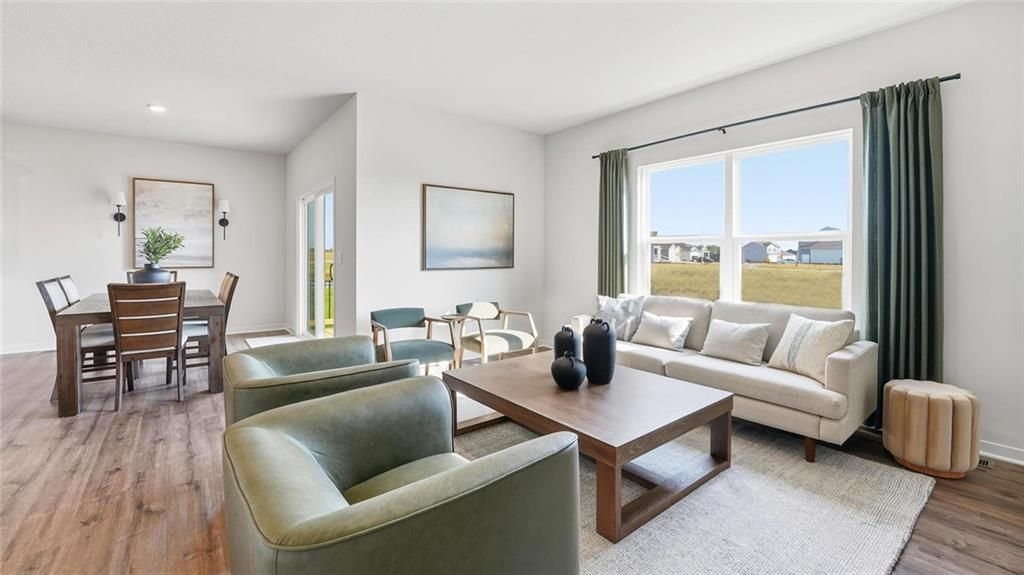Welcome to Prairie Trace, where modern design meets timeless elegance in this exceptional home crafted by D.R. Horton, America's Builder. This home stands out with James Hardie siding and stone and shake shingle accents, providing both durability and timeless curb appeal. You'll be greeted with a three-rail, two-panel insulated front door that enhances both curb appeal and energy efficiency. Step inside to find a beautifully appointed interior with 9-foot ceilings that exude sophistication. The chef's kitchen is the heart of the home, featuring 36-inch painted maple cabinets, quartz countertops, and state-of-the-art Whirlpool stainless steel appliances. Bathrooms feature quartz-topped vanities and Moen chrome faucets. The primary bath offers a 5-foot shower with a framed glass enclosure. This home is designed for the future with advanced Smart Home technology, including a Honeywell Pro Z-Wave Thermostat, Amazon Echo, and a connected home panel, allowing you to control and monitor your home from anywhere. Energy efficiency is prioritized with LED lighting throughout, a high-efficiency gas furnace, and insulated low E vinyl windows, ensuring comfort and savings year-round. Additional features such as luxury vinyl plank flooring, a spacious garage with opener(s), and detailed wiring solutions like dual data/TV lines in the main bedroom and family room, enhance both convenience and style. D.R. Horton's commitment to quality is evident in every aspect of this home, offering you a place where luxury, technology, and comfort come together seamlessly. Don't miss your chance to own this extraordinary home in Prairie Trace. Schedule your private tour today and experience the D.R. Horton difference!