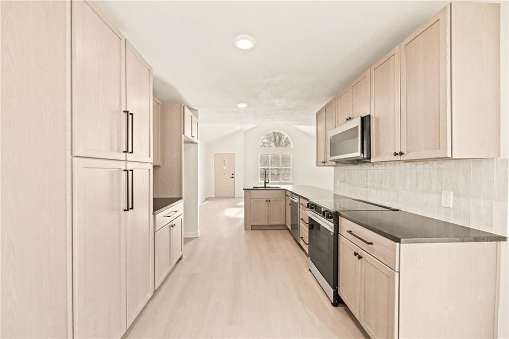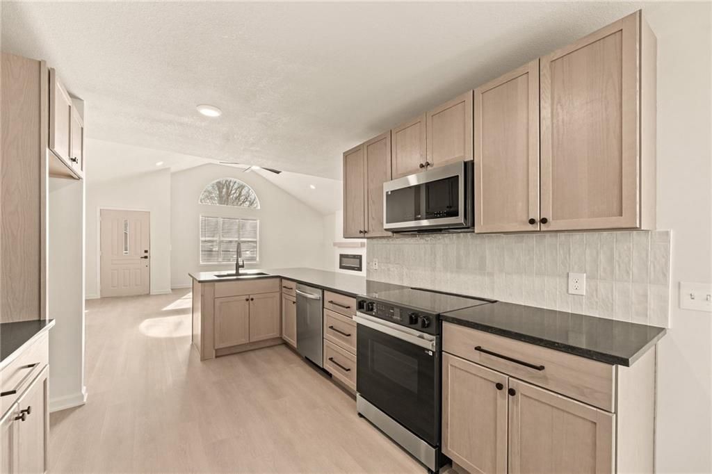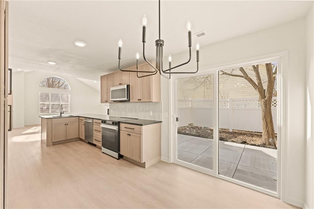 COMPLETELY REMODELED RANCH IN LAWRENCE! This stunning, move-in-ready home shines with ALL NEW big-ticket updates including Roof, HVAC, Water Heater, Vinyl Privacy Fence and Fresh Interior and Exterior Paint - plus so much MORE! Enjoy effortless one-level living in this beautifully updated 3-bedroom, 2-bath ranch filled with modern finishes and thoughtful design. The open-concept floor plan is perfect for today's lifestyle, featuring a light and airy vaulted Great Room that flows seamlessly into the adjacent dining area. Brand-new kitchen is a dream for any chef, showcasing granite countertops, stainless steel appliances, pantry and an eat-in peninsula ideal for casual dining or entertaining. Charming breakfast nook opens directly to the private back patio - perfect for morning coffee, outdoor grilling or unwinding at the end of the day. Retreat to the spacious primary suite offering dual closets and a private en-suite bath complete with double vanity, soaking tub and separate shower. Two additional bedrooms share a full hall bath with tub/shower combo. Convenient features include a laundry closet and drop-down attic ladder for extra storage. Ideally located near Prairie Park Elementary, Prairie Park Nature Trail and Mary's Lake, this home offers easy access to schools, parks and outdoor recreation. Nothing left to do but move in and enjoy - WELCOME HOME!