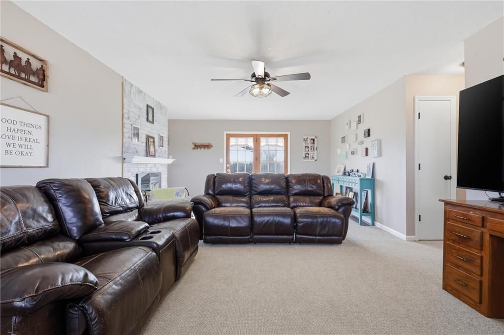 Welcome Home to this Beautiful Ranch Home on 10.55 acres in the highly sought after Lawson School District. Small town Charm!! Energy Efficiency Home with Geothermal HVAC system and Solar Panels! Enjoy cooking is this Beautiful Kitchen with lots of cabinets, center island with stove top, lots of counter space, built in desk area. Step into the Dining room with Bay window & see through Fireplace. Living room with see through Fireplace, walk out to your double deck. This home features 2 Bedrooms & Full Bath on main level, with nonconforming 3rd Bedroom & 1/2 Bath in Basement. Plenty of room in Basement to make a family room. One car Garage with Basement entry. 200 amp Electrical. Additional Highlights include 2 Car Garage/Workshop with concrete floors & electricity! Step on down to the next building 40 x 50 with electricity, can be horse barn with dirt floors. This 10.55 acres has a couple of entry ways one off of Baxter road to your driveway & House, Buildings, then also off of MM for the acreage. Your own Private Retreat, Perfect for entertaining! Conveniently located with easy access to Highway 35, Highway 92 & Highway 69, this home delivers peaceful country living without sacrificing accessibility! Plenty of room for your Garden & Chickens! Book your showing today for this Country Charm in small town living! Close to Watkins Mills!
