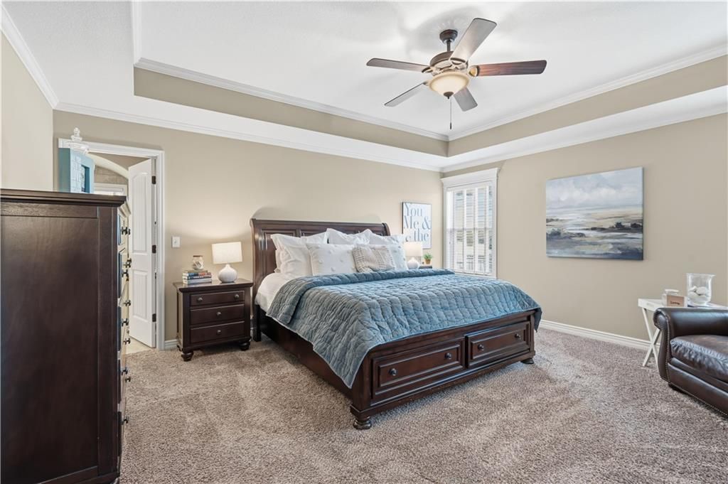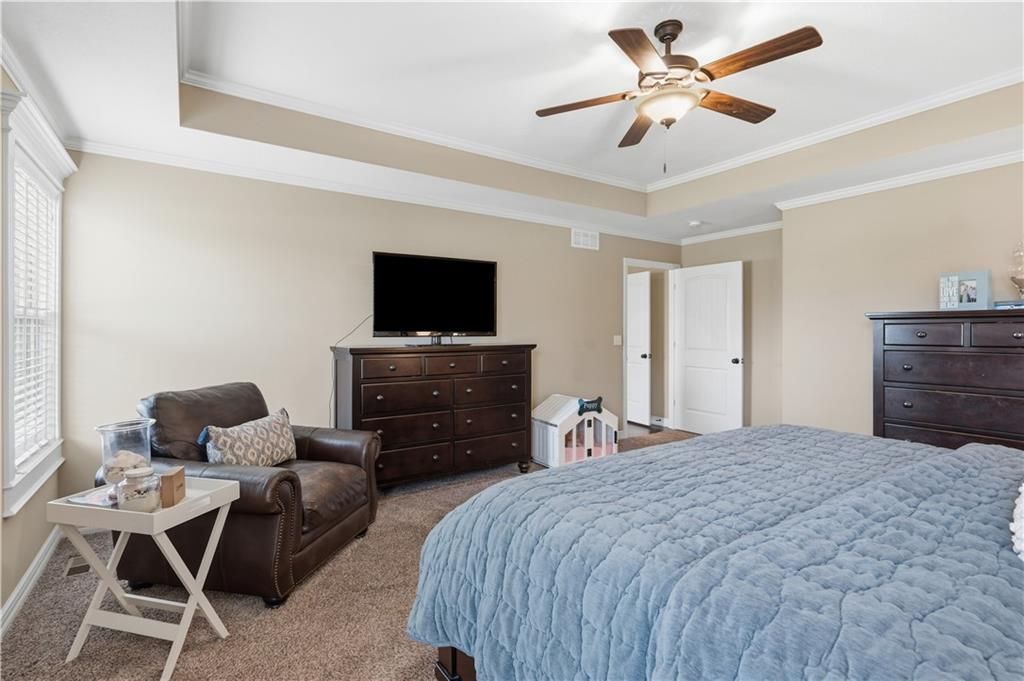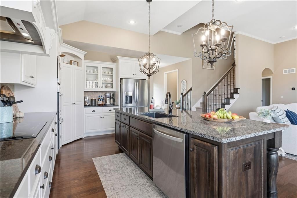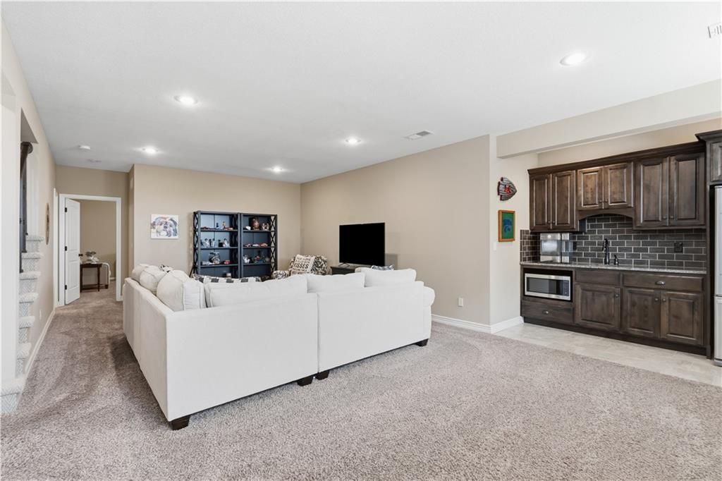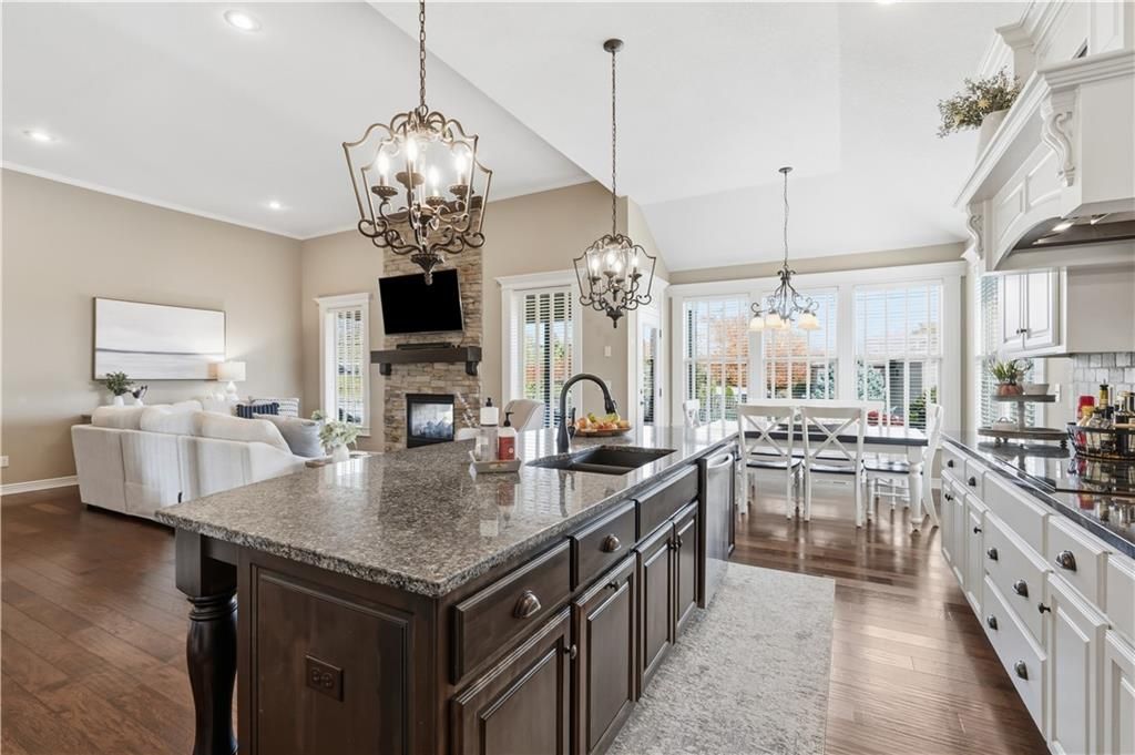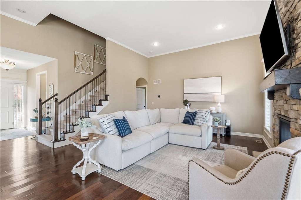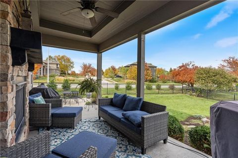 Come see this hard to find & beautiful 1.5 story plan in Falcon Valley featuring a spacious primary bedroom & bath on the main level. Also, on the main level you'll find the kitchen, vaulted great room w/see through fireplace, breakfast room, office, laundry, & all of this charm & beauty steps out onto a covered patio w/tons of gorgeous landscaping to enjoy & relax within. Upstairs, there are (3) ample sized bedrooms w/2 full baths. In the lower level, you'll get to experience the comfortable ambience of the beautiful rec room w/Bar as well as a (5th) bedroom and 4th full bath. This home has been lovingly maintained and lived in by the original owners. Exterior & most of the Interior were just re-painted this past fall and there is new carpeting on the stairs and in main level office. This gorgeous house sits upon a culdesac lot w/easy access to the neighborhood sidewalks for walking your dog or just taking a leisurely stroll. Great location in Lenexa. Close to highways, schools, dining and more. Falcon Valley Subdivision has neighborhood pool, sport court, ponds & more as part of your annual dues. Home is typically held open on weekends for those buyers without agents or agents who might be unavailable to show. This is an awesome home, see you soon.