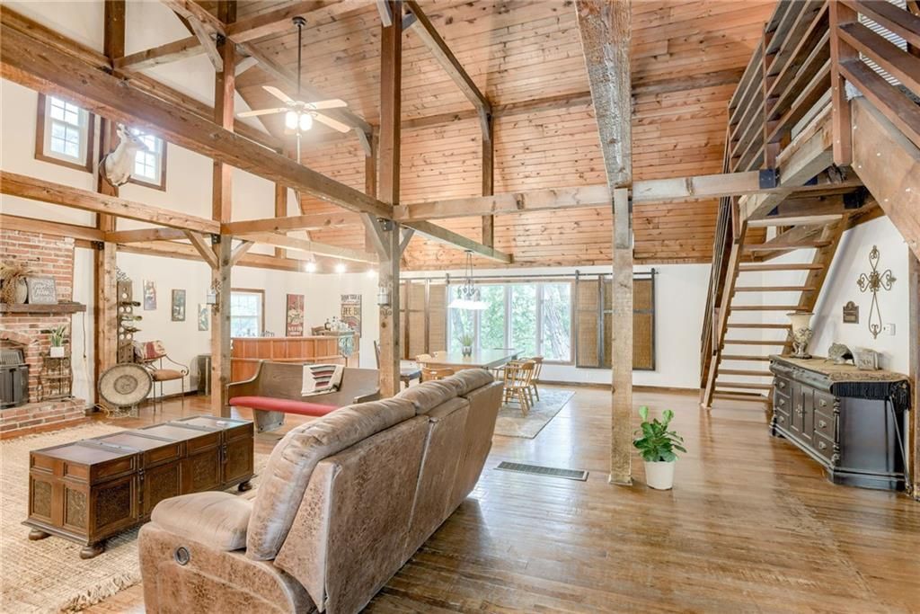 This distinctive barn-style home is ready for your holiday gatherings! The seller has made significant updates and is eager to see this home sold! New roof was installed the week of November 3rd, adding to the long list of recent improvements. Set on 4.6 acres in the Kearney School District, this one-of-a-kind property offers 4,600 sq. ft. of living space, including 4 bedrooms, 3 bathrooms, 2 family rooms, and a basement kitchenette - perfect for flexible living, multi-generational arrangements, or entertaining with ease. Step inside to find a dramatic two-story family/dining room filled with rustic character. The first level includes a kitchenette, 2 bedrooms, 1 bathroom, and 2 living areas - ideal for guests, extended stays, or a dedicated space for work or hobbies. Upstairs, you'll find a private owner's retreat occupying the third-level loft, complete with a spacious bedroom, full bathroom, and abundant closet space - creating a peaceful hideaway separate from the rest of the home. The seller has made inspection reports available and completed numerous updates, including a new electrical panel, new 17-ton bridge, upgraded furnace and A/C, apron front kitchen sink, marble countertops, 200' water line replacement, paint, flooring, and more. Outside, enjoy the tranquility of 4.6 acres (fenced on three sides), a barn with stables, and a spacious back deck overlooking the scenic landscape. Conveniently located just off I-35 north of Kansas City, this home combines the peace of country living with a short drive - less than 20 minutes - to shopping, dining, and entertainment. The seller is motivated and welcomes offers from buyers seeking a home that blends space, character, and convenience.