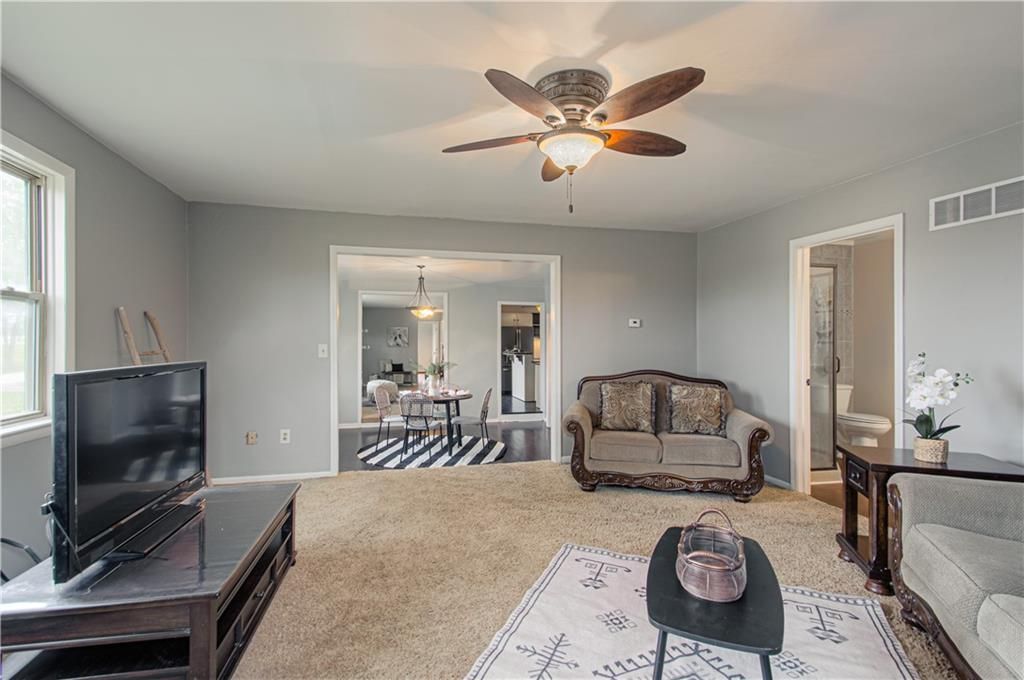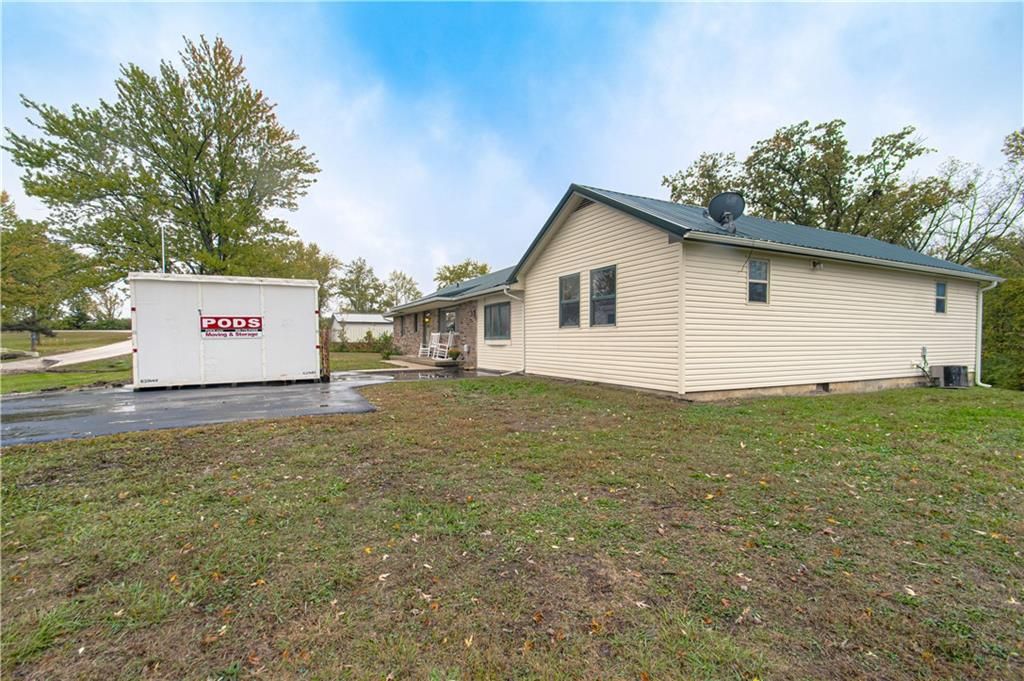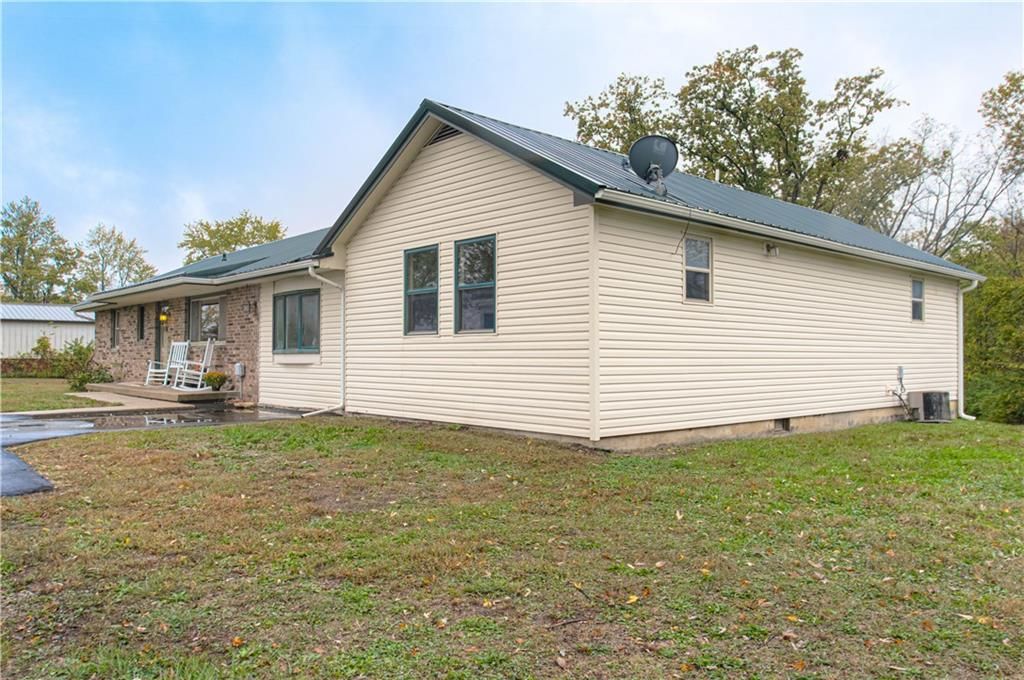PRICE IMPROVEMENT!!! This charming ranch-style home with maintenance-free exterior offers a spacious 4-bedroom, 2-bath layout on over 2 acres, and nearly 2,000 square feet of living space. It features plenty of driveway parking and room to add a carport or detached garage. The south end includes three hardwood-floor bedrooms, while the freshly painted interior and professionally cleaned carpets add a fresh touch. There are two spacious living areas and a large formal dining room, perfect for gatherings and holidays. An addition adds a second living space and a primary bedroom with an en-suite bathroom and private patio access for added comfort. The cozy kitchen boasts an island for extra counter space and storage, along with a walk-in pantry off the dining room. The utility room in the unfinished basement provides extra storage or expansion possibilities. Outside, the fenced yard includes an above-ground pool with new decking, great for summer fun, and a large barn for outdoor equipment and tools. The house also features two water heaters and AC units for convenience. Recent updates include a new water softener (2023), a backyard oasis with a pool, deck, and patio installed in 2022, and a paved driveway Spring of 2025. The metal roof, gutters with guards, and siding were replaced within last 10years. Foundation work in 2025 comes with a 10-year warranty. Enjoy the best of country living just minutes away from the city!