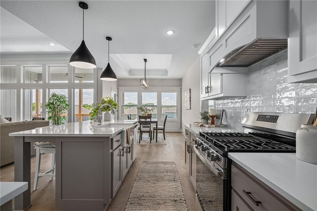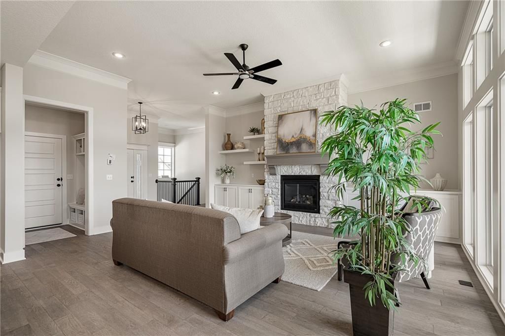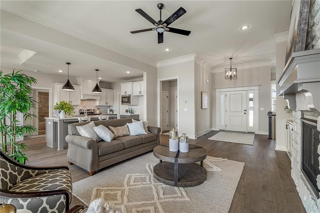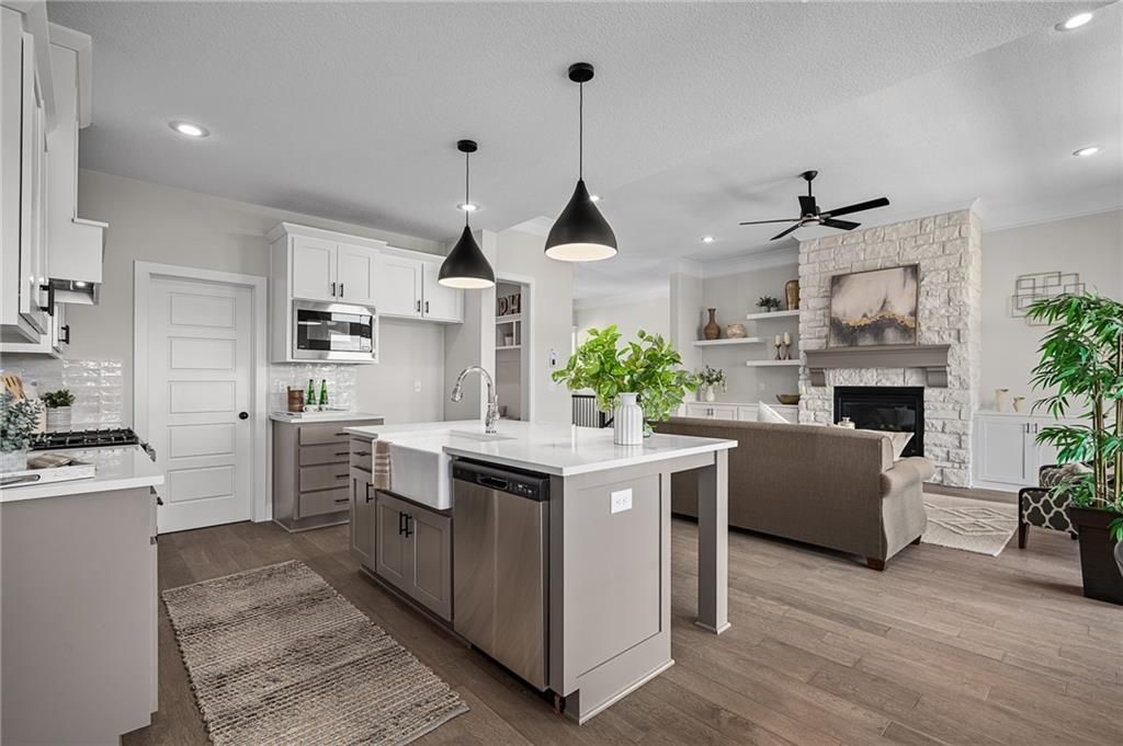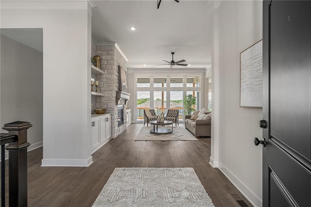Prieb's all-new Payton Rev 1.5 plan is a stunning home located in a tranquil setting. This beautiful home features a spacious great room with a floor-to-ceiling stone fireplace and hardwood floors. The light and bright kitchen boasts a large island with an apron-front sink, recirculating stove hood, built-in microwave, soft-close drawers and doors, and painted kitchen cabinets. The main level of this home features three bedrooms, while the finished walkout lower level has an additional bedroom, a family room, and a third full bath. The walk-up wet bar is a great addition, perfect for entertaining guests or enjoying a night in with family. The covered 17x8 deck provides the perfect spot to enjoy the beautiful views, while the large walk-out lot provides easy access to the outdoors. This home is a great option for anyone looking for a functional and beautifully designed living space in a serene setting. Please note that the photos provided are of a previously completed spec home, and some features may not be included. It is recommended that buyers work with their agent to confirm the details of the home.