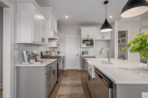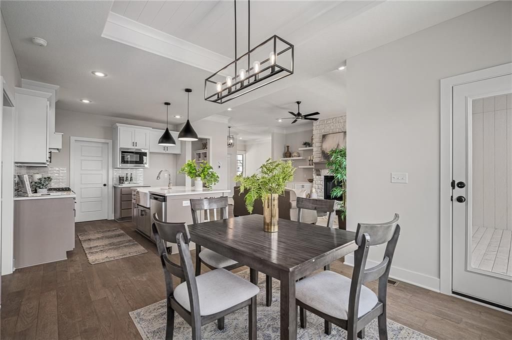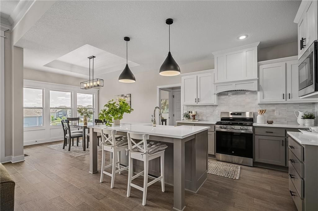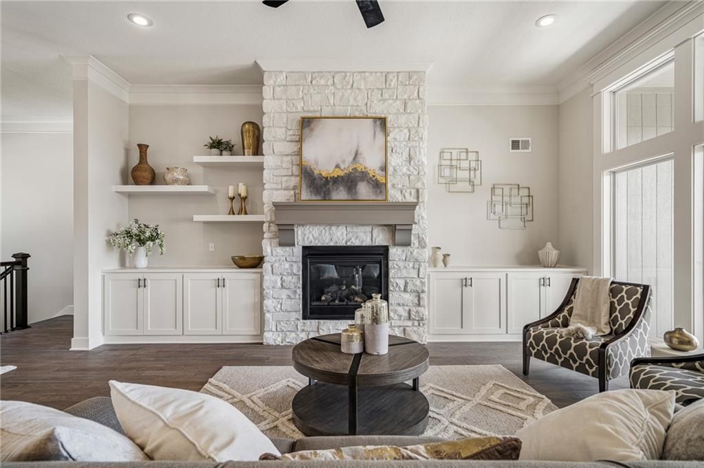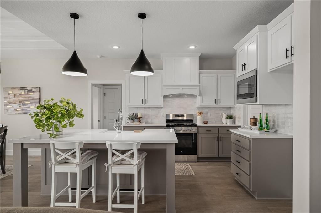 Prieb's all-new Payton Rev 1.5 plan is a stunning home located in a tranquil setting. This beautiful home features a spacious great room with a floor-to-ceiling stone fireplace and hardwood floors. The light and bright kitchen boasts a large island with an apron-front sink, recirculating stove hood, built-in microwave, soft-close drawers and doors, and painted kitchen cabinets. The main level of this home features three bedrooms, while the finished walkout lower level has an additional bedroom, a family room, and a third full bath. The walk-up wet bar is a great addition, perfect for entertaining guests or enjoying a night in with family. The covered 17x8 deck provides the perfect spot to enjoy the beautiful views, while the large walk-out lot provides easy access to the outdoors. This home is a great option for anyone looking for a functional and beautifully designed living space in a serene setting. Please note that the photos provided are of a previously completed spec home, and some features may not be included. It is recommended that buyers work with their agent to confirm the details of the home.