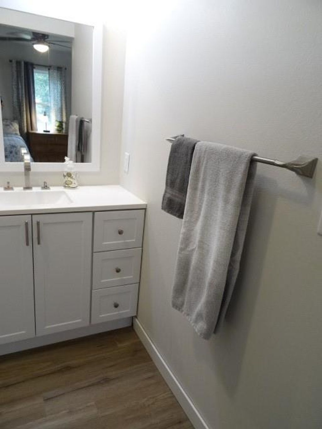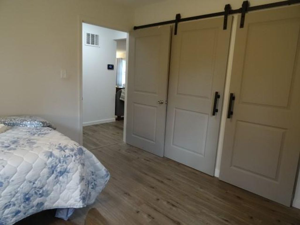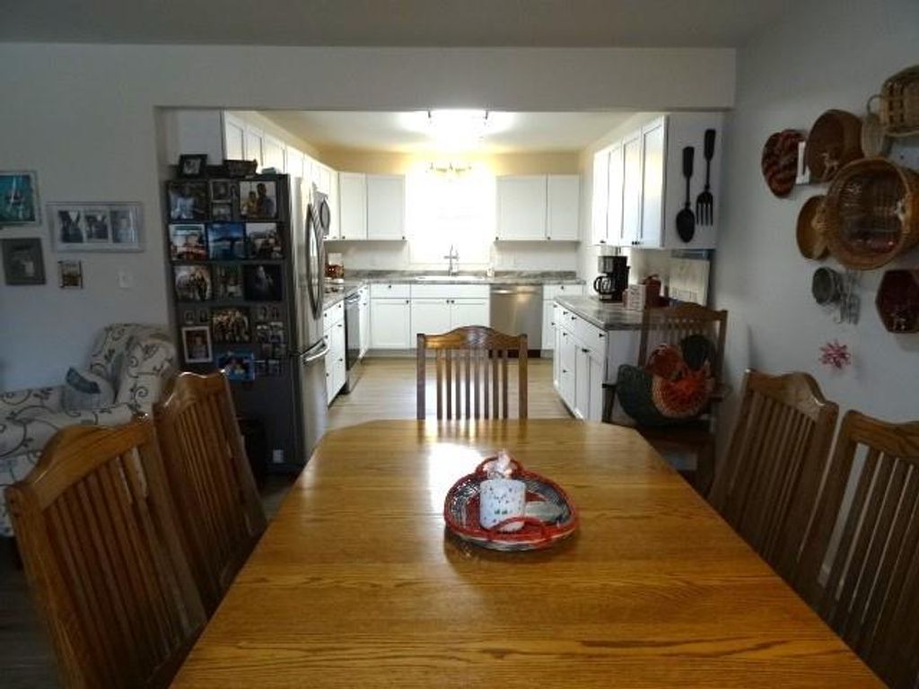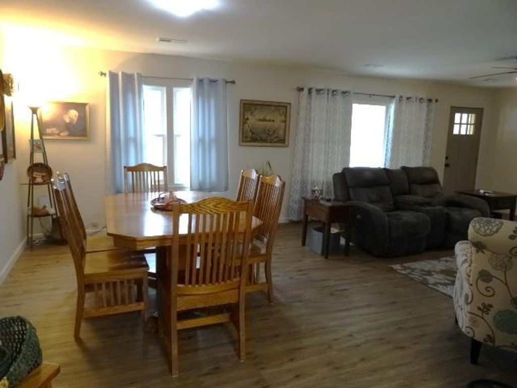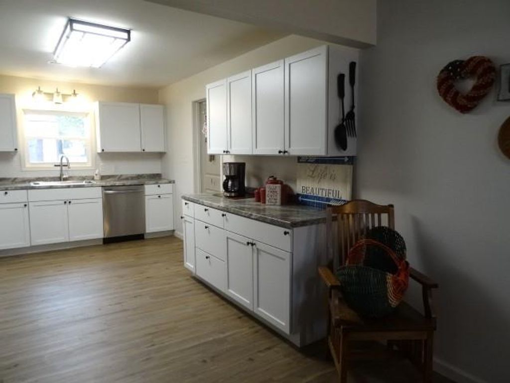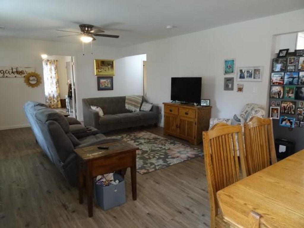 Perfect size 3 BR, 2 BA, 1412 sq. ft./1 car garage/shelving and room for your SUV. In 2021 house was remodeled, walls removed and opened up making kitchen-dining area-and living area in an L shape. White kitchen cabinets with stainless appliances, built in buffet-serving counter or coffee bar makes entertaining enjoyable, hidden trash. The size of the drawers in the kitchen are a favorite of current owner. Mud Room/Laundry leads outside to 16x20 concrete patio. Master Bath has a new ceramic tile shower/glass doors, grab bars. Barn doors for the bath and closet. 2nd Bath in hall has one piece vinyl shower over tub. 10x20 Covered concrete front porch gives a craftsman appearance to the house. This was added new to the house in 2022 as well as new sidewalks & ribbon driveway. 202 1Lenox Ultra Smart Programable Thermostat can be controlled /smart phone as well as the wi-fi garage door opener from anywhere. 5' wide hall with 36" doors make the bedrooms accessible to wheelchairs. All curtains & blinds stay, 4 Ceiling Fans, whole house LVP flooring. 10x12 Metal Bld. added in 2023. Mold Remediation and Encapsulation in October 2025 under house and in the attic. Access under the house in the back was made larger, some plumbing issues addressed in November 2025 with new line and cleanout. (Cleanout is in the front yard). New Breaker Box, Rim Sill in front replaced. Vents in foundation to open and shut added. Buried gutter drains. New windows in 2021 make it energy efficient. Insulation was added in the attic in 2023. New Vinyl Siding in 2021. 200 ft. back yard with garden spot or a place to plant fruit trees. Plenty of room for animals or children to play. Owner says utilities very affordable. Make this your new home. There is (1) extra gravel place to park beside the driveway.