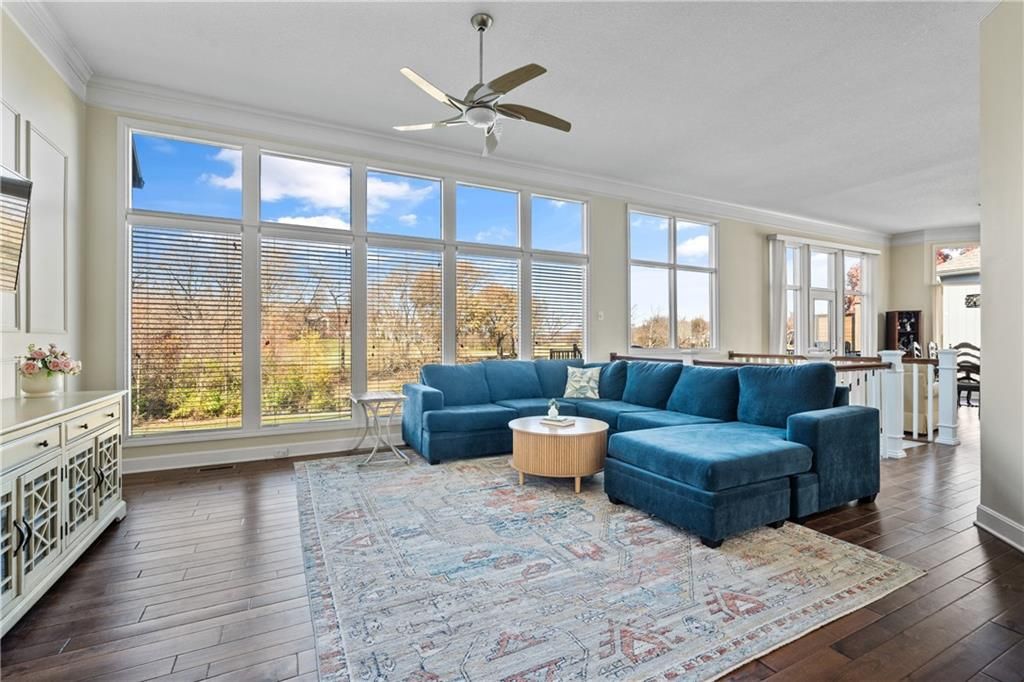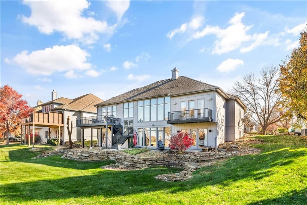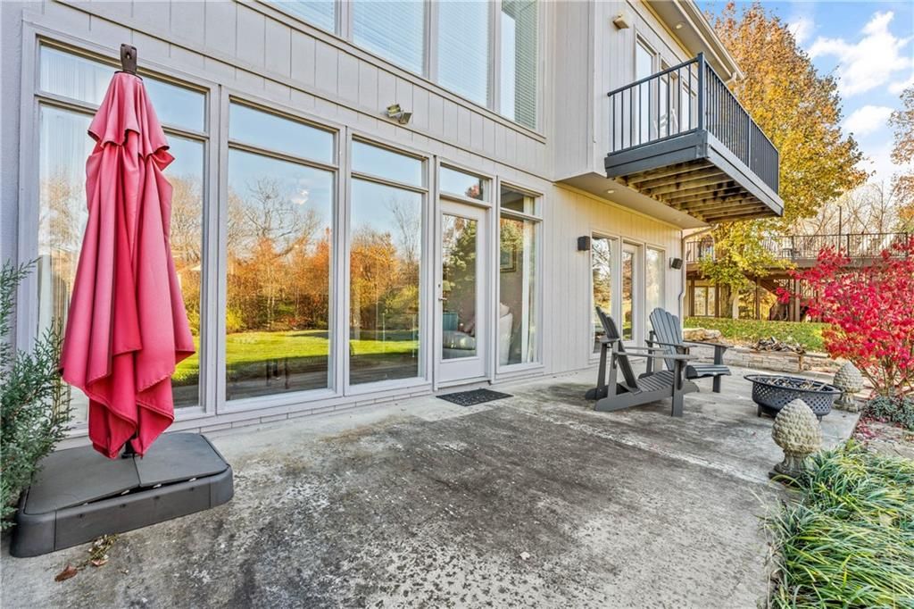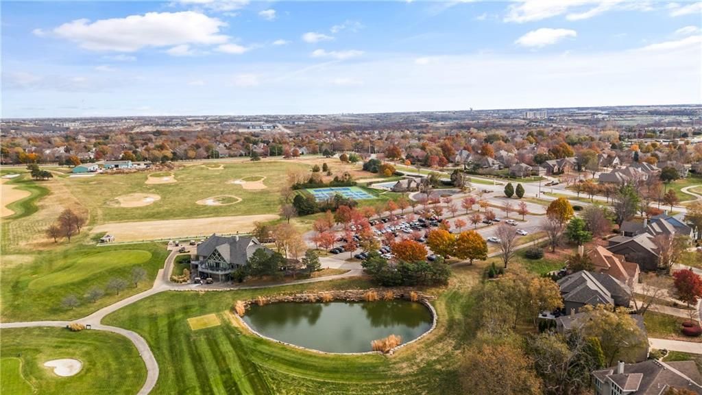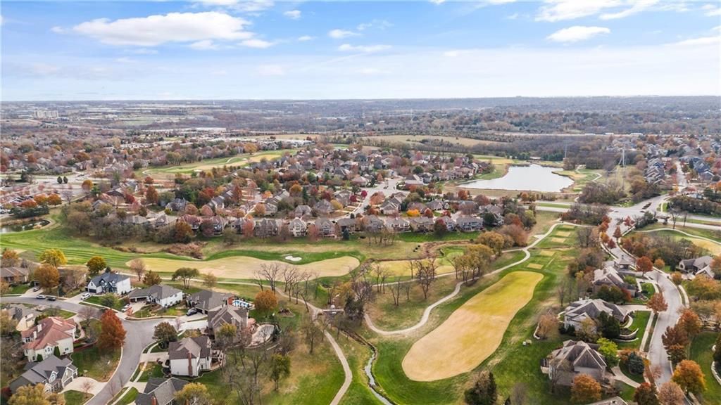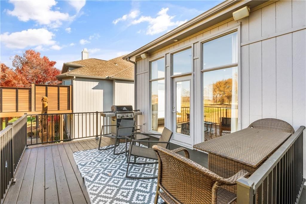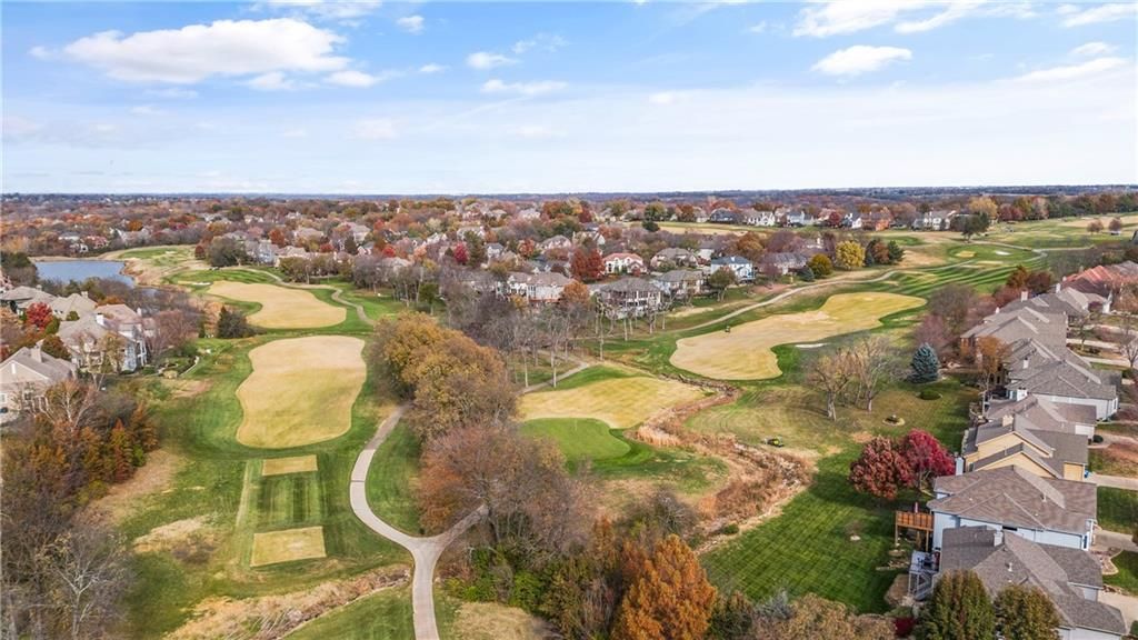 Experience luxury living in this beautifully designed reverse 1.5, perfectly positioned on one of Falcon Ridge's most coveted golf course lots. Tucked into a quiet cul-de-sac - yet just a short walk to the Falcon Ridge clubhouse, pool, and tennis/pickleball courts - this home pairs privacy with unbeatable convenience. The setting is truly special: the home sits comfortably back from the 10th hole, creating an uncommon sense of space while still capturing wide-open, spectacular golf course views from nearly every angle. Multiple outdoor living areas make the most of the scenery. Enjoy peaceful mornings on the private martini deck or take in striking sunset skies from the kitchen-level deck - each spot offering its own vantage point of the rolling fairways. Inside, the main floor is bright, welcoming, and thoughtfully arranged. A cozy library/office with custom built-ins and a window seat sets the tone, and an elegant dining room opens into a spacious living area connected to the updated kitchen and breakfast room. The primary suite occupies its own quiet wing and includes direct deck access along with a freshly updated, spa-inspired bathroom. The walkout lower level is made for entertaining and everyday enjoyment. A built-in bar serves the large second living area, which opens to a generous patio overlooking the expansive yard and golf course. Three bedrooms complete this level - including an oversized flex room that can serve as a gym, recreation room, media space, or comfortable guest suite. With its rare setting, stunning views, and a layout that embraces both comfort and style, this home offers an exceptional lifestyle in the maintenance-provided Falcon Ridge Villas.