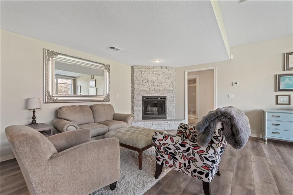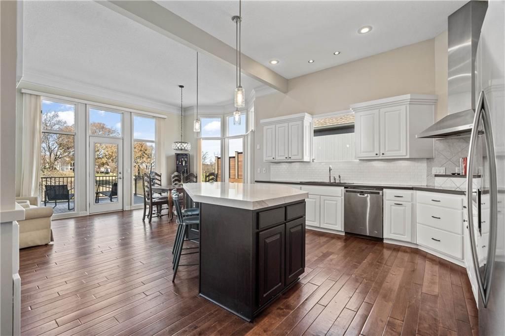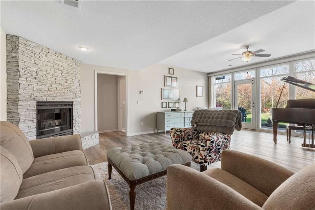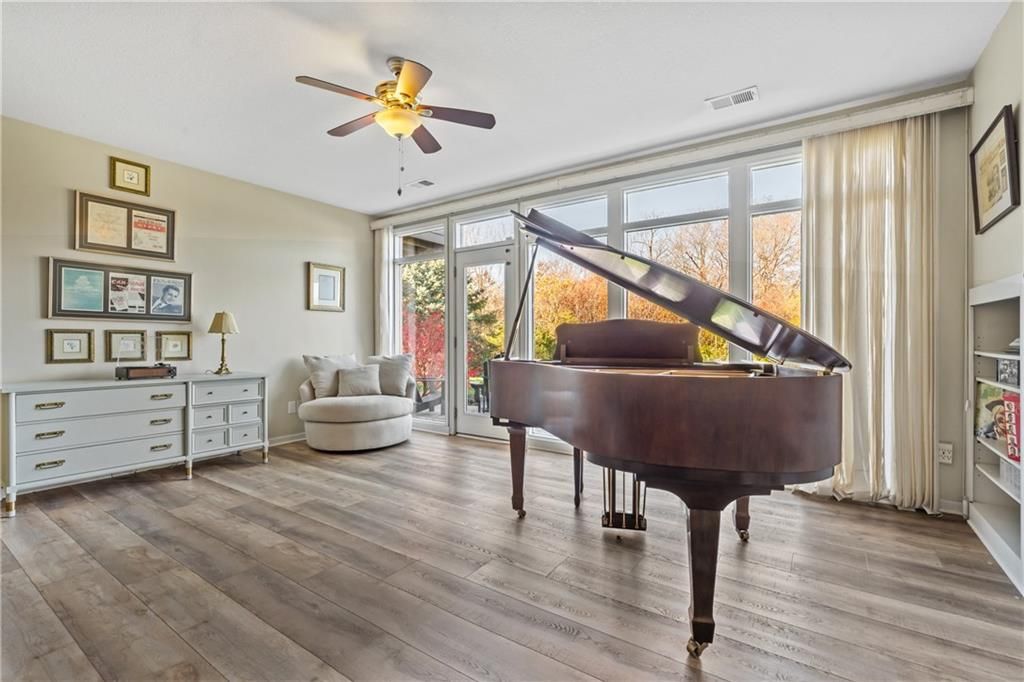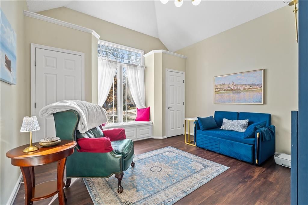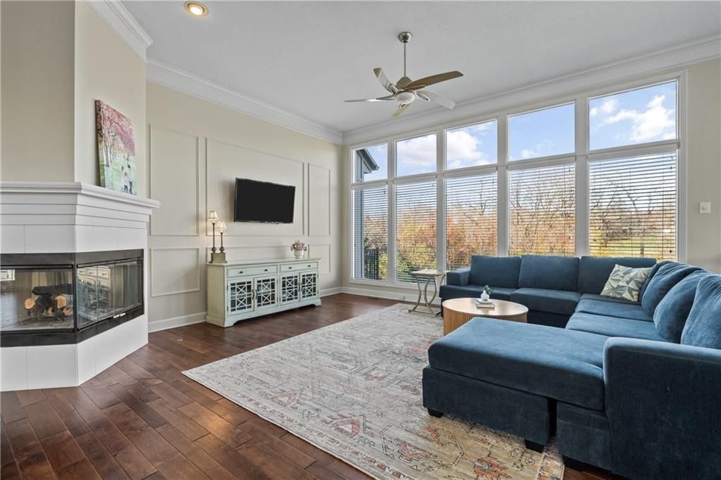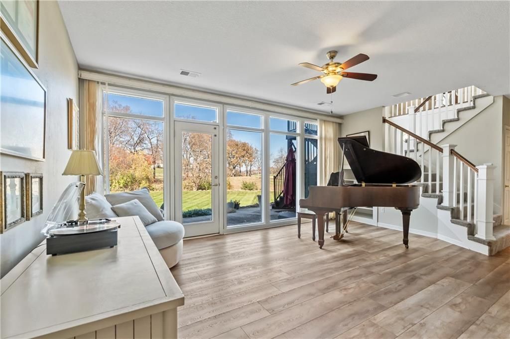 Experience luxury living in this beautifully designed reverse 1.5, perfectly positioned on one of Falcon Ridge's most coveted golf course lots. Tucked into a quiet cul-de-sac - yet just a short walk to the Falcon Ridge clubhouse, pool, and tennis/pickleball courts - this home pairs privacy with unbeatable convenience. The setting is truly special: the home sits comfortably back from the 10th hole, creating an uncommon sense of space while still capturing wide-open, spectacular golf course views from nearly every angle. Multiple outdoor living areas make the most of the scenery. Enjoy peaceful mornings on the private martini deck or take in striking sunset skies from the kitchen-level deck - each spot offering its own vantage point of the rolling fairways. Inside, the main floor is bright, welcoming, and thoughtfully arranged. A cozy library/office with custom built-ins and a window seat sets the tone, and an elegant dining room opens into a spacious living area connected to the updated kitchen and breakfast room. The primary suite occupies its own quiet wing and includes direct deck access along with a freshly updated, spa-inspired bathroom. The walkout lower level is made for entertaining and everyday enjoyment. A built-in bar serves the large second living area, which opens to a generous patio overlooking the expansive yard and golf course. Three bedrooms complete this level - including an oversized flex room that can serve as a gym, recreation room, media space, or comfortable guest suite. With its rare setting, stunning views, and a layout that embraces both comfort and style, this home offers an exceptional lifestyle in the maintenance-provided Falcon Ridge Villas.