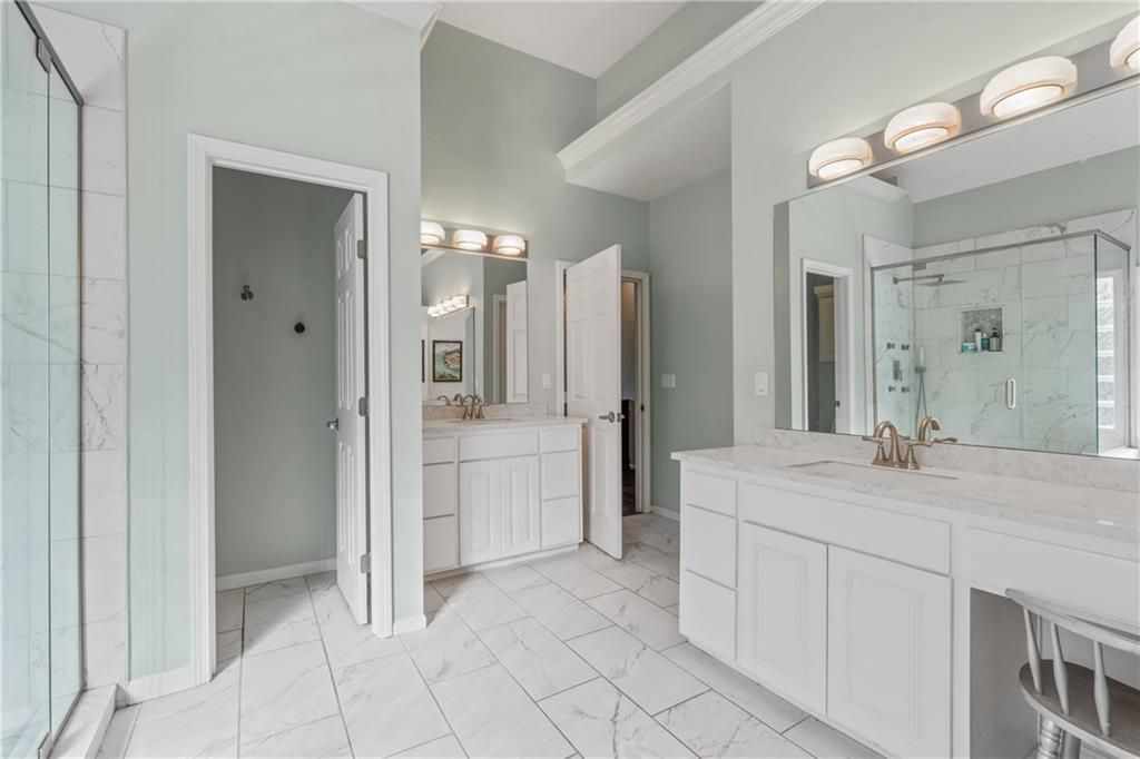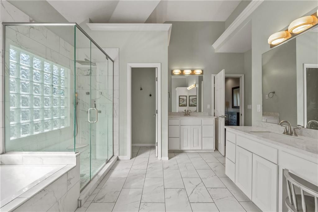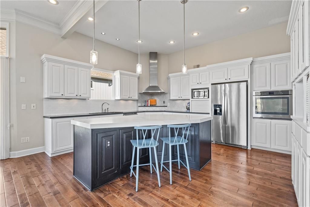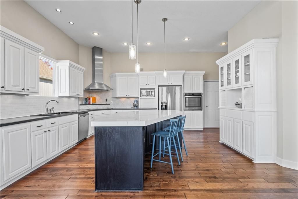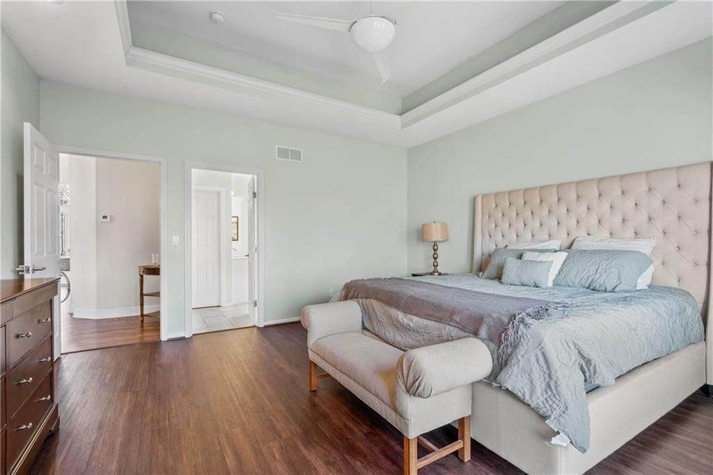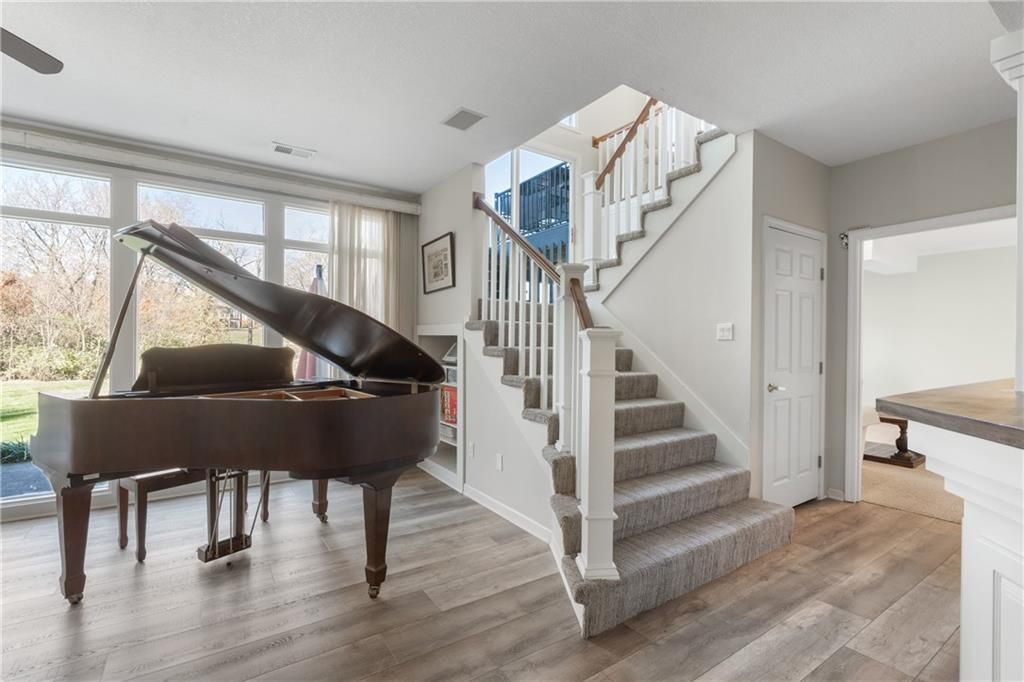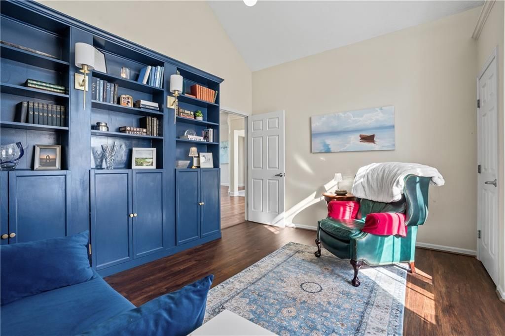 Experience luxury living in this beautifully designed reverse 1.5, perfectly positioned on one of Falcon Ridge's most coveted golf course lots. Tucked into a quiet cul-de-sac - yet just a short walk to the Falcon Ridge clubhouse, pool, and tennis/pickleball courts - this home pairs privacy with unbeatable convenience. The setting is truly special: the home sits comfortably back from the 10th hole, creating an uncommon sense of space while still capturing wide-open, spectacular golf course views from nearly every angle. Multiple outdoor living areas make the most of the scenery. Enjoy peaceful mornings on the private martini deck or take in striking sunset skies from the kitchen-level deck - each spot offering its own vantage point of the rolling fairways. Inside, the main floor is bright, welcoming, and thoughtfully arranged. A cozy library/office with custom built-ins and a window seat sets the tone, and an elegant dining room opens into a spacious living area connected to the updated kitchen and breakfast room. The primary suite occupies its own quiet wing and includes direct deck access along with a freshly updated, spa-inspired bathroom. The walkout lower level is made for entertaining and everyday enjoyment. A built-in bar serves the large second living area, which opens to a generous patio overlooking the expansive yard and golf course. Three bedrooms complete this level - including an oversized flex room that can serve as a gym, recreation room, media space, or comfortable guest suite. With its rare setting, stunning views, and a layout that embraces both comfort and style, this home offers an exceptional lifestyle in the maintenance-provided Falcon Ridge Villas.