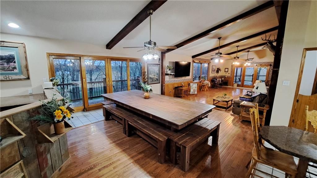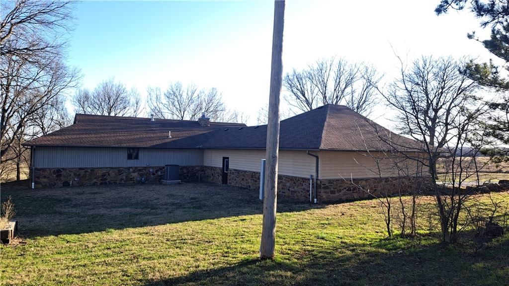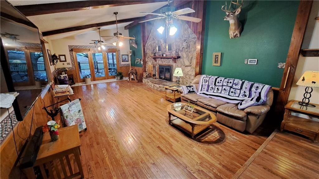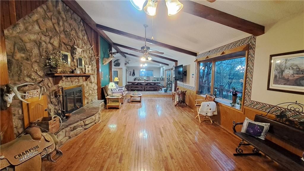 Nestled on approximately 6 acres of serene countryside, this one-of-a-kind home offers the perfect blend of rustic charm and modern convenience. The property boasts beautiful rock siding that enhances its unique character, while large oak and pine trees add to the tranquil setting. With sweeping views in every direction, this home is the ideal escape. The spacious three-car garage (40x30) provides ample storage and workspace, while the expansive deck is perfect for enjoying the stunning surroundings and entertaining guests. The walkout basement opens up to the lush yard, giving you easy access to nature's beauty just outside your door. Inside, the home features a grand open concept design with a large fireplace as the centerpiece of the front room, offering a cozy yet impressive space for relaxation. The dining room and kitchen flow seamlessly, creating a welcoming atmosphere for family gatherings and meals. The office area and mud room provide additional functional spaces to suit your needs. With four spacious bedrooms and three bathrooms, there is plenty of room for everyone. The full basement adds extra living space, perfect for a family room or recreational area. Whether you're seeking peace and quiet or a place to entertain, this property has it all. Come experience country living at its finest - schedule your showing today!