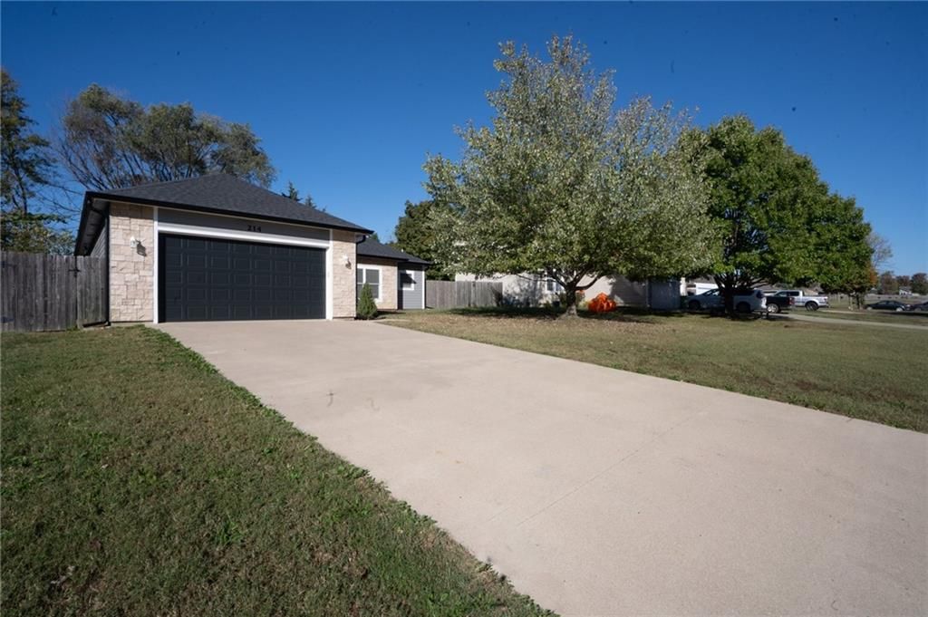 New price!!Do not overlook this Baldwin City home conveniently located near 56 highway and offering so many recent updates-new roof and gutters, fresh exterior paint, a new HVAC system and new LVP flooring.This spacious home offers all the convenience of one-level living with an open floor plan that includes three bedrooms, two bathrooms, and a large eat-in kitchen with plenty of counter space. The living room boasts a gas fireplace with a bright and inviting space. A roomy laundry area is located near the garage entry for easy access. Outside, you'll find a firepit and a wooden privacy fence, perfect for relaxing or entertaining. This home offers the perfect blend of comfort and simplicity in a great location.