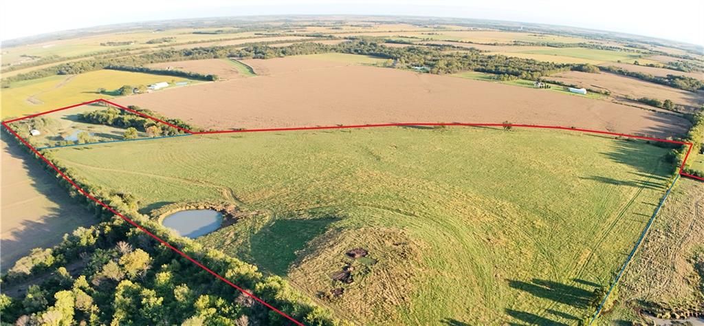 Diversified Farm 139 acres+/- has it all, income producing cropland, the pastures are a cattleman's dream with year around grazing, cool season pasture, warm season pasture, 4 ponds, treed areas, whitetails and other wildlife. There is a livestock pond in each of the four cross fenced sections, including the West 40 that has 34 acres tillable, Woodson Silt Loam soil, produced soybeans this year with the remaining acres of that section in grass waterways and timber including trees around the pond and road frontage on the West. The middle 40 of Native Prairie is fenced and has a pond. The East 60 of cool season grass is divided into a larger tract of 49 acres+/- with a pond and a smaller pasture of 11 acres on the East end of the property that has a pond and a 60 x 30 barn with a catch pen. The two middle tracts both have high hills that rise 70 in elevation above the lowland. The hilltops provide an amazing, scenic view of the property and the surrounding areas. You have be there on top of one of the hills to truly appreciate the view. Whitetail deer cross the property along the tree lines and fence lines and of course the 34 acres of cropland on the West with the pond surrounded by trees is a magnet for whitetails. There is a rural water service line along the East side of the property next to Eisenhower Rd. Check with the Rural Water District to verify water meter availability. Bonus: the Kansas sunrises and sunsets can be gorgeous looking out from on top the hills. All that and it is just 35-45 minutes from the KC metro area.