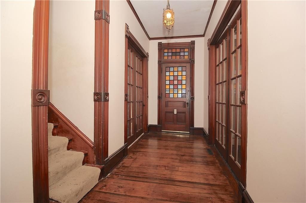 The timeless charm of the historic House of Eleven Gables needs your love! Inside, you'll find authentic stained glass, large windows allowing lots of light to gleam inside, charming original woodwork including 3 pocket doors, 2 sets of French doors and hardwood floors. Cozy up to the 2 original fireplaces ~ one in the living room and one in the kitchen. Huge walk-in pantry just steps away from the large kitchen which has a kitchen island and lovely lighting. The primary bedroom features both a walk-in and a walk-through closet. The large upstairs bath has both a soaking tub and a walk-in shower. Enjoy sipping your favorite beverages on the screened-in back porch, on the inviting front porch or convenient side porch ~ perfect spots to relax and unwind. 2 NEW central heat and air units installed in 2025. Privacy fence is only 2 years old. Gutters with leafguard is 4 years old. Detached 400 square foot 2-car garage has a concrete floor, electric, 4 new windows and has attic storage. Seller is offering a $2,000 flooring allowance or you can use this toward your closing costs. Seller will have home professionally cleaned up to $1,000. Don't miss your chance to own this historic treasure! Priced wayyyyy under $270,720 county appraisal!