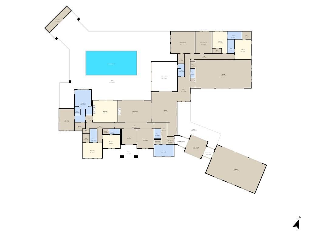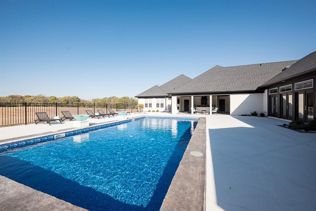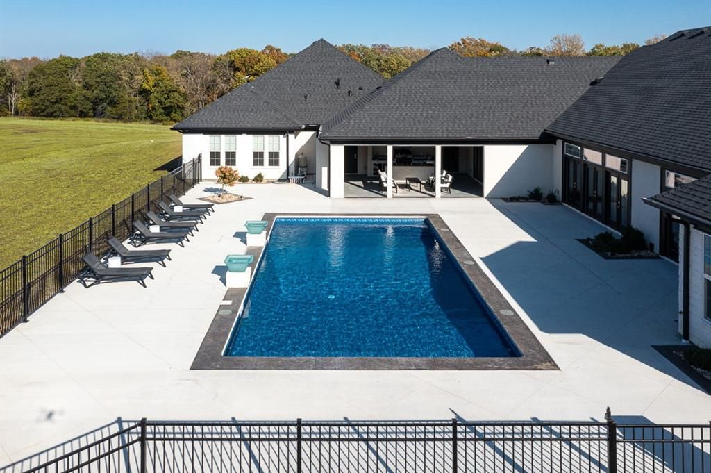 LUXURY 5-BED ESTATE ON 15 ACRES WITH MODERN AMENITIES & RESORT-STYLE LIVING! If you've been searching for a high-end home that blends wide-open space with top-tier comfort, this stunning 6,000+ sq ft single-level residence delivers it all. Set on 15 peaceful acres, this estate feels like your own private resort, offering room to breathe, play, and relax in total privacy while still staying close to everyday conveniences. Inside, you'll find expansive living areas designed for both hosting and unwinding, a true gourmet kitchen with two large islands and a massive walk-in pantry, plus heated floors in every full bathroom for year-round comfort. The home is loaded with modern upgrades, including full home automation, motorized blinds, whole-house audio, custom inset bedroom lighting, two HVAC systems, and two on-demand water heaters. Movie nights are incredible in the dedicated home theater, and outdoor living shines with a covered outdoor kitchen overlooking the custom inground pool with lighted fountains. A separate pool house adds convenience for guests, and the oversized 1,100 sq ft 6-car attached garage gives you all the storage you'll ever need. The 60x42 shop/barn is perfect for hobbies, equipment, or additional workspace. With 15 acres of beautiful land, this estate offers space, luxury, and a lifestyle that's hard to match - all in a prime rural setting with great access to surrounding communities.