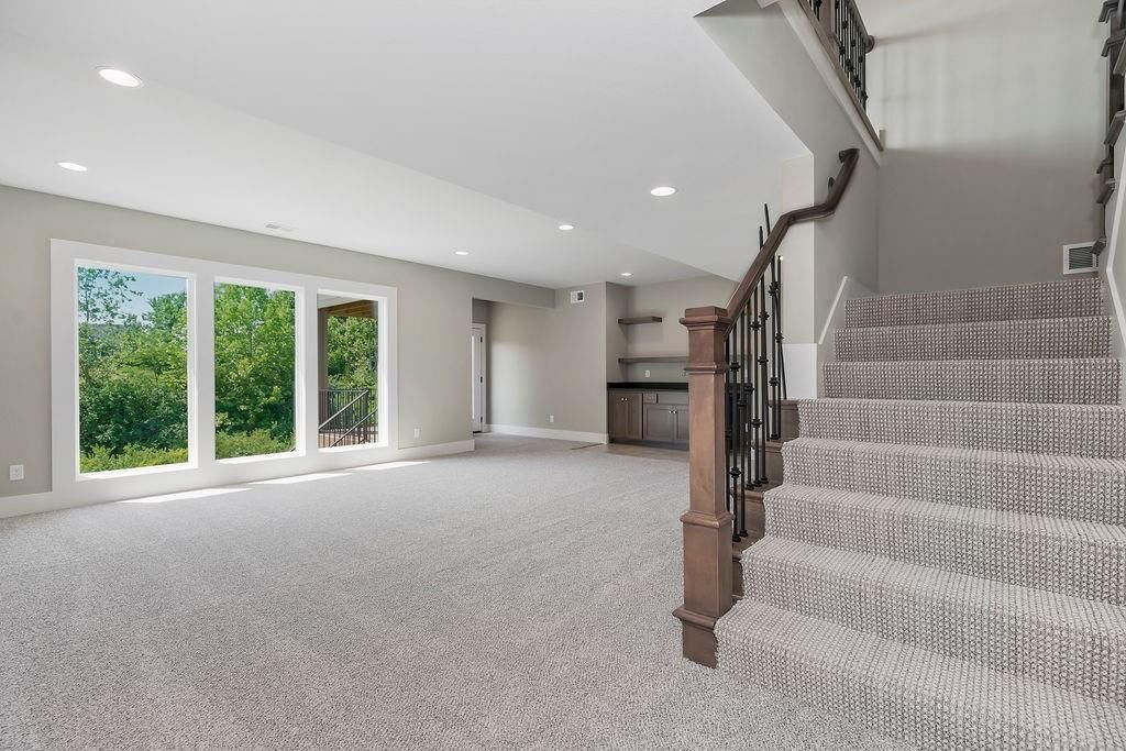 The Aspen II Reverse by Rodrock Homes. Move-in Ready! Elevation A - Open Floor Plan W/Tons of Natural Light Great Rm Features Cathedral Vault Ceiling W/Beams & Floor to Ceiling Stone Front Gas Fireplace W/Mantel. Wood Flrs lead from Entry into Great Rm, Kitchen, Pantry & Dining Rm leads out to Covered Deck. Enameled Cabinets, Granite/Quartz Counter Tops, Cook Top, Wall Oven, Breakfast Bar Island & Walk In Pantry. Huge Laundry Room w/Tons of Storage space, Utility Sink & Boot Bench. Granite/Quartz on MSTR Bath, 1st Floor Bath & Basement Bar. LL Features Secondary Bedrooms w/Walk In Closest, Wet Bar & Covered Composite Deck-great for entertaining on this WALKOUT Lot. MOVE IN READY! PHOTOS ARE OF ACTUAL HOME. VIRTUAL TOUR IS OF A PREVIOUS MODEL HOME. Forest View-a Premiere Rodrock Community featuring Moms Council Events, 50 ft Waterfall, Water Park, Zero Entry Pool, Volleyball, Playground & Picnic areas. Sport Court includes Basketball & Pickle Ball. Access to Cedar Niles Park is within the Community and Lake Olathe nearby.