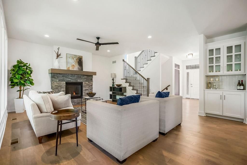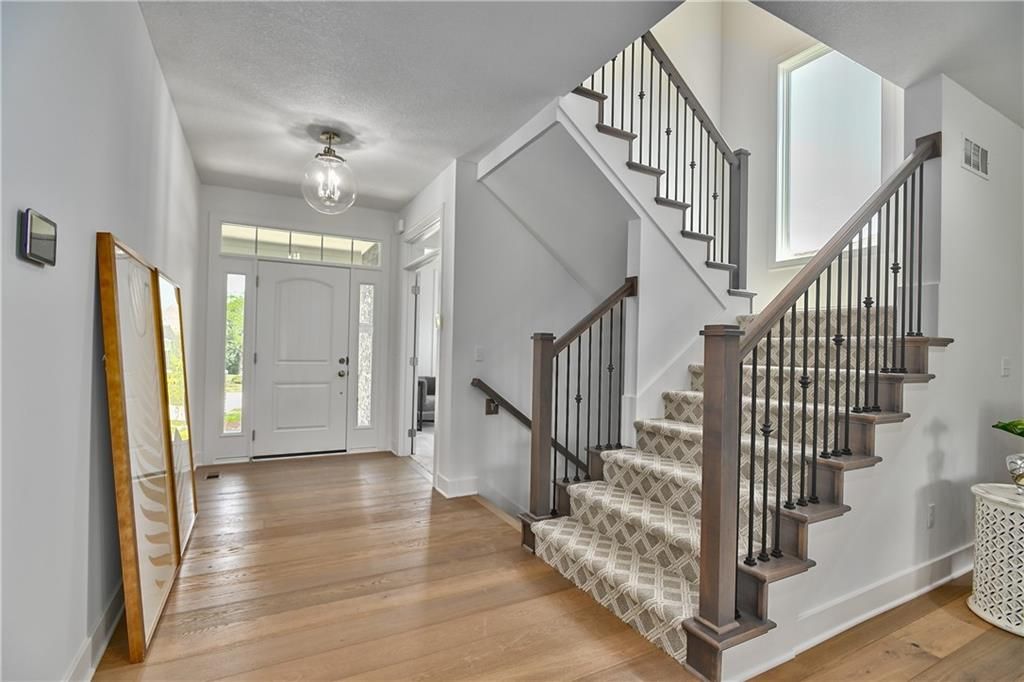 WELCOME HOME! The Durham by Rodrock Homes. Elevation 3 - Stone Trim Accents the Front Entry. Wood Floors lead from the Entry to the Great Room, Breakfast Room, Kitchen, Pantry and 1/2 Bath. Bonus Home Office/Study on Main Level. Great Rm Features Gas Fireplace & Mantel with Stone Front. Kitchen Features Quartz Counter Tops, Enameled Cabinets, Walk in Pantry-accessible from Kitchen AND Mud Rm! Double Doors lead you into Master Bedroom, w/Walk In Closet, Tiled Shower, Huge Soaker Tub w/Double Vanity. Secondary Bedrooms have either a Hollywood Bath or a Private bath, all w/walk in closets. Large Covered Deck. Walkout Lower Level. Irrigation System Included. MOVE IN READY! PHOTOS ARE OF ACTUAL HOME. Forest View-a Premiere Rodrock Community featuring Moms Council Events, Water Park, Zero Entry Pool, 50 ft Waterfall Entrance, Sand Volleyball, Playground & Picnic areas. Sport Court includes Basketball & Pickle Ball. Access to Cedar Niles Park/Walking Trails is located within the Community and Lake Olathe Park Nearby.