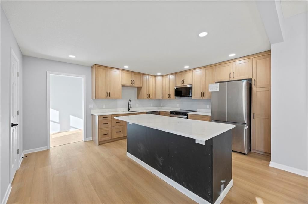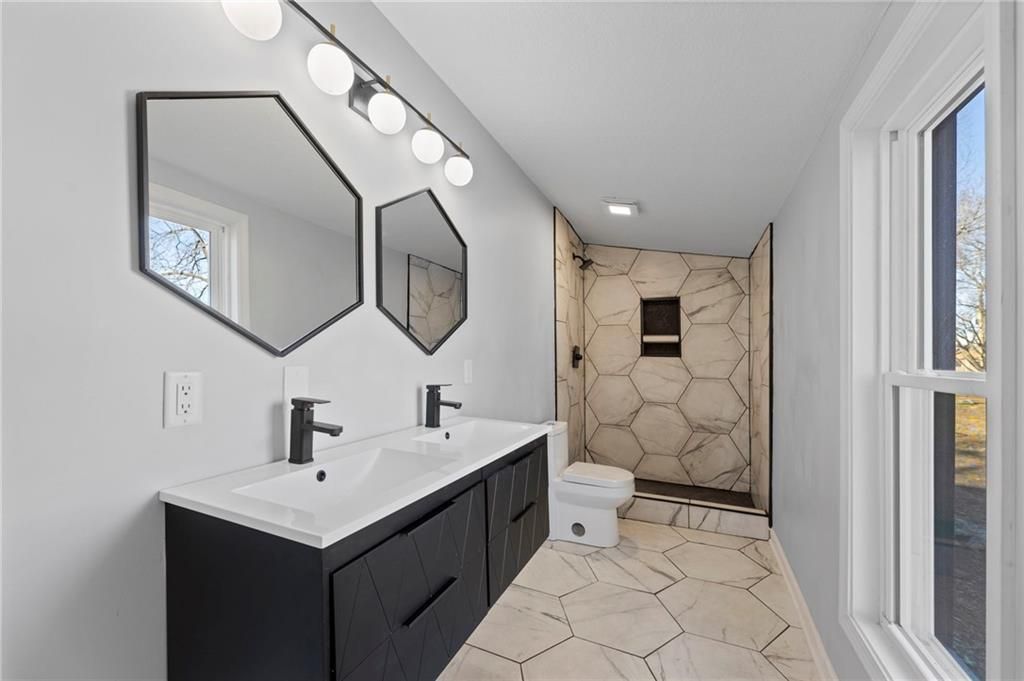 Welcome to 236 S Ash St in Ottawa, KS - a beautifully renovated 2,315 sq ft home on a peaceful 1.17-acre lot. This 4-bedroom, 2.5-bath property feels like a brand-new custom build and qualifies for Ottawa's 5-year tax abatement program, offering valuable long-term savings. The open main level features all-new flooring, paint, lighting, and finishes, highlighted by a stunning custom kitchen with premium cabinetry, high-end countertops, stylish hardware, and a spacious walk-in pantry. The main-floor primary suite provides convenience and privacy, while the updated bathrooms showcase tiled showers and modern vanities. Upstairs includes additional bedrooms and a unique indoor overlooking balcony, adding character and an airy architectural touch. Outside, enjoy the expansive 1.17-acre backyard with endless potential for outdoor living, a shop, or gardening, plus a storage shed for added functionality. Major updates include new electrical, plumbing, siding, roof, and windows, offering peace of mind for years to come. With luxury finishes, thoughtful design, and extensive upgrades throughout, this home truly stands out in the Ottawa market.
