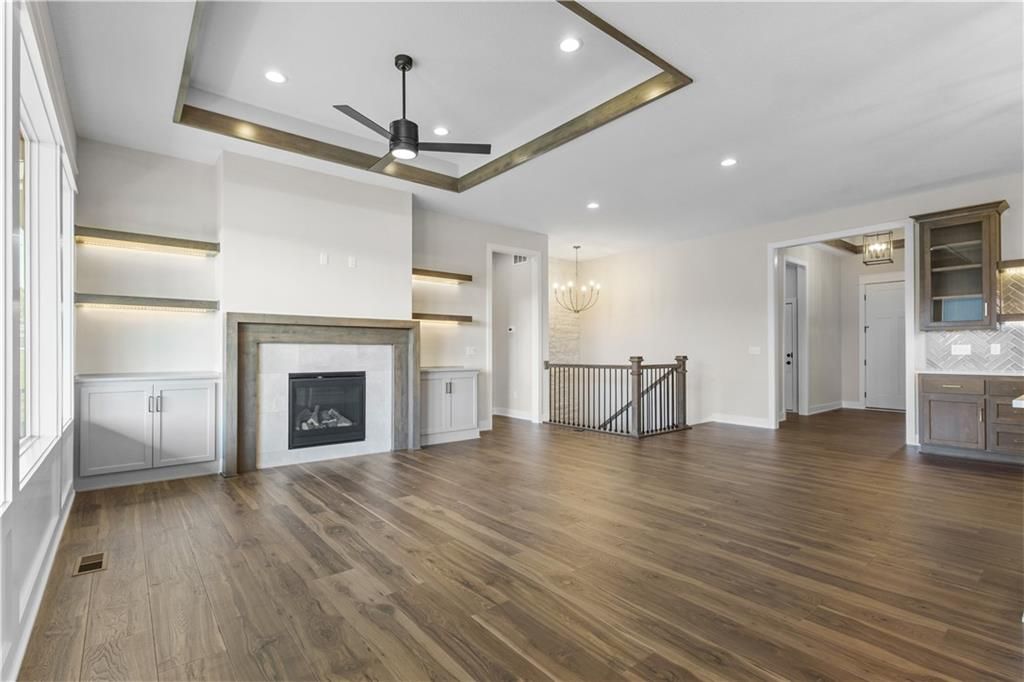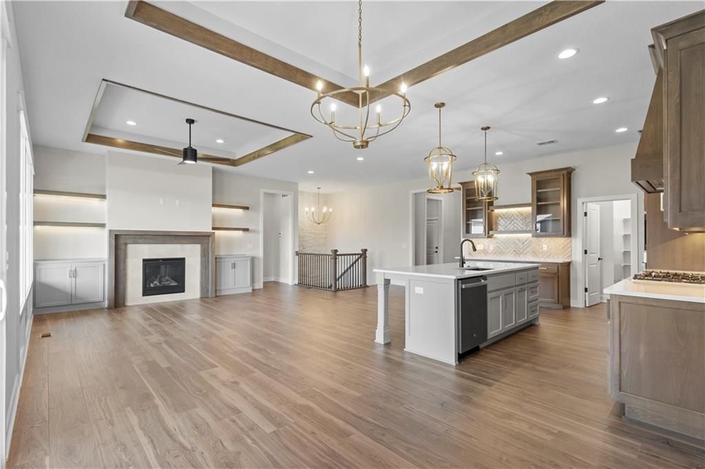 Design selections still available - with estimated completion in August! Sitting on a treed lot in the secluded second phase of Huntford - an established community now offering oversized 85'+ wide lots and adjacent to popular golf course! Low HOA fees and less than 10 minutes from major highways and a short drive to nearby Lake, nature preserves, local winery, and the NEW county trail system! The NEW Fairfield Expanded, by award winning Inspired Homes is derived from the popular Fairfield plan. This 4 bed, 3 bath reverse 1.5 offers main level living with a layout that is functional and convenient. The welcoming entry guides you to the expansive great room with ceiling accents and floor-to-ceiling stone fireplace. The designer kitchen includes custom soft close wood cabinetry, quartz countertops, stainless steel built-in appliances, sizeable walk-in pantry with electrical outlets - perfect for small appliances. The primary suite has ample space for furniture and flows to the primary bathroom, and large walk-in closet that is adjacent to laundry room. The finished basement has a spacious rec room, second fireplace, and wet bar with custom cabinets and lighting, two additional bedrooms and a full bath for family or guests. Designer upgrades throughout the home include custom wood trimmed wall detail, upgraded lighting, plumbing, and carpet, durable RevWood flooring, extra deep garages, 8' front & garage doors, irrigation systems, garage openers, low-e Pella windows and doors. Come see it today! *Photos depict previous model. Finishes may vary.