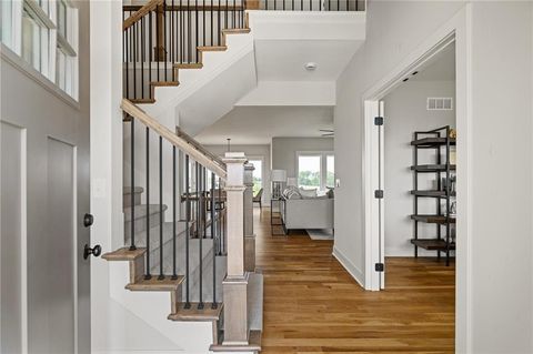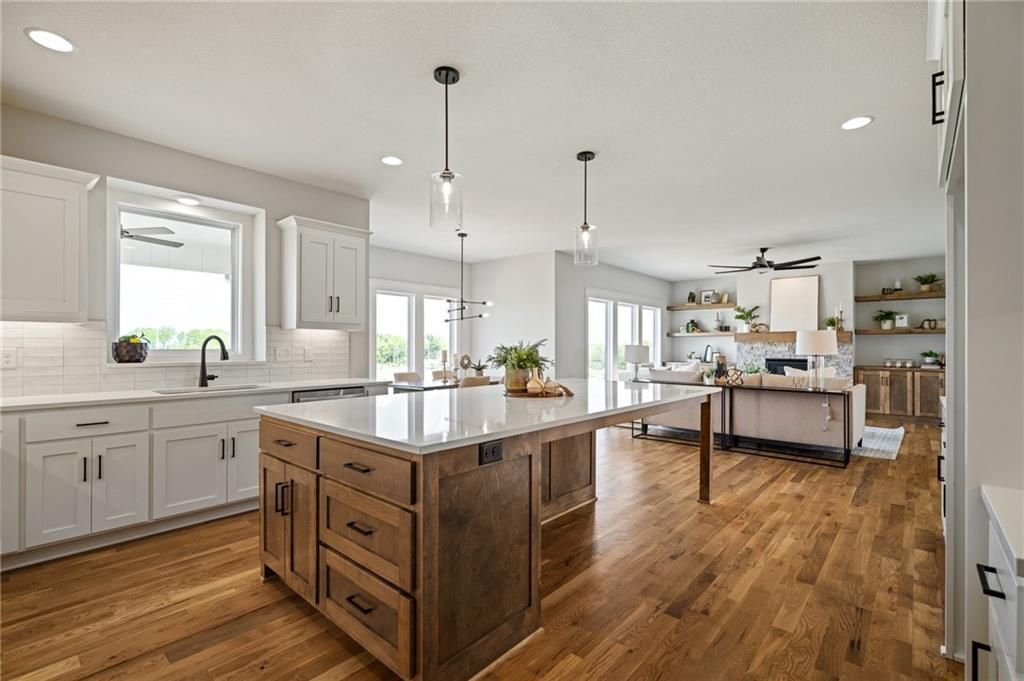 The McCormick by DCB Homes - Stylish, Functional, and Filled with Upgrades! Step into this stunning 2-story home that perfectly blends modern design with everyday comfort. Featuring 4 bedrooms and 3.1 baths, this open-concept layout is ideal for busy lifestyles and easy entertaining. The upgraded kitchen is a true showstopper - with a large gathering island, quartz countertops, gas cooktop, custom cabinetry, and a dreamy walk-in butler's pantry that makes meal prep effortless. A private main-level office offers the perfect space for work-from-home days or creative projects. Upstairs, unwind in the luxe primary suite with dual vanities, a big tiled shower, and a spacious walk-in closet. Secondary bedrooms are generous in size - each with their own walk-in closets. Enjoy evenings on the covered deck and take advantage of the sprinkler system that keeps your yard looking great with minimal effort. Located in Lakeview Ridge, a new community just west of Lake Olathe - surrounded by nature, minutes from city conveniences, and featuring a community pool coming in next phase. Easy access to K-7 or Lakeshore Drive. Zoned for Clearwater Creek Elementary, Oregon Trail Middle, and Olathe West High School. Visit our Sales Office at 14271 Houston St. and see why so many are choosing to call Lakeview Ridge home!