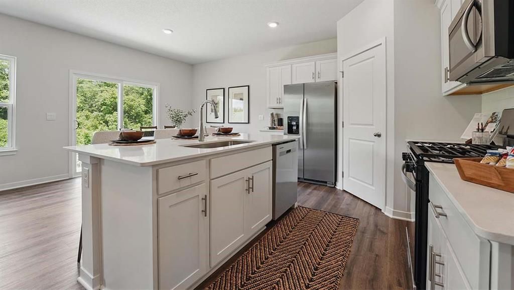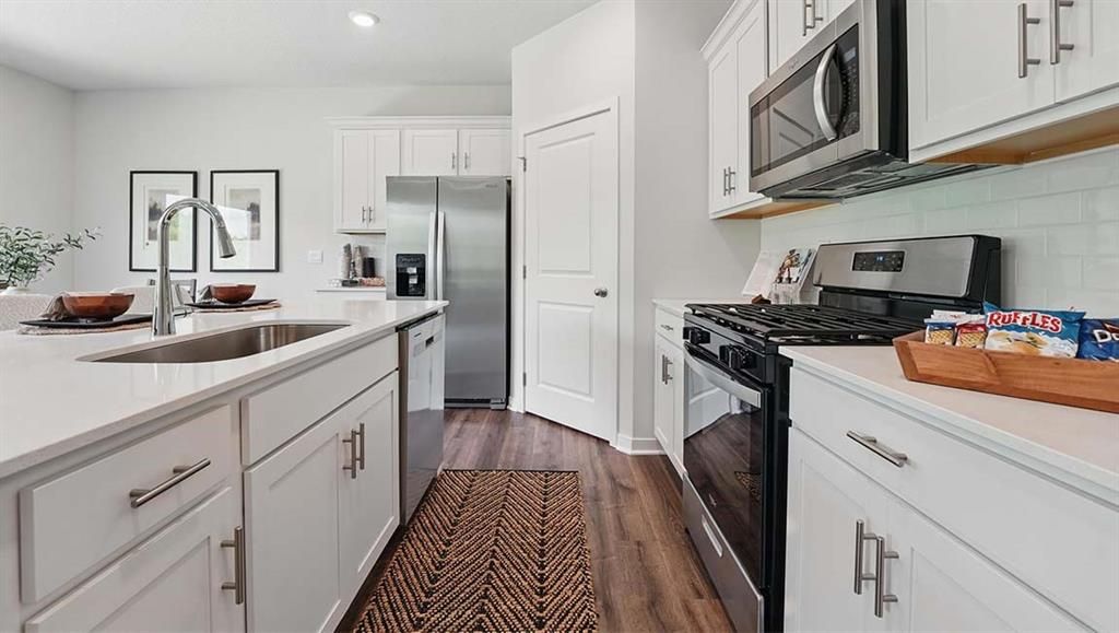 This Home is under construction and estimated completion date is April 10th. The Harmony is a ranch plan featured at Prairie Trace in Gardner, KS near beautiful Kansas City. This is a spacious and modern home designed with open-concept living carefully considered throughout. This home features three bedrooms, two bathrooms, and a two car garage. An inviting foyer greets you upon entering and leads you into the heart of the home. This open plan features a family room, dining room, and kitchen designed with entertaining in mind. The kitchen is equipped with a pantry, 36" cabinets with crown molding, quartz countertops with tile backsplash, stainless steel appliances, and a large island with a breakfast bar, making it perfect for both dining and guests. The luxurious primary suite offers a large walk-in closet and a primary bathroom with dual vanities and plenty of space to get ready. The additional two bedrooms share access to the secondary bathroom on the opposite side of the home offering privacy from the primary suite. With its thoughtful design, this ranch floorplan is the perfect place to call home at Prairie Trace in Gardner, KS near beautiful Kansas City.