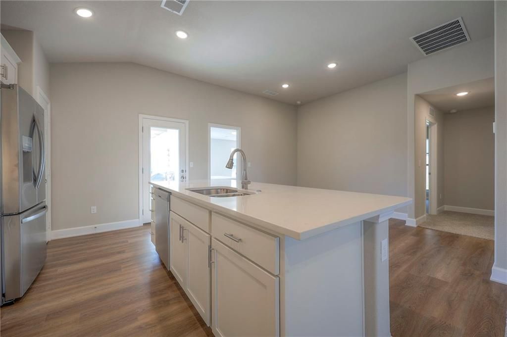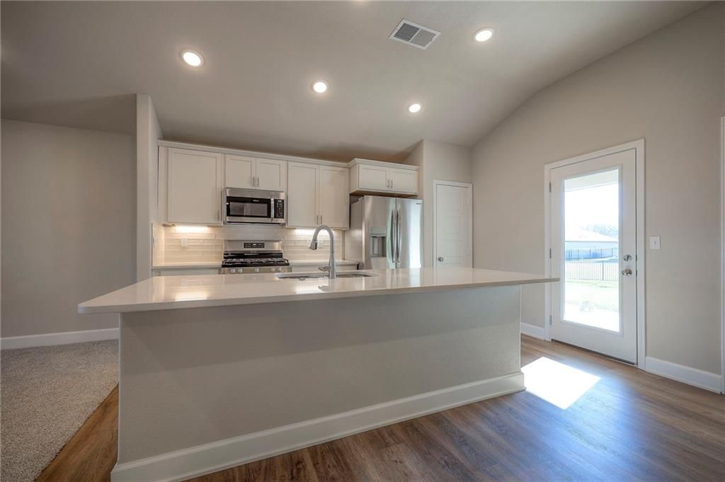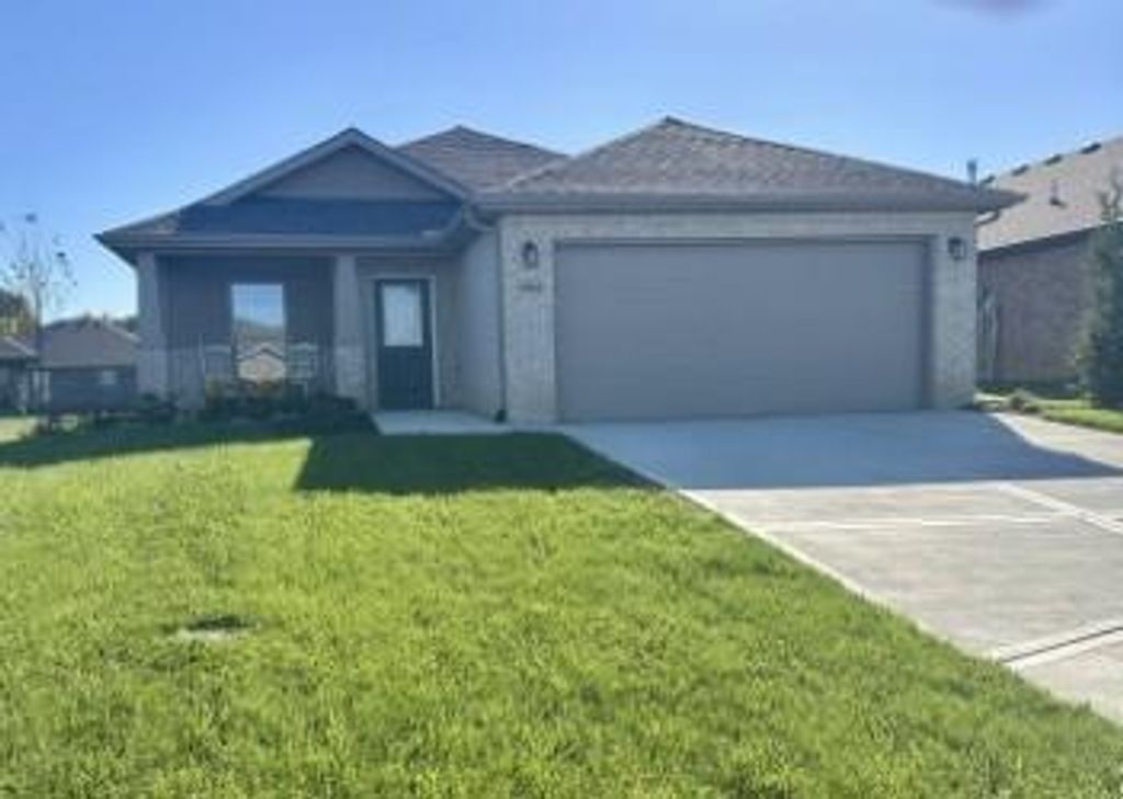 NEW STONE RIDGE DEVELOPMENT: VERY LIGHTLY lived in by single owner occupant since May 2025. Still has new home smell! Single Level Living in this All Brick, Wrapped Facia, and Vinyl Windows for a Low Maintenance Home in a New Construction Community. Exterior features covered front and back porches. Sodded lawn with sprinkler system. Open concept living offers spacious areas for gatherings. Appliances including W/D remain. Owner suite separate from other bedrooms. All the features of new construction homes, LVP, Kitchen Island, Pantry, Neutral color palette. Beautiful Cabinetry! No basement...No problem. Storm shelter access in garage under the garage floor for ultimate protection. Plenty of storage in this home. Quick closing and possession possible! Fantastic De Soto Unified School District!