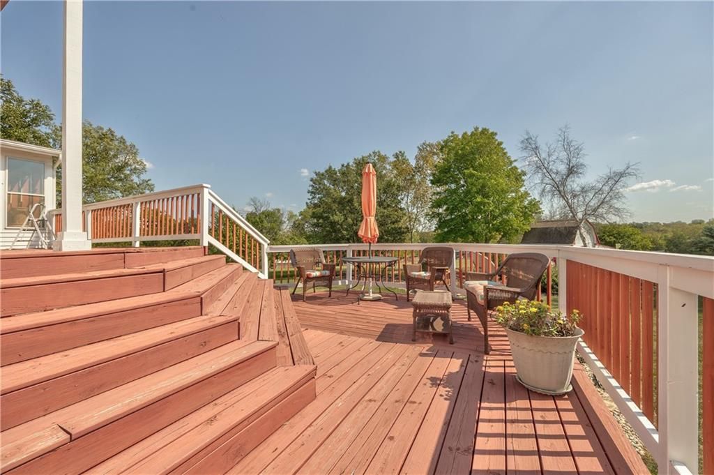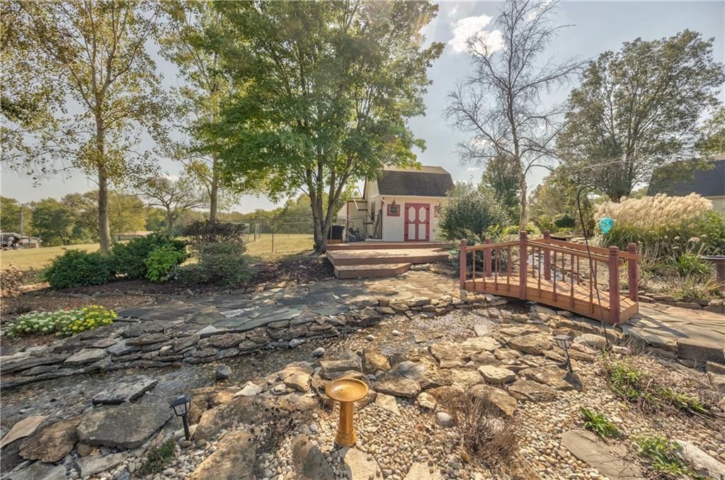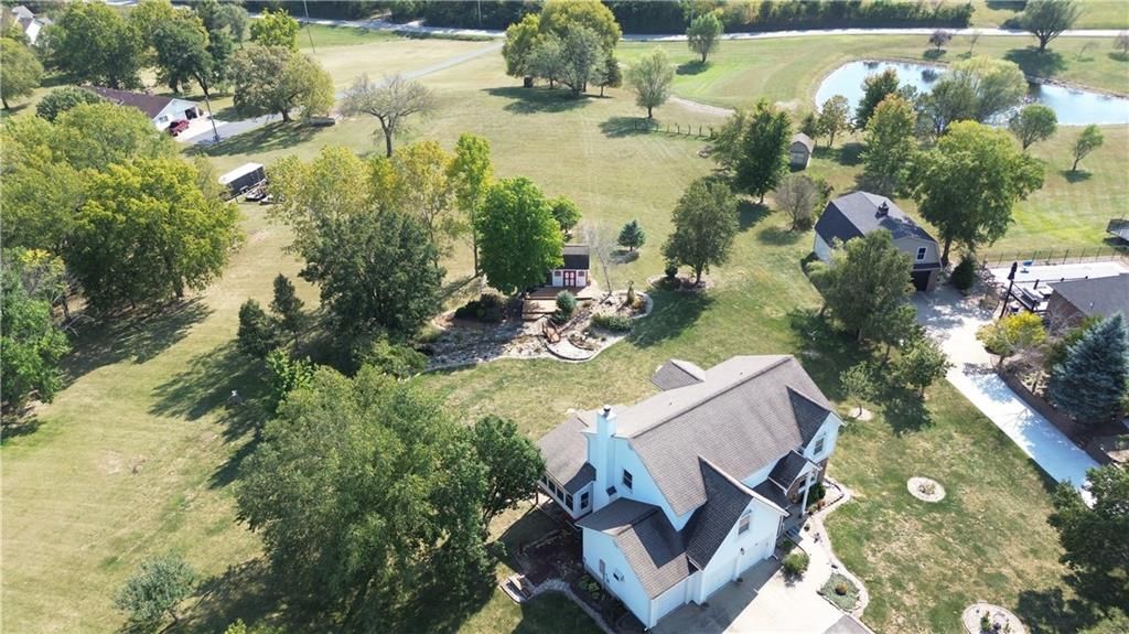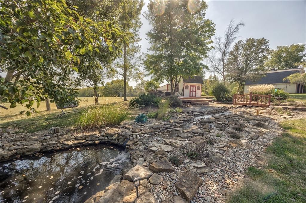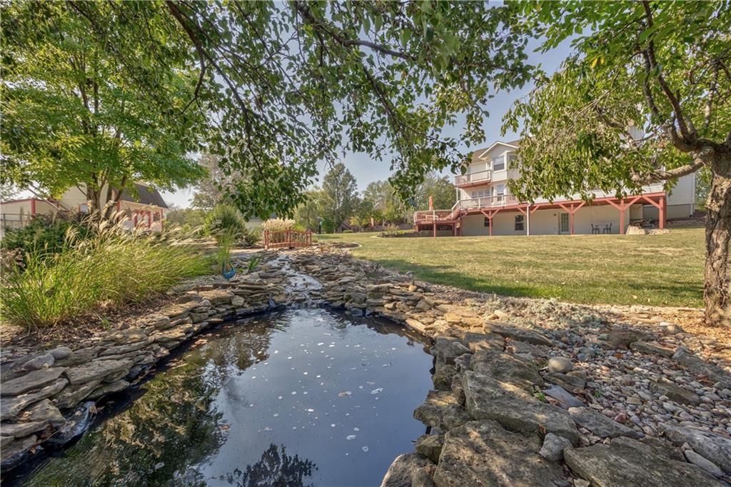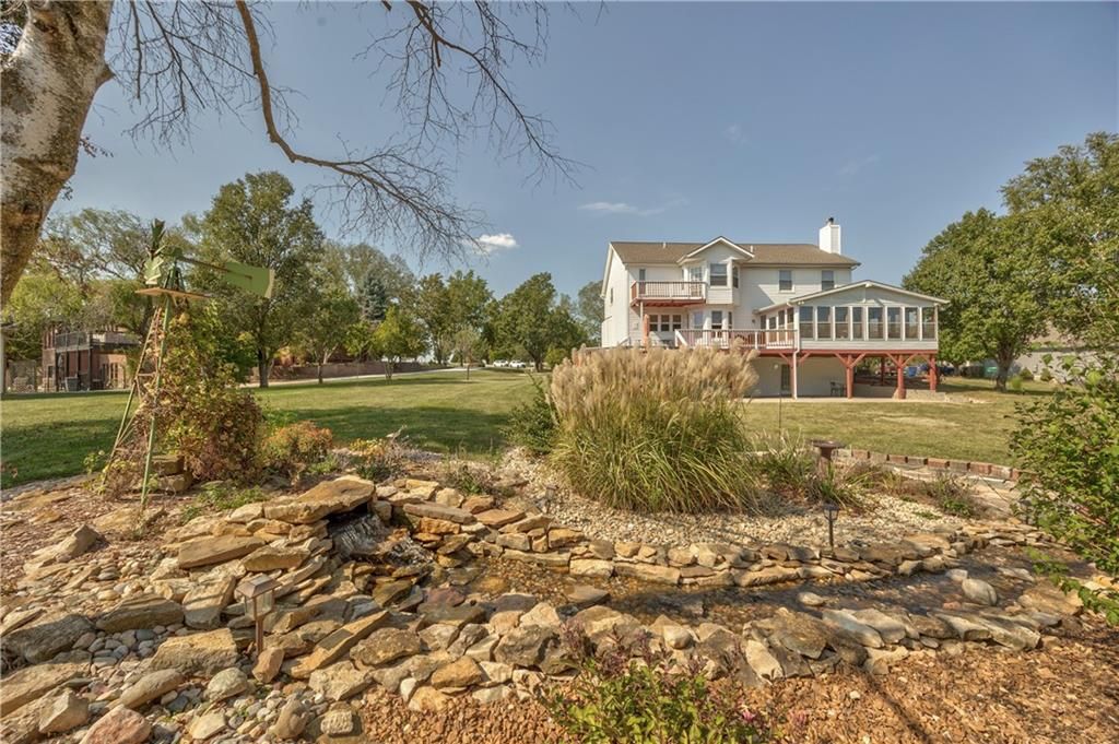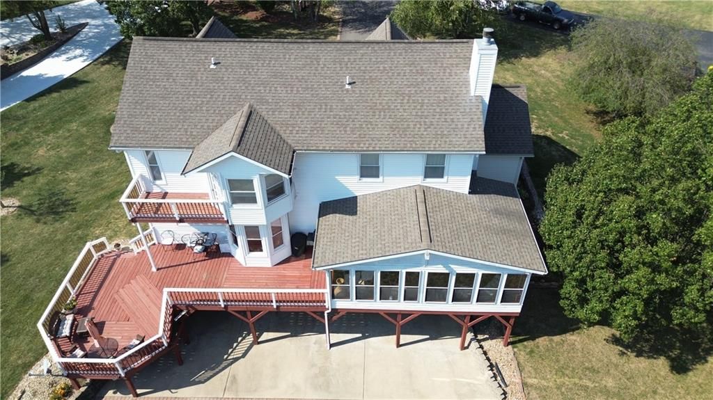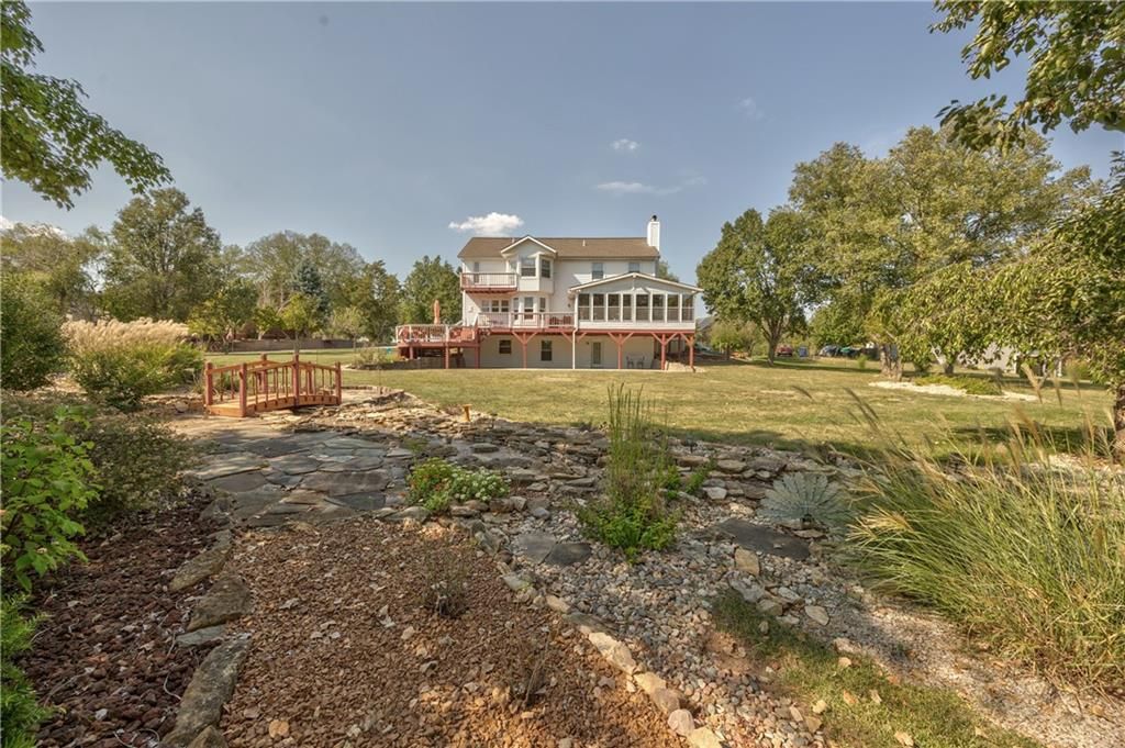 120,000+ price reduction! Welcome to your private country retreat perfectly located on 2.24 serene acres in a cul-de-sac. This beautifully maintained home offers an open-concept layout, with a spacious kitchen featuring granite countertops, stainless steel appliances, a large pantry, and built-in breakfast seating. It flows seamlessly into the family room and formal dining area - perfect for both everyday living and entertaining. Step outside to enjoy the expansive enclosed porch and multi-level deck, ideal for gatherings or relaxing in nature. The beautiful living room is anchored by a wood-burning fireplace for those chilly evenings. The generous primary suite includes a sitting area, walk-in closet, and private martini deck. The luxurious ensuite bath features a whirlpool tub, separate shower, and dual vanities. Bedroom 4 offers a vaulted ceiling and built-in play area. The finished lower level can serve as a large rec room or 5th bedroom with its own walk-in closet and full bath with a soaker tub/shower combo. Enjoy the convenience of dual laundry areas - one on the bedroom level and one in the basement utility room, complete with sink and folding counter. A 3-car garage includes a partially finished bonus space (removable by seller if preferred). The beautifully landscaped yard features mature trees, fruit trees, a tranquil ornamental pond with waterfall, and a large shed with lean-to and overhead storage - ideal for tools, lawn gear, or ATVs. Fully fenced area off the lean-to is perfect for pet lovers. 48" Cub Cadet zero-turn mower and other equipment included with an acceptable offer. Wildlife sightings are common, making this home a true nature lover's dream. Don't miss the opportunity to own this peaceful, well-appointed retreat that blends modern comfort with natural beauty - just minutes from town, yet a world away.