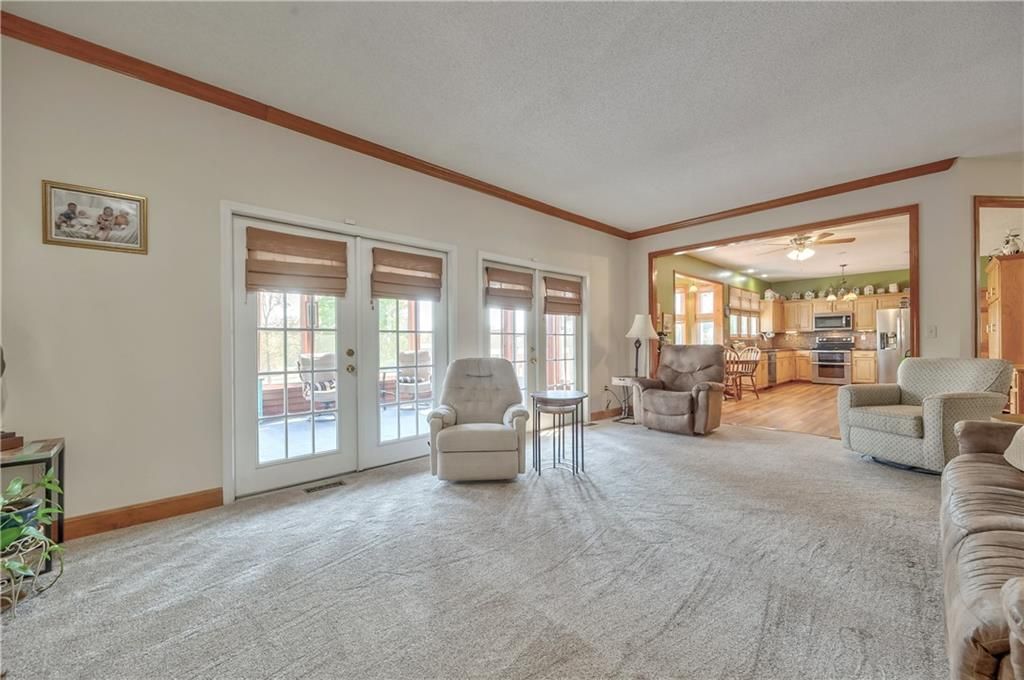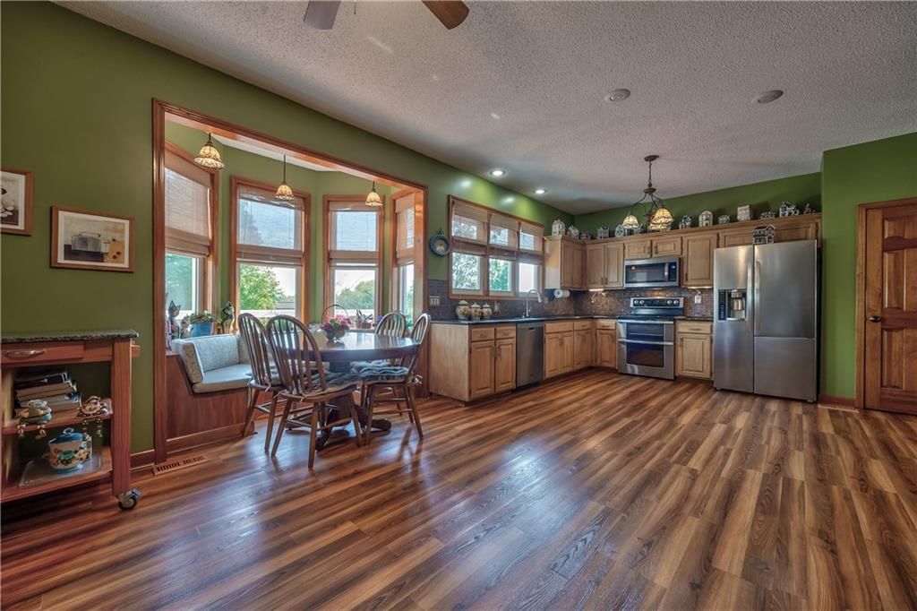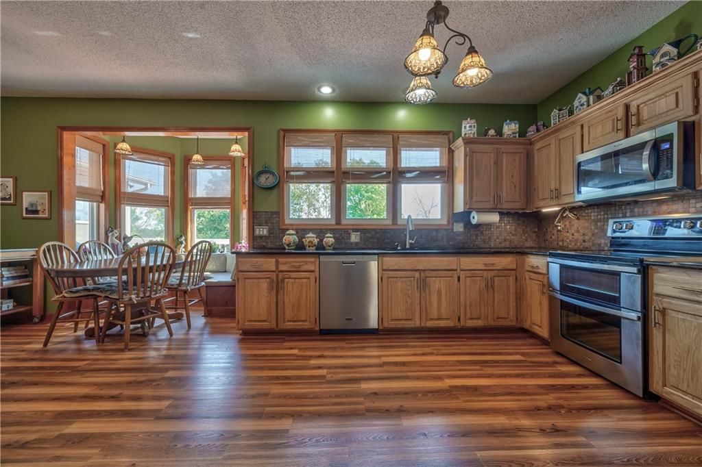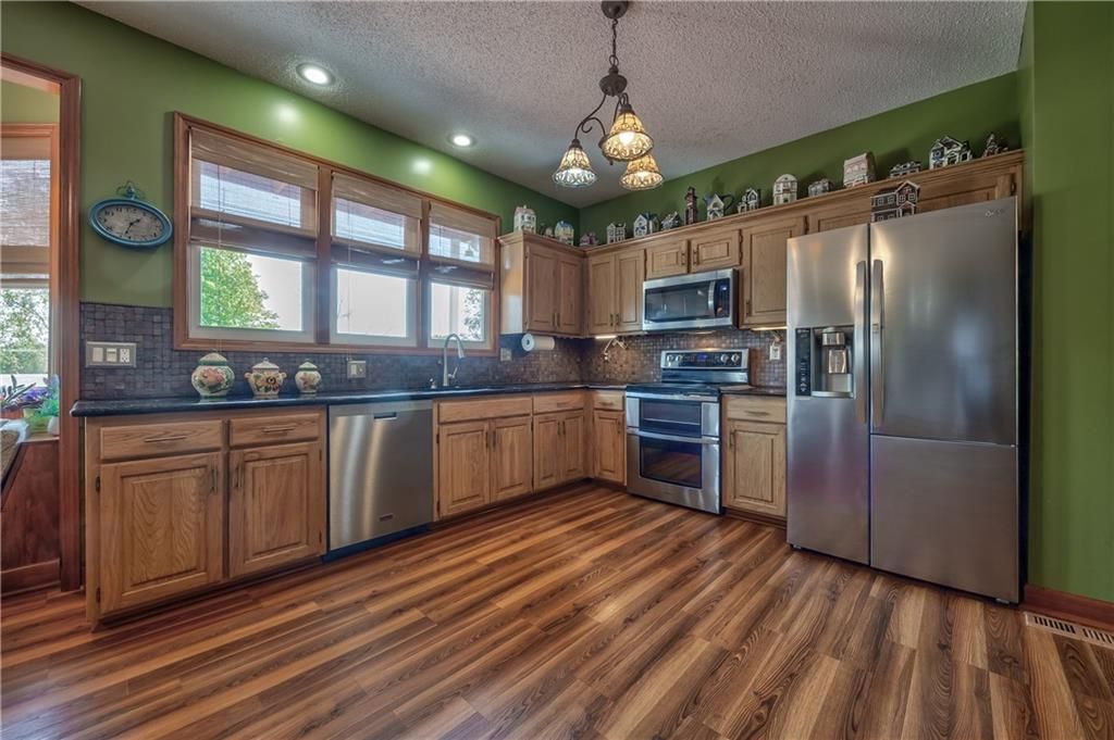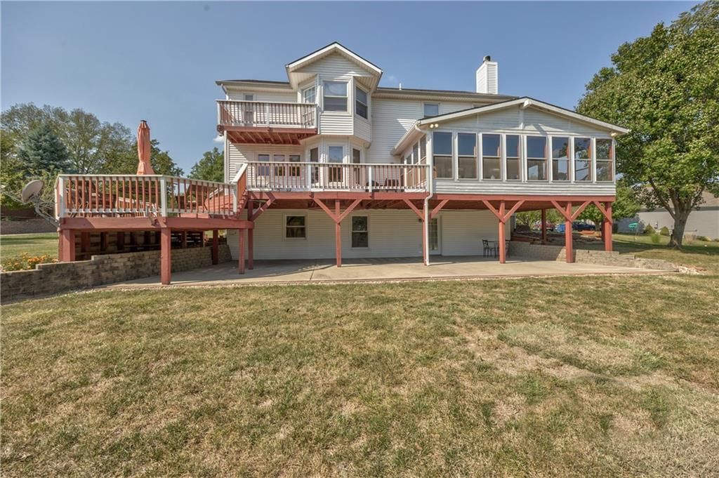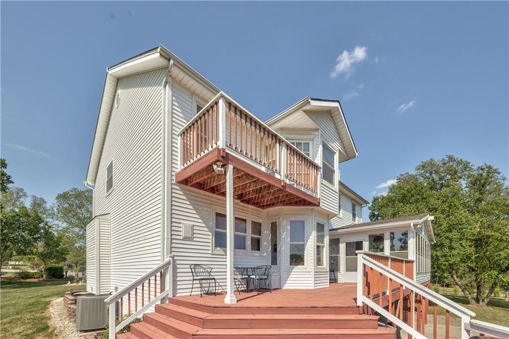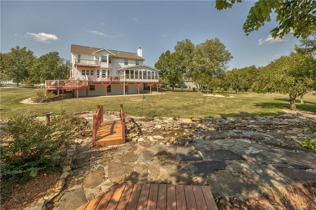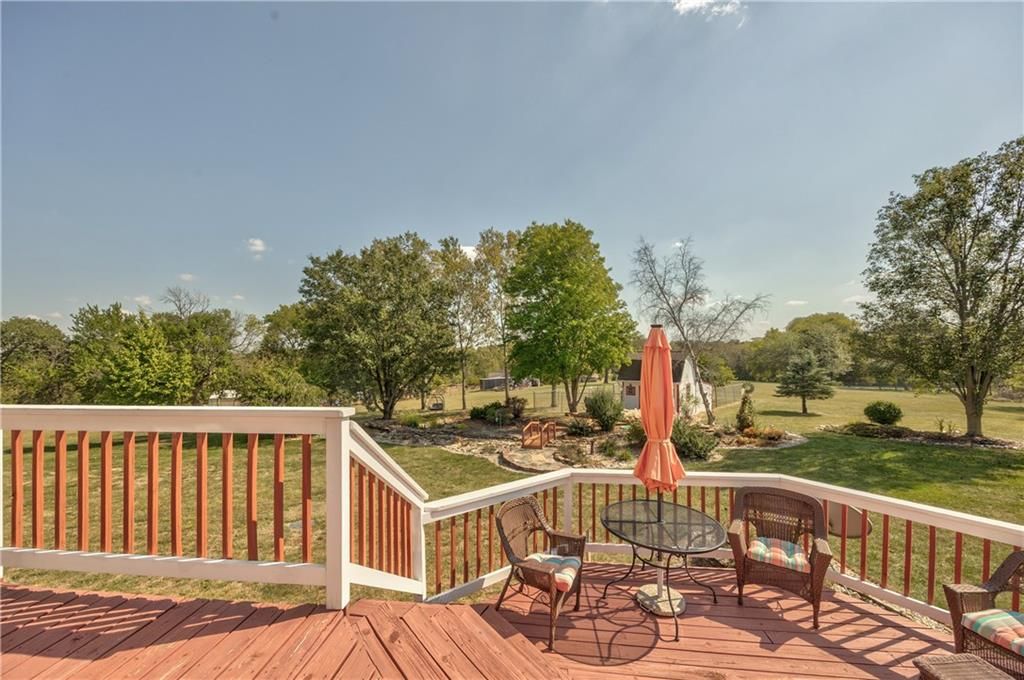 120,000+ price reduction! Welcome to your private country retreat perfectly located on 2.24 serene acres in a cul-de-sac. This beautifully maintained home offers an open-concept layout, with a spacious kitchen featuring granite countertops, stainless steel appliances, a large pantry, and built-in breakfast seating. It flows seamlessly into the family room and formal dining area - perfect for both everyday living and entertaining. Step outside to enjoy the expansive enclosed porch and multi-level deck, ideal for gatherings or relaxing in nature. The beautiful living room is anchored by a wood-burning fireplace for those chilly evenings. The generous primary suite includes a sitting area, walk-in closet, and private martini deck. The luxurious ensuite bath features a whirlpool tub, separate shower, and dual vanities. Bedroom 4 offers a vaulted ceiling and built-in play area. The finished lower level can serve as a large rec room or 5th bedroom with its own walk-in closet and full bath with a soaker tub/shower combo. Enjoy the convenience of dual laundry areas - one on the bedroom level and one in the basement utility room, complete with sink and folding counter. A 3-car garage includes a partially finished bonus space (removable by seller if preferred). The beautifully landscaped yard features mature trees, fruit trees, a tranquil ornamental pond with waterfall, and a large shed with lean-to and overhead storage - ideal for tools, lawn gear, or ATVs. Fully fenced area off the lean-to is perfect for pet lovers. 48" Cub Cadet zero-turn mower and other equipment included with an acceptable offer. Wildlife sightings are common, making this home a true nature lover's dream. Don't miss the opportunity to own this peaceful, well-appointed retreat that blends modern comfort with natural beauty - just minutes from town, yet a world away.