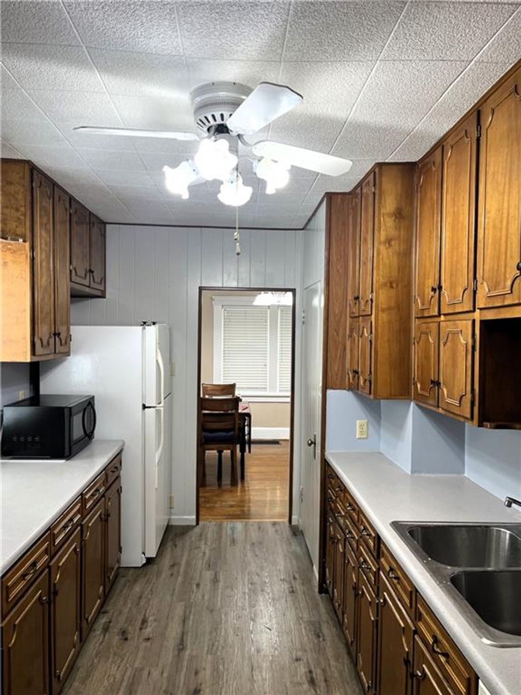 Lots of Love put into this 2bdrm, 1bath home with a possible 3rd non-conventional bdrm in the basement. It has off street parking and a 1 car basement attached garage. Refinished hardwood floors with a double coat of varnish in the living room and 2 bedrooms on main level. New vinyl flooring in the kitchen and bathroom. A very large clean basement! You can put washer and dryer on the main level or in the basement. Move in ready with all appliances staying, and a beautiful rebuilt deck on the back of the home to enjoy!