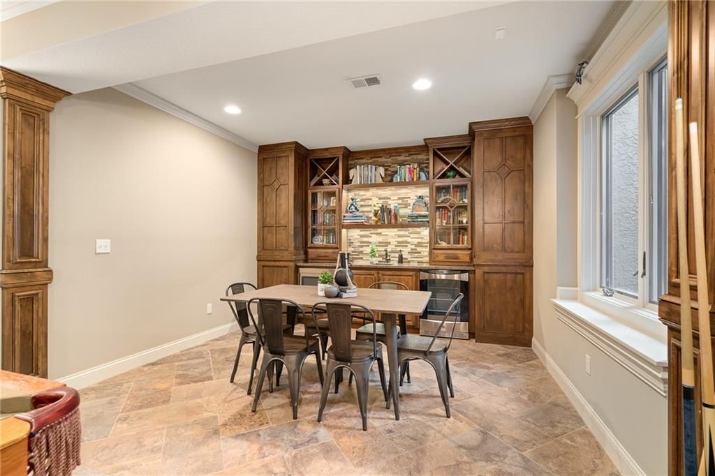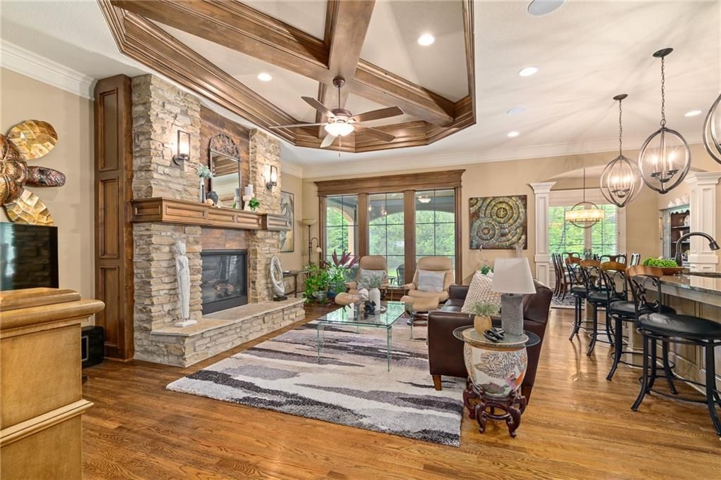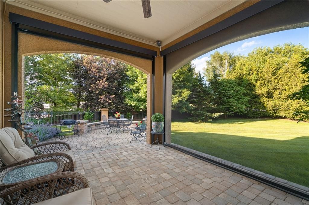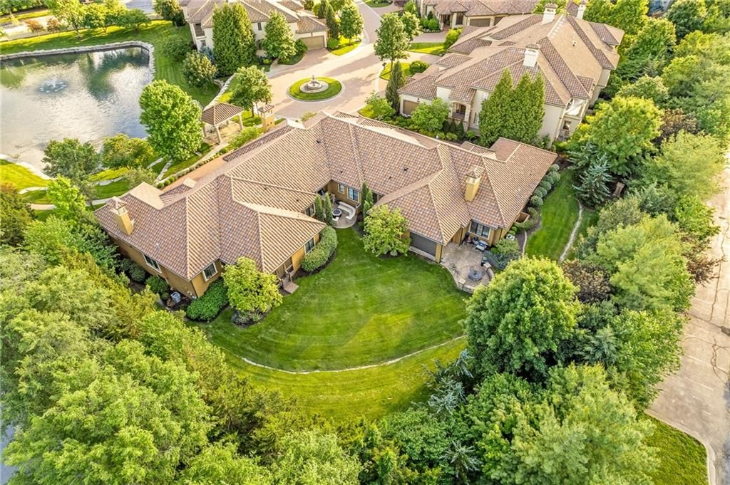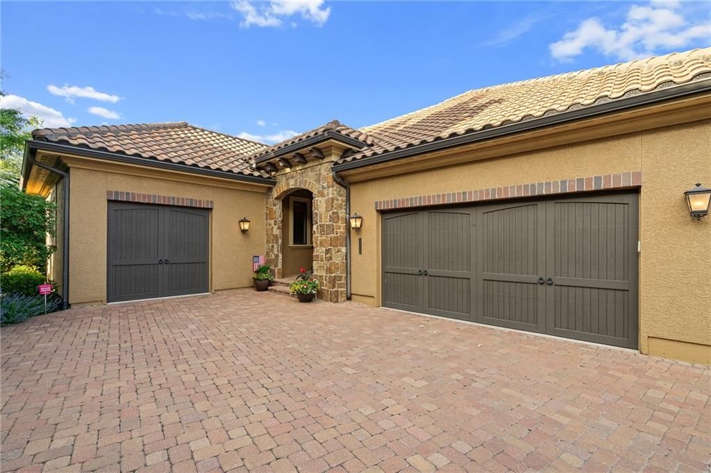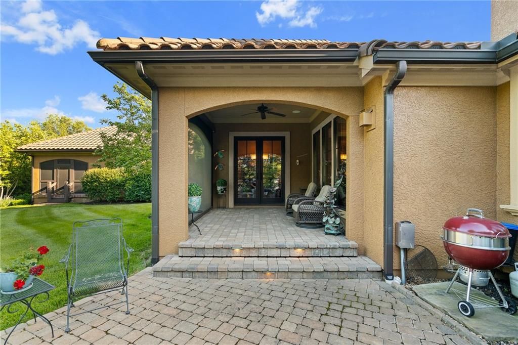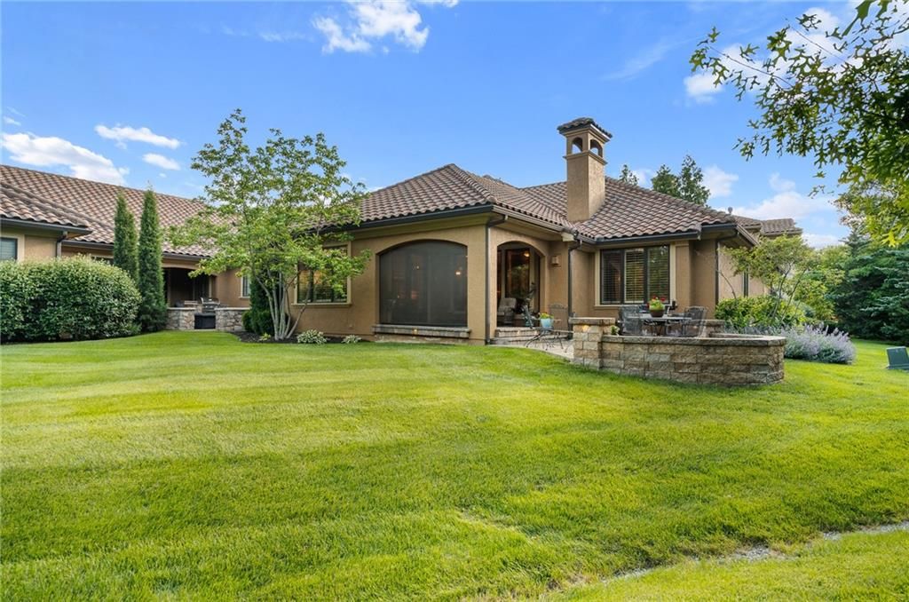 Luxury Reverse 1.5-Story Home in Prestigious Tuscan Piazza - Leawood! You have to see this home to truly appreciate the craftsmanship. Welcome to effortless elegance in one of Leawood's most exclusive maintenance-FREE communities. This meticulously maintained 4-bed, 4-bath reverse 1.5-story home offers refined living and artistry construction by Tom French with attention to detail throughout. Enjoy main-level living with a spacious primary suite featuring a spa-like bath, custom built-ins, whirlpool tub, oversized walk-in closet, and direct laundry access. An additional main-floor bedroom and full bath accommodate guests or a home office with ease. The open-concept design is ideal for both daily living and entertaining - highlighted by TALL wooden entry doors, rich hardwood floors, vaulted tray ceilings with beam detail, custom millwork, and a chef's kitchen with quartz island, gas cooktop, and wet bar area. A sun-drenched dining room opens to a paver patio with plenty of space to grill and entertain along with retractable screens on the covered patio allowing you to have a screened in porch or open-air patio -- all at the touch of a button - perfect for private outdoor living. The lower level offers a sophisticated retreat with a second fireplace, full wet bar, rec space, two bedrooms, TWO full bathrooms, and unfinished area that is set up with a workbench and plenty of storage. A rare 3-car garage includes epoxy floors, extra insulation, and a climate-controlled single bay - perfect for a workshop, studio, craft area, or collector vehicle. Maintenance-FREE living with mature landscaping, privacy, and unmatched convenience. Just lock and leave with confidence - luxury, lifestyle, and location come together seamlessly. THIS IS THE ONE!