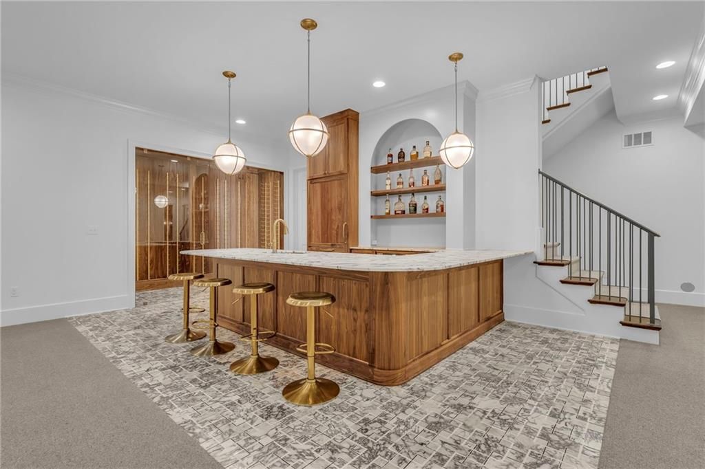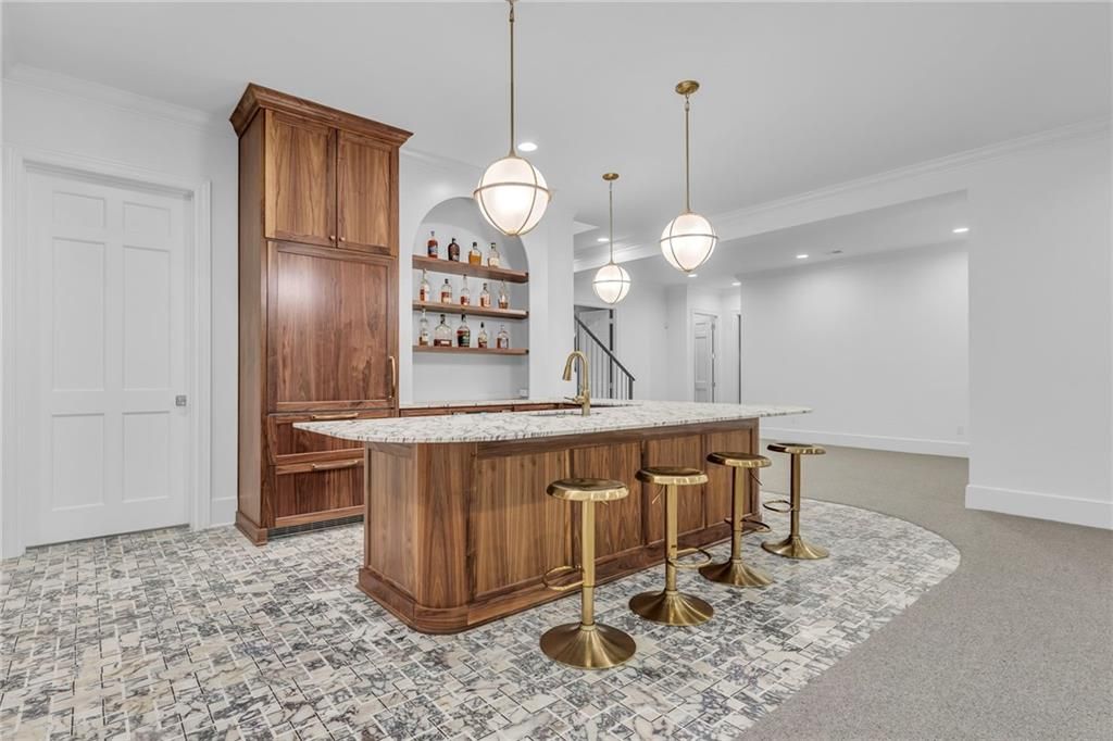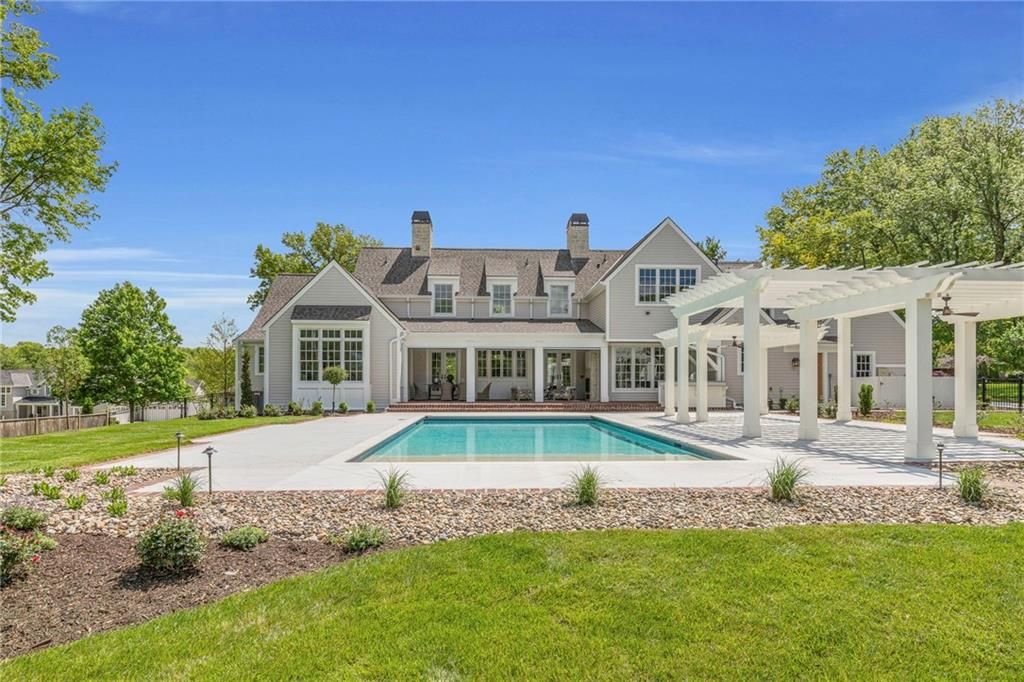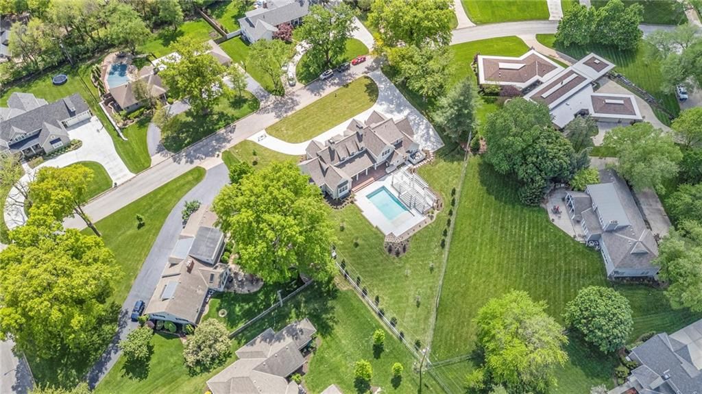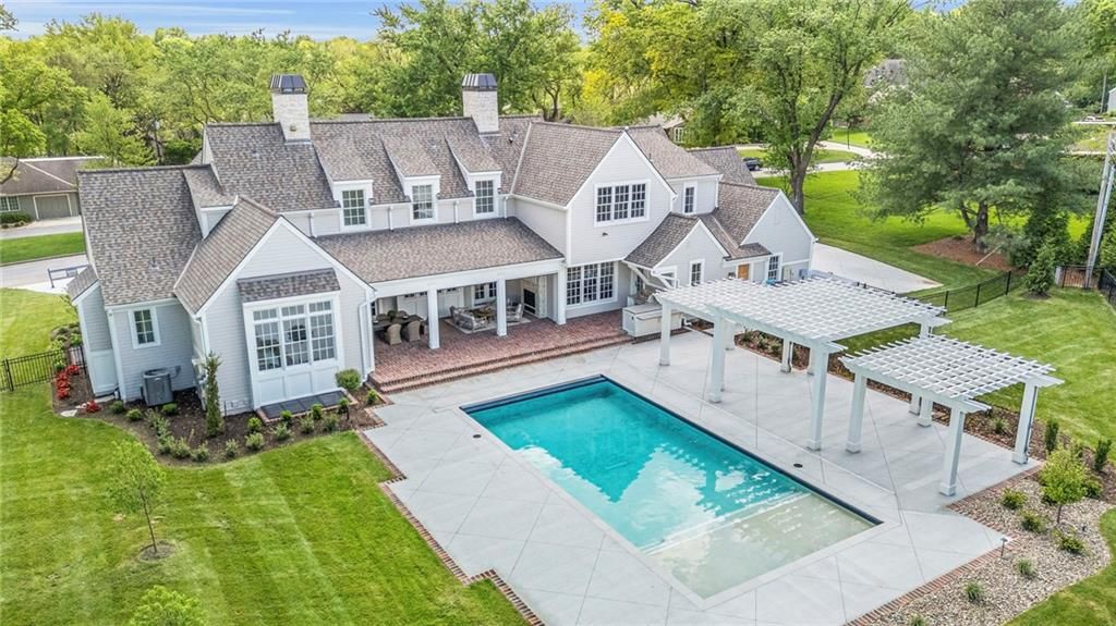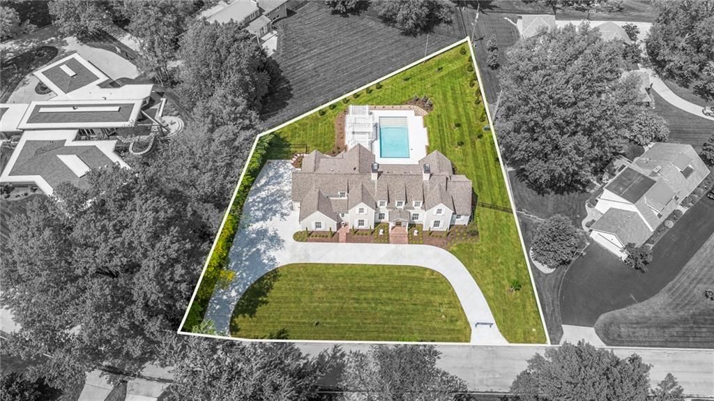 Exuding luxury in every way possible, feast your eyes on this one-of-a-kind stately home in Old Leawood nestled on almost an acre lot with a full front circle drive. Offering six bedrooms, seven full and two half bathrooms, true 10-foot lower-level ceilings, and a 4-car garage, no wish list feature has been missed. The main floor is designed for welcoming guests as it flows from the living room to the dining room, and then to an expansive kitchen with a walk-in pantry. Step outside to a covered porch with every host's dream outdoor grilling kitchen, and finally to the sprawling pool and pool deck. Your new home will automatically become the "hang out" house, especially during the summer months. The main floor also features a tranquil and roomy primary ensuite, a dedicated laundry room, a private study, a powder bath, plus a full bath for your pool guests. This is an entertainer's ideal layout for hosting family gatherings and dinner parties! On the second level, you will find four additional bedrooms, all with walk-in closets and their own private bathrooms. This level also has it's own dedicated laundry room as well as a large study/play area for homework and playing/gaming. In the lower level, the sixth bedroom ensuite is perfect for guests seeking a bit of privacy. A home gym, yoga room, and large family room with a stunning wet bar make this level exceptional on its own. And last but certainly not least, you will be the envy of the neighborhood when the neighbors see your state-of-the-art media room with stadium seating. Luxury can be yours to enjoy, as this home is ready for it's New Owners!