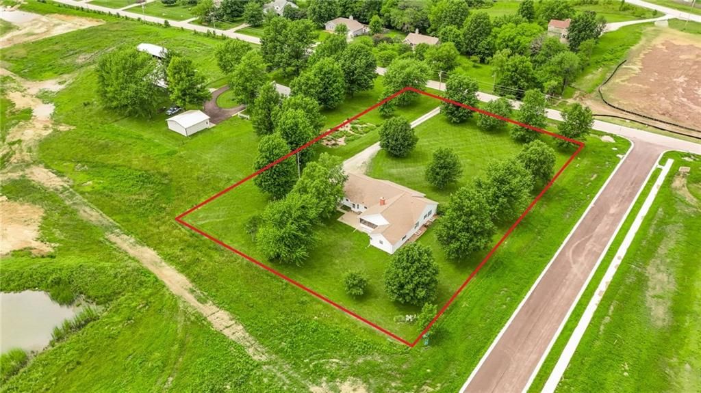 Custom built, ranch style property with main-level living located on 1.77ac in Baldwin's new Trail View Subdivision. Featuring 3bdrm, 3.5bath, with plenty of space to add 2+ more bedrooms & additional living space in the basement!! Highlights include: flawless hardwood flooring, wood burning stove, screened-in patio, spacious bedrooms, beautiful views/natural light, plus so much room to expand! Large family room, open to the kitchen, has beautiful built-ins, wood burning stove fireplace, & access to the cozy screened-in porch with views of the Trail View pond. The kitchen features ample counter space & cabinetry, as well as an adorable breakfast nook or office space, with amazing natural light. A 2nd dining area is located off the kitchen, perfect for entertaining & large gatherings. The main level has 3bdrms each with beautiful hardwood flooring. The primary bdrm complete with an ensuite bathroom, has 2 separate vanities, a separate shower & soaking tub, and 2 large walk-in closets. The laundry room has additional storage space & is conveniently located off of the garage, along with a bathroom & access to the backyard. The expansive basement is partially finished with an open area perfect for use as a rec or media room, as well as an area to create a 4th or 5th bdrm, along with plenty of room to expand in the spacious unfinished storage areas. The basement also has a separate 2nd entrance with a walk-up to the backyard, as well a huge concrete safe room. The acreage has large, mature trees, a beautiful flower garden, stunning sunrise & sunset views, & backs to neighboring green space & pond. Step onto the adorable front porch complete with porch swing perfect for relaxing after a long day. For those who love the peaceful acreage, while still being perfectly located within walking distance to quaint downtown Baldwin City & Baker University, this property has it all! Located within an easy commute to KC, Gardner, Lawrence, Ottawa, & surrounding. Motivated seller.