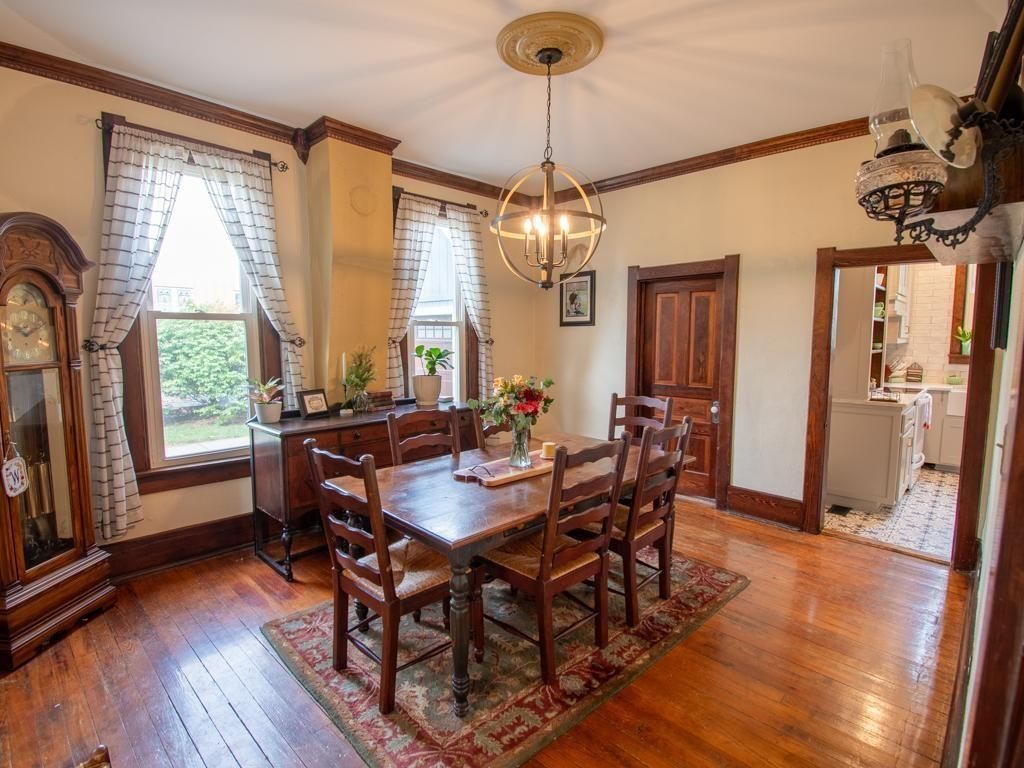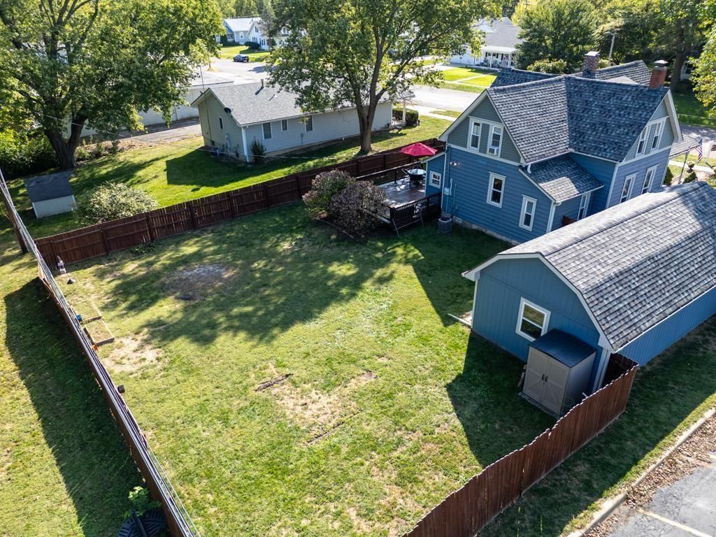 Step into this beautifully renovated century-old gem- where timeless character and well-built craftsmanship blend seamlessly with modern comfort. Many years of thoughtful work have gone into a complete renovation of this Victorian home - including new electrical, plumbing, whole-home water softener, new roof, and metal siding! An 18'x36' detached shop/garage was built in 2014 with longevity in mind. The foundation consists of deep footers, ensuring a solid foundation. The shop was supplied with a new electrical panel and designed as a wood shop with large amp outlets and designated circuits for multiple tools to run simultaneously. Above, you will find extensive attic storage. This shop was custom-built to accommodate any woodworker or hobbyist while allowing ample parking for a vehicle. The 3-bedroom, 2 full bath home offers nearly 1800 sqft of living space! The main level features a spacious living room, dining room, den/study, full bathroom, and a gorgeous kitchen straight from the pages of Southern Living! The kitchen boasts stunning custom cabinets, quartz countertops, luxe white appliances, tiled floors, a large pantry, a farmhouse sink, and much more! A convenient pocket door separates the kitchen from the bonus room. A laundry/mud room is conveniently located just off the kitchen. Tall 10' ceilings throughout the first floor add to the home's historic character, as well as the stained wood floors and period-style trim. Upstairs, you'll find three nice-sized bedrooms and a second full bathroom. You'll enjoy the deck space that overlooks the large backyard; and a wood privacy fence around the back of the property adds further appeal to this charming home in the heart of Lawson. Within walking distance of local schools and centrally located in a historic part of Lawson, you are surrounded by several restored homes in a beautiful, quiet neighborhood.