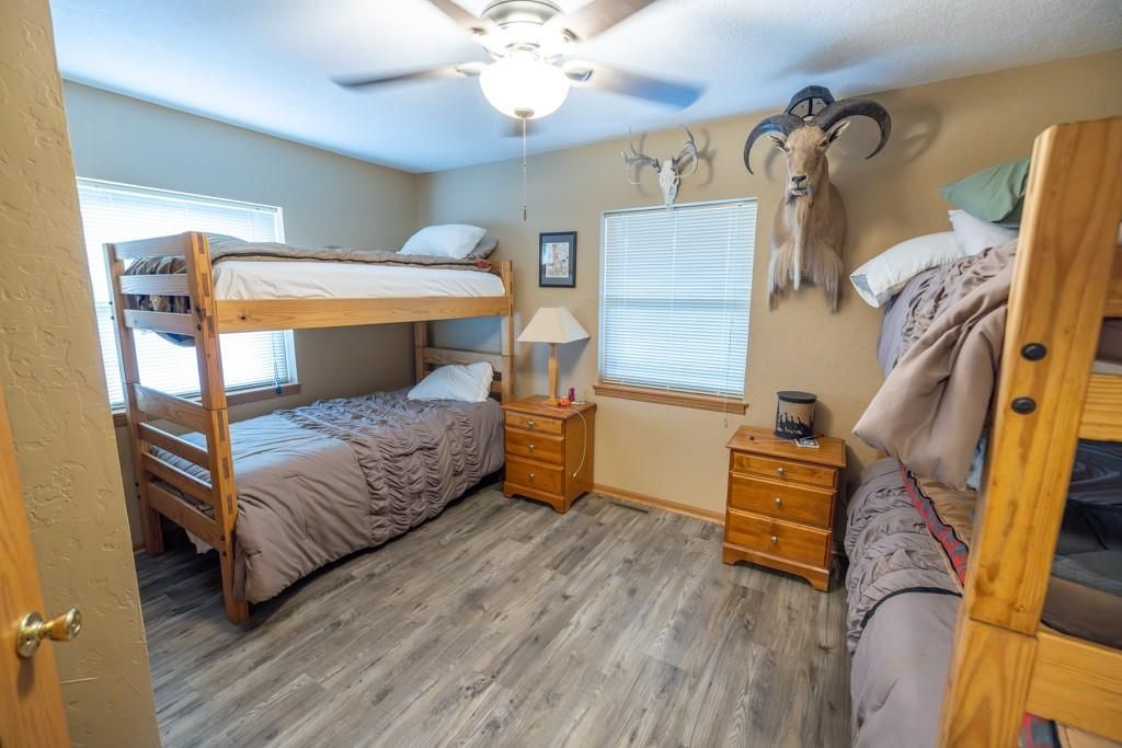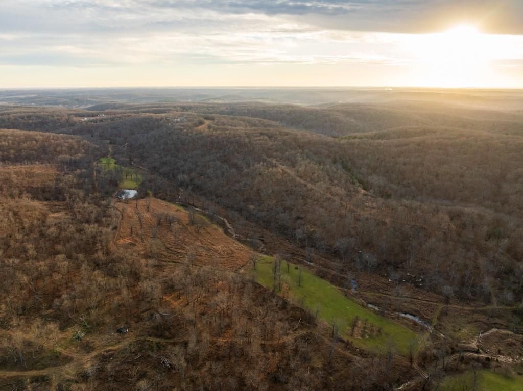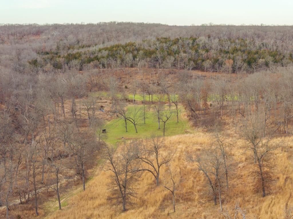 Located just east of Osceola, in the heart of St. Clair County, Missouri, lies this truly world-class 485.1 acre hunting and recreational holding. it's evident that years of thoughtful management, pride of ownership, and intentional improvement have gone into creating a premier whitetail and turkey hunting sanctuary. Featuring the perfect balance of gently rolling timbered ridges, fertile creek bottoms, open ridgetops with an abundance of water throughout. Two scenic, rock-bottom creeks wind through the heart of the property and create the perfect terrain and layout for this wildlife paradise. Fifteen established food plots are strategically placed throughout the farm. Seven perfectly positioned elevated blinds with proven locations create a turnkey setup for serious hunters. One of the standout features is the extensive trail system with over 10 miles of maintained trails.The land management and wildlife history on this property is exceptional, with active timber management, warm season grass plantings, fertlized foodplots, chestnut and fruit tree orchards and much more. Adding to its long-term value and seclusion, the farm adjoins a 3,000+ acre Boy Scouts of America Camp along the northern boundary, offering a massive buffer of protected land. For additional recreation, Truman Lake is just a short drive to the west.The improvements are well thought out and ideal for hosting family and friends. The cabin features two large bedrooms and two full bathrooms, along with a comfortable living room, kitchen, and covered front and back porches - all under a durable metal roof. The large outbuilding is equally impressive, offering a spacious workshop, equipment storage, and well-designed living quarters that include a locker room, bunkroom, full bathroom, kitchen, and laundry. Access is excellent, with frontage on State Highway 82 and a well maintained county road. Road frontage is fully fenced with multiple gated entrances providing great access to the property.
