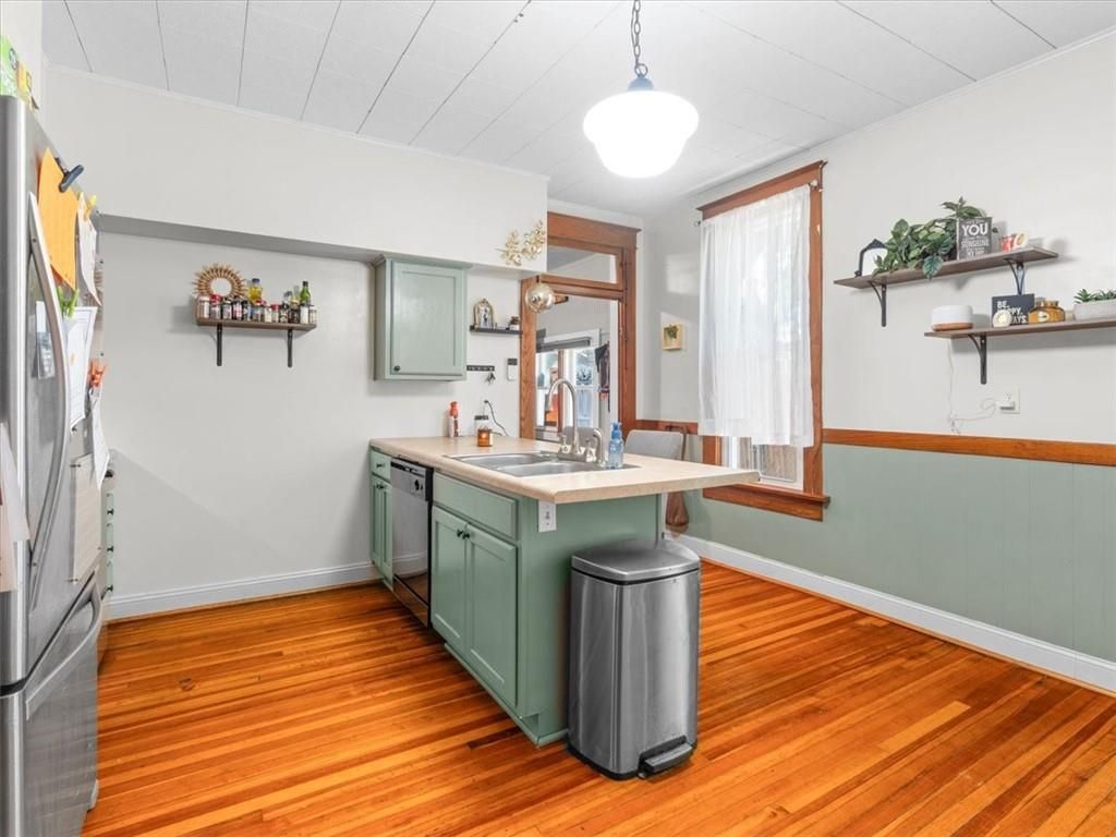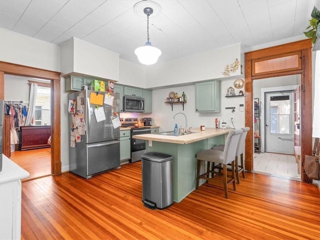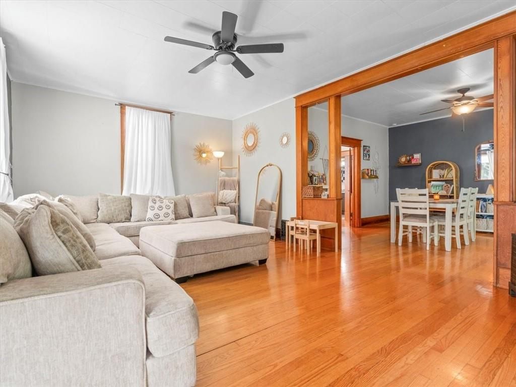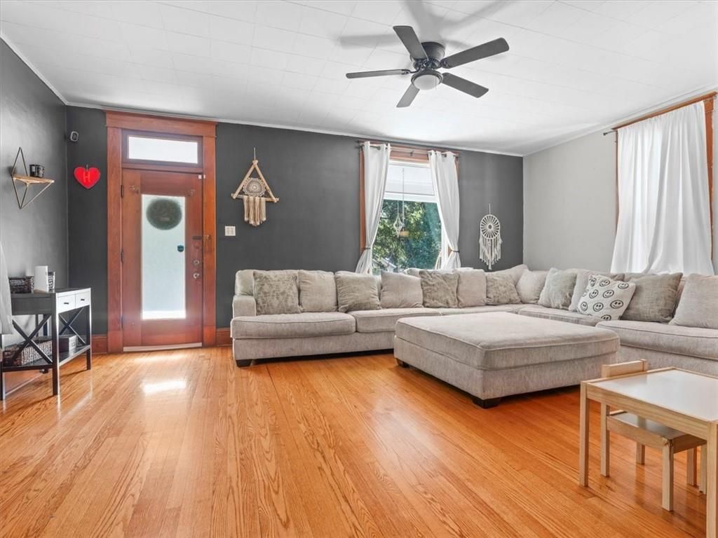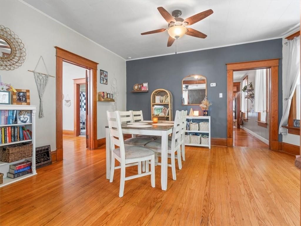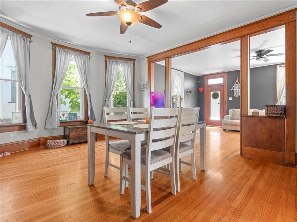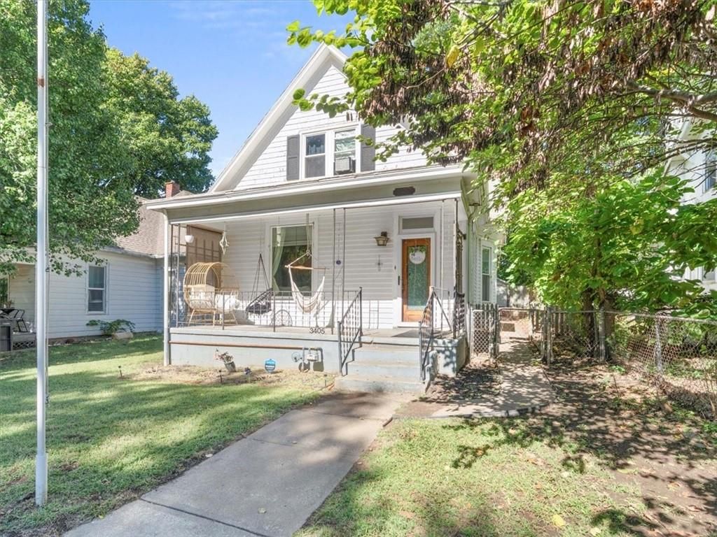 Classic charm meets everyday convenience in this inviting home filled with character. A large covered front porch welcomes you into spacious, light-filled rooms, including a comfortable living room and formal dining area. With three bedrooms, one bath, and main-floor laundry, the layout offers easy functionality. Outside, you'll find a fenced yard and a detached garage - ideal for storage or hobby space. This property combines vintage warmth with modern comfort in a great central location.