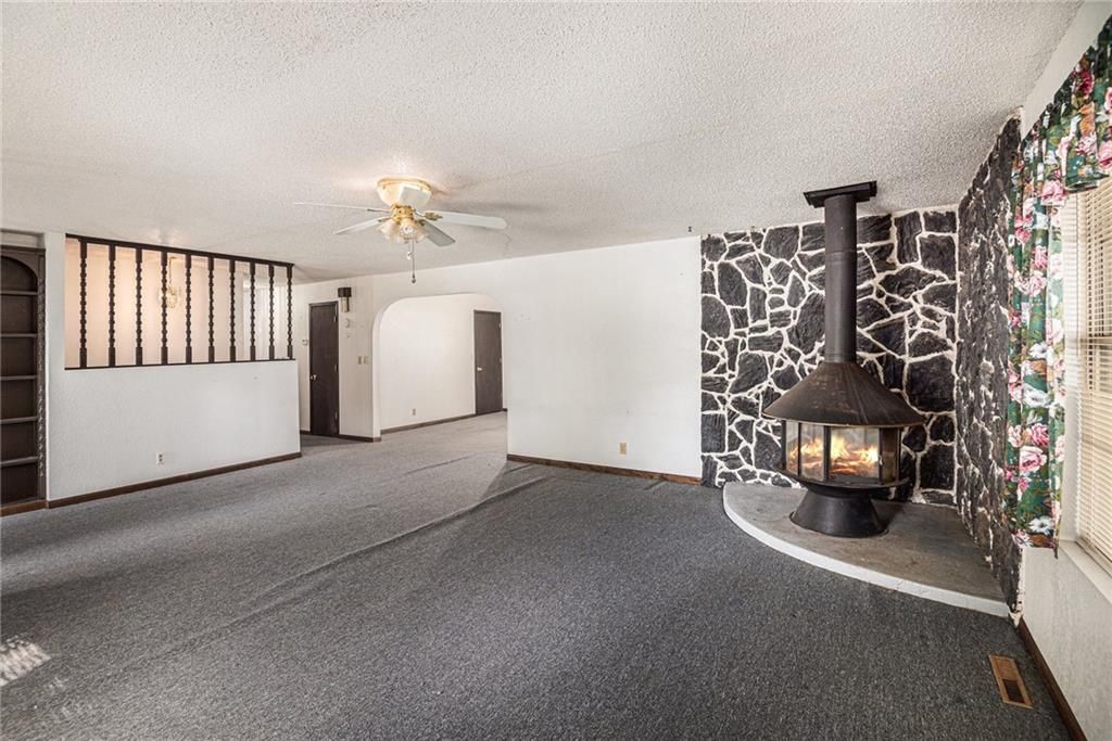 4 bedroom, 3 bathroom ranch home with finished walk out basement on just shy of a half acre lot. Greeted into a large living room with wood burning stove. Living room open to a dining room and kitchen with island, dishwasher, stove, fridge, and laundry hook ups. Primary bedroom with en-suite. 3 additional bedrooms and full bathroom on main level. Lower level hosts a family room, rec room with fireplace, full bathroom, wet bar area, and a storage room. One car garage with entry on back of home. Large front porch. Wrap around covered deck with access from the kitchen and primary bedroom.