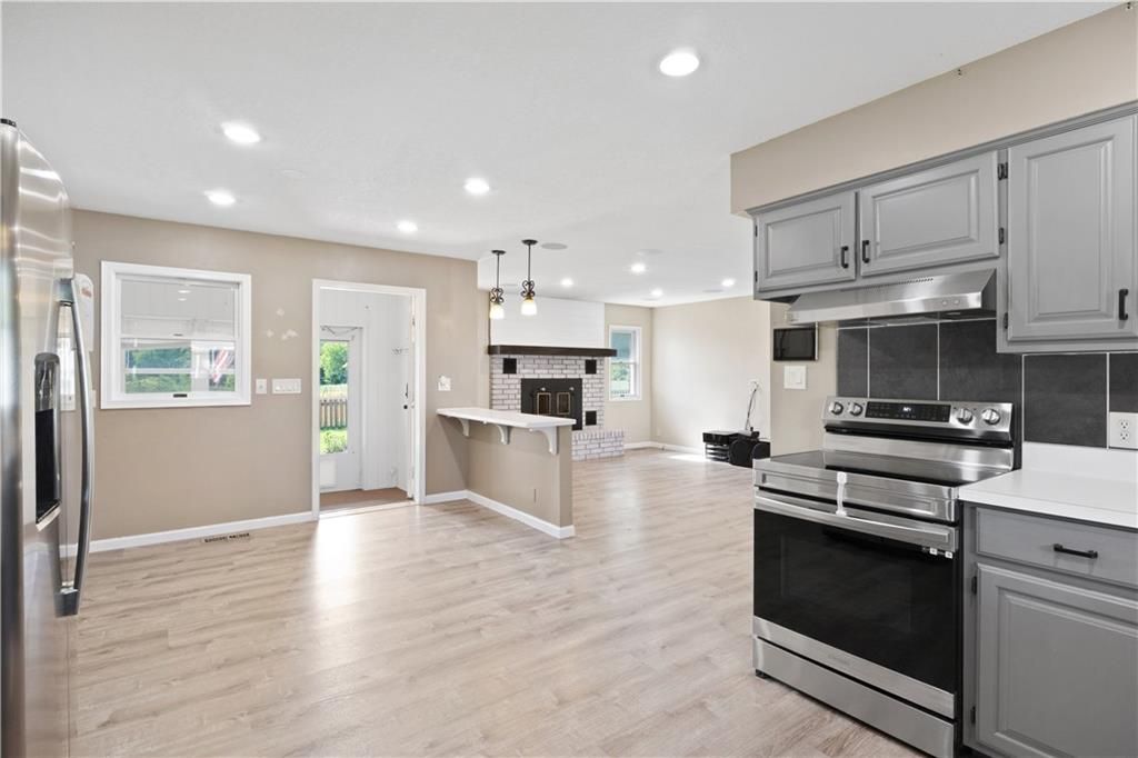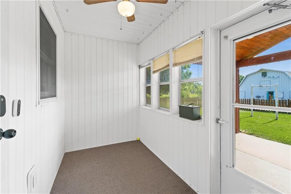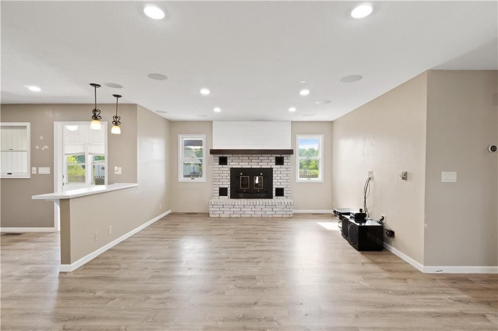 Smart, Stylish & Set on 4 Acres +/- Just on the edge of Town! This all-electric brick home blends modern convenience with rural charm. Inside, you'll find 3 bedrooms, 2 bathrooms, and a spacious open-concept layout featuring a cozy wood-burning fireplace with a brick surround and blower fan. The primary suite includes an en suite bath, and one of the secondary bedrooms is currently used as an office. High-tech upgrades include a full URC Total Control Smart System with Alexa/Google integration, motorized blinds in the kitchen and primary bedroom, LED color-changing lights, a whole-home sound system, and updated LVP flooring throughout the main areas. The kitchen-dining combo is highlighted by a brand-new tile backsplash and functional breakfast bar. Additional perks include a walk-in shower, main floor laundry, mudroom, sunroom, and geothermal heating and cooling for year-round comfort and efficiency. Plus a BRAND NEW ROOF! Outside, enjoy a fenced backyard with a concrete patio wired for surround sound and a nearby fire pit - perfect for relaxing or entertaining. A century barn offers endless versatility with a refinished upper level, workshop, grooming space, livestock shelter, and fenced pasture with automatic waterer and electric. The oversized side-entry garage includes extra storage space and a gravel parking pad. With 4 acres, wet weather creek, and pipe/steel fencing, this property is ideal for those seeking space, smart living, and a rural lifestyle - just a short drive from town.