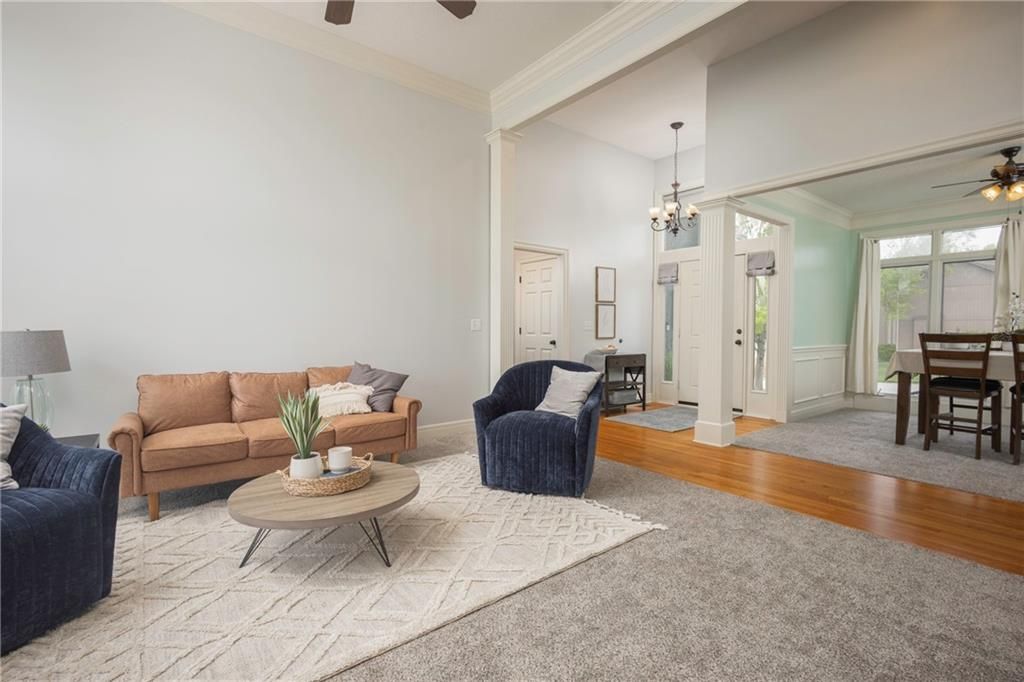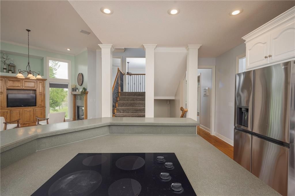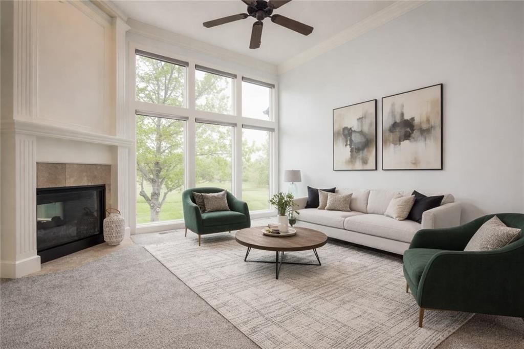 Stunning golf course living awaits in this spacious 5-bedroom, 4.5-bath home perfectly positioned along the fairway. Designed for both everyday comfort and entertaining, the open-concept kitchen flows seamlessly into the hearth room, where expansive floor-to-ceiling windows frame beautiful golf course views and flood the home with natural light. The main level features a desirable primary suite with a large walk-in closet and a spa-like bathroom complete with a jetted tub, along with the convenience of main-level laundry. Step outside to the covered deck and enjoy peaceful mornings and evenings overlooking the course. The finished lower level offers exceptional versatility with a kitchenette, ample storage, and plenty of space for a home gym, recreation area, or additional entertaining. A three-car garage provides room for vehicles and hobbies, while in-ground sprinklers keep the yard looking pristine. With generous living spaces, thoughtful upgrades, and unbeatable golf course views, this home offers the perfect blend of luxury, functionality, and location.
