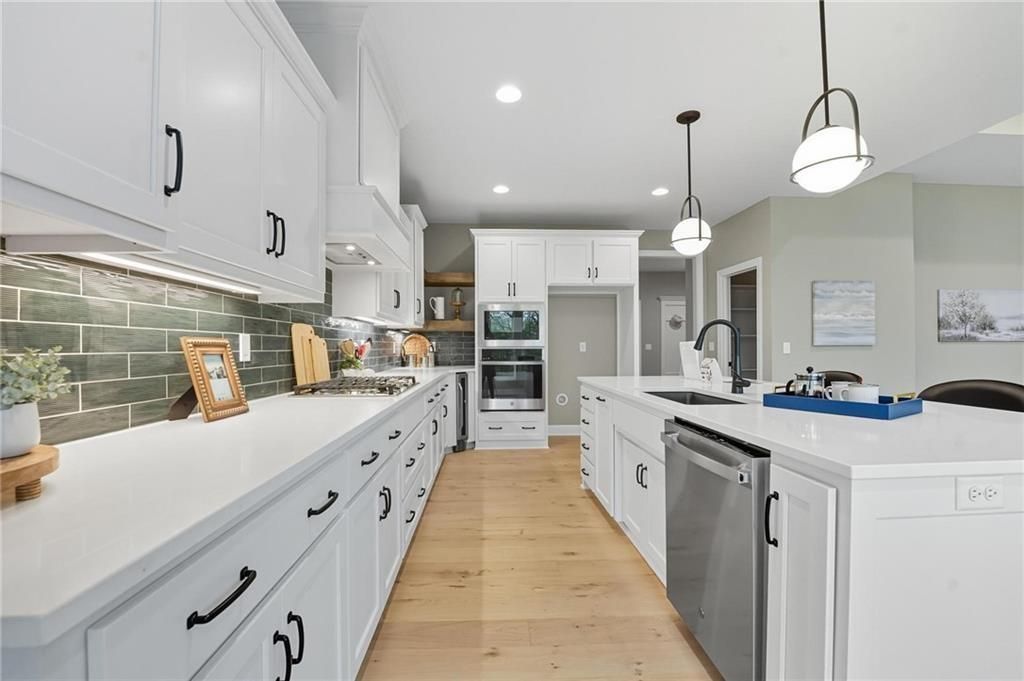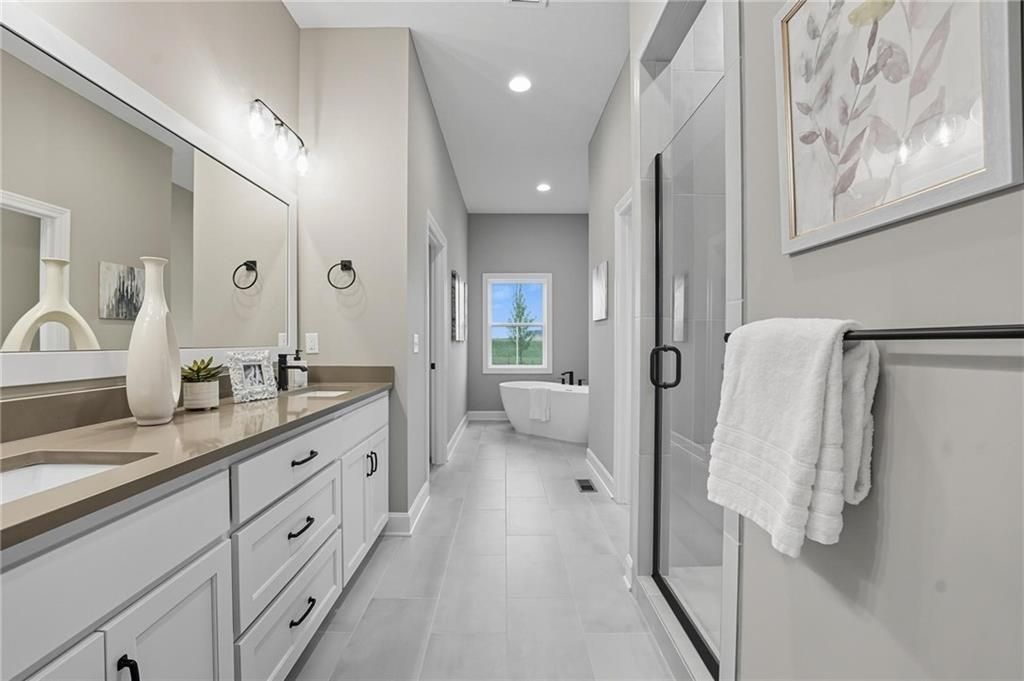 Lot 154 The "Tatum" by New Mark Homes Reverse on a Walkout Lot with a covered deck overlooking the #14 Fairway! This home is a golfer's dream or someone just wanting a fantastic view! Expected completion in June 2026. A perfect lot. Open entry to a stunning Great Room and fireplace, abundant windows letting in all the natural light and view to your back yard and the golf course. Kitchen island faces the Great Room, with ample counter space and a walk-in pantry. The Breakfast/Dining area has a slider door access to the covered deck. The Primary En-Suite is behind the Great Room. Primary Bathroom has a tiled shower, standalone tub, double vanity, walk-in closet. Bedroom #2 is on the opposite side with a bathroom, next to the mud room and the main level laundry room. The Lower Level has a Recreation Room, 2 more bedrooms and 3rd bathroom. Walks out to the back yard! Check out the Communities of Falcon Lakes, a golf course community conveniently located off K7 for easy access to all parts of the city. Just 10 minutes to the Legends shopping and dining and 30 minutes to the airport, downtown, southern Johnson County and Lawrence. Acclaimed Basehor-Linwood Schools!! Area Restaurant - The Nest!